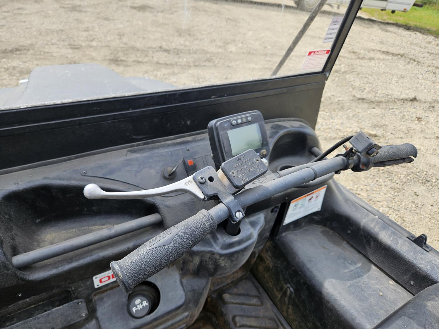 23 HP Kohler engine, variable speed drive transmission, digital display, front mount winch, turns over but will not stay running, 24x10.00-8 tires