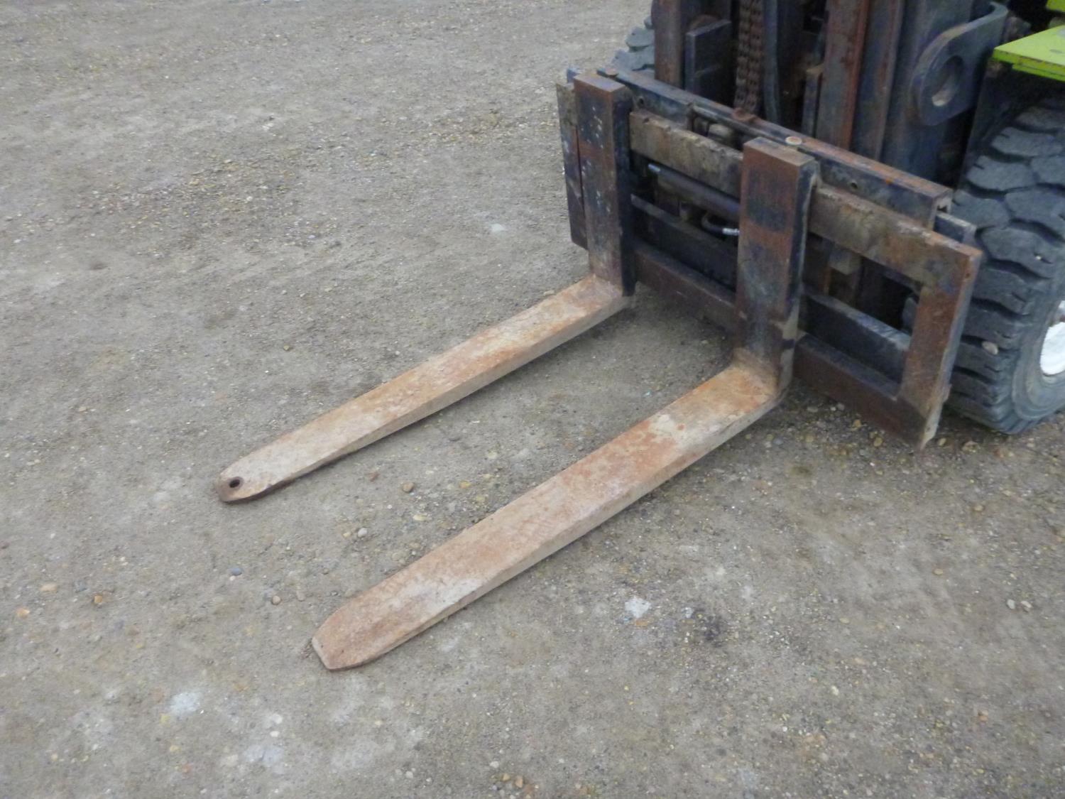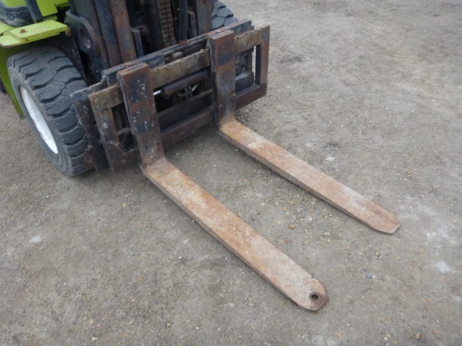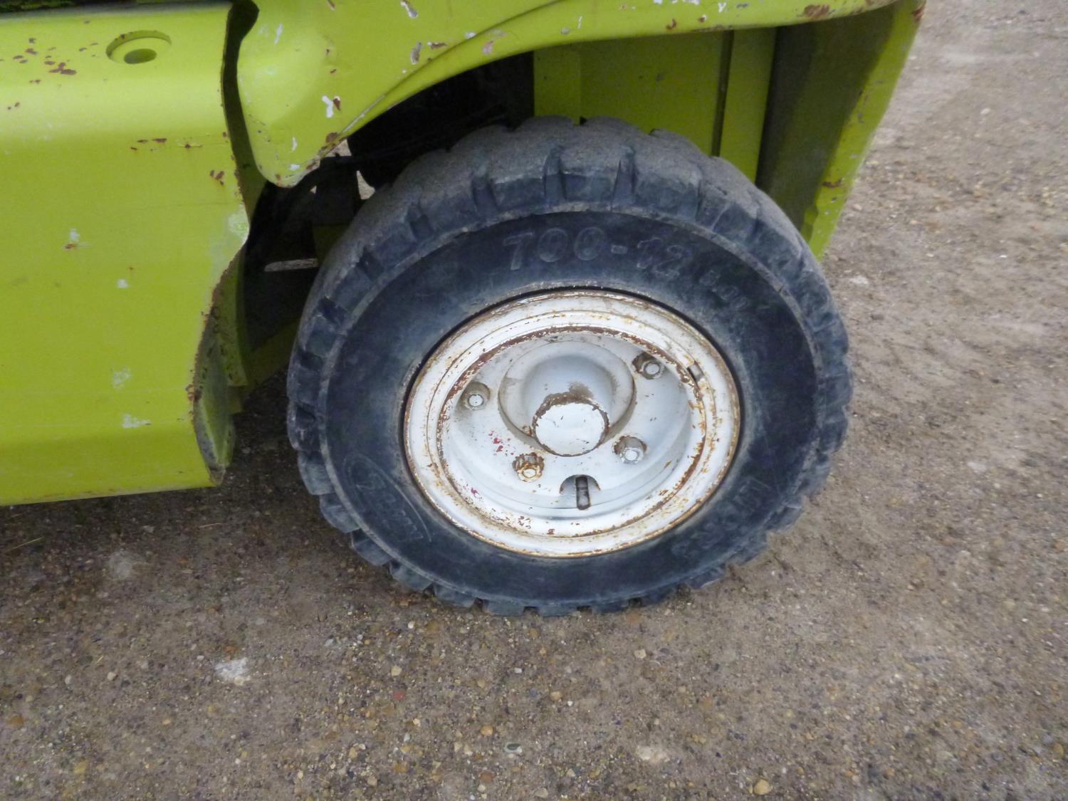 Open station with ROPS, propane, hydro transmission, 15 ft max lift height, 3 mast stages, 48 inch pallet forks, side shift, 300-15 front tires, 700-12 rear tires