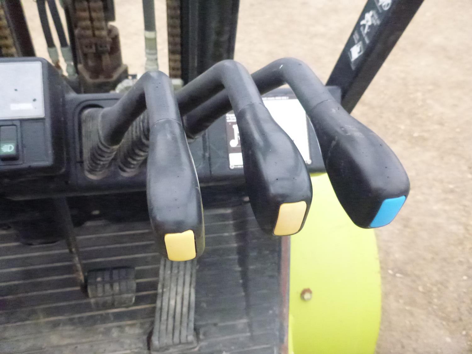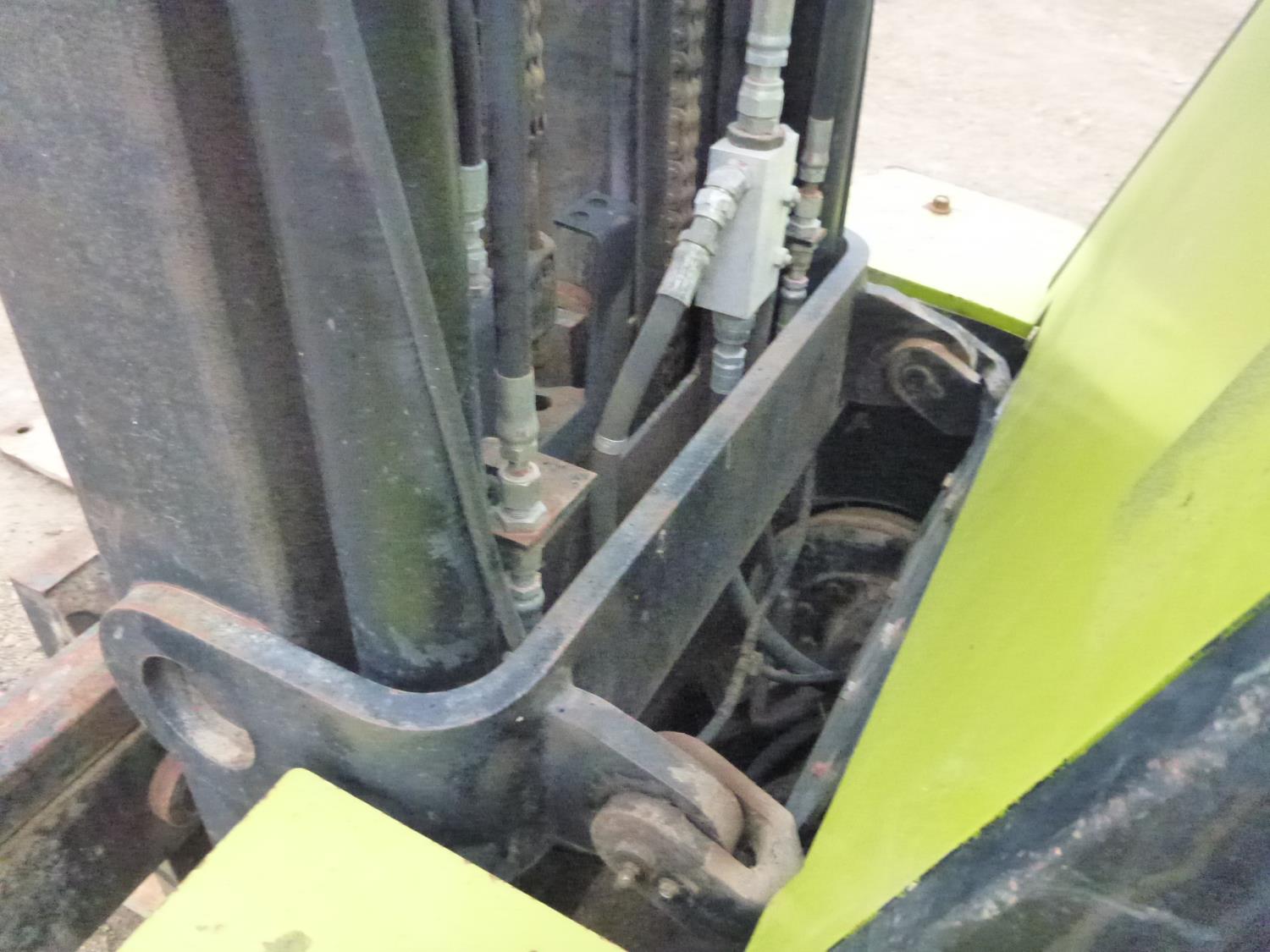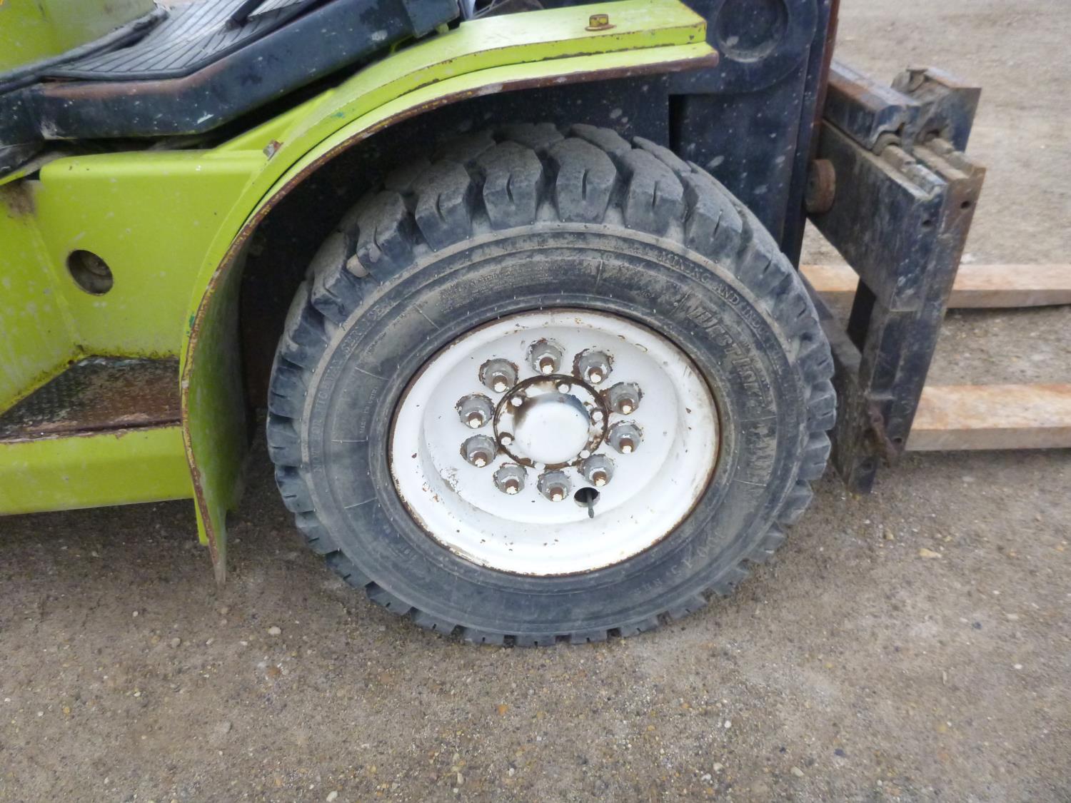 Open station with ROPS, propane, hydro transmission, 15 ft max lift height, 3 mast stages, 48 inch pallet forks, side shift, 300-15 front tires, 700-12 rear tires