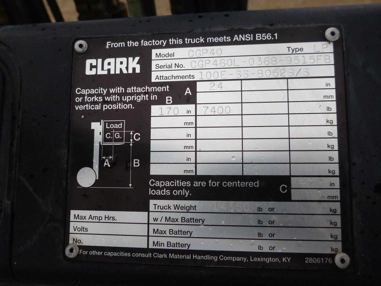 287 1999 Clark CGP40 8000 LB 2WD Forklift