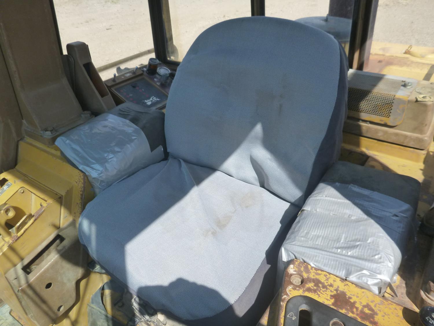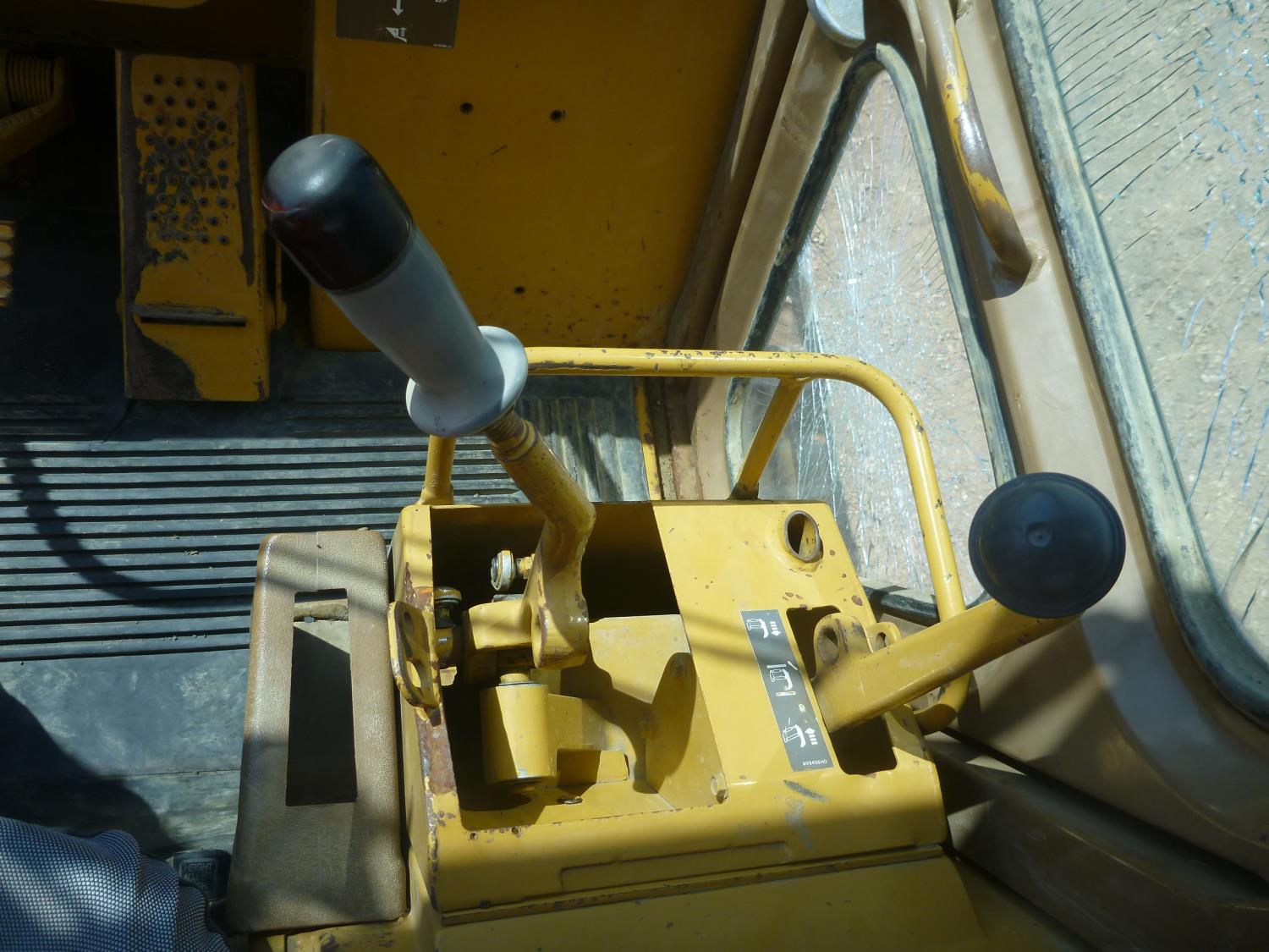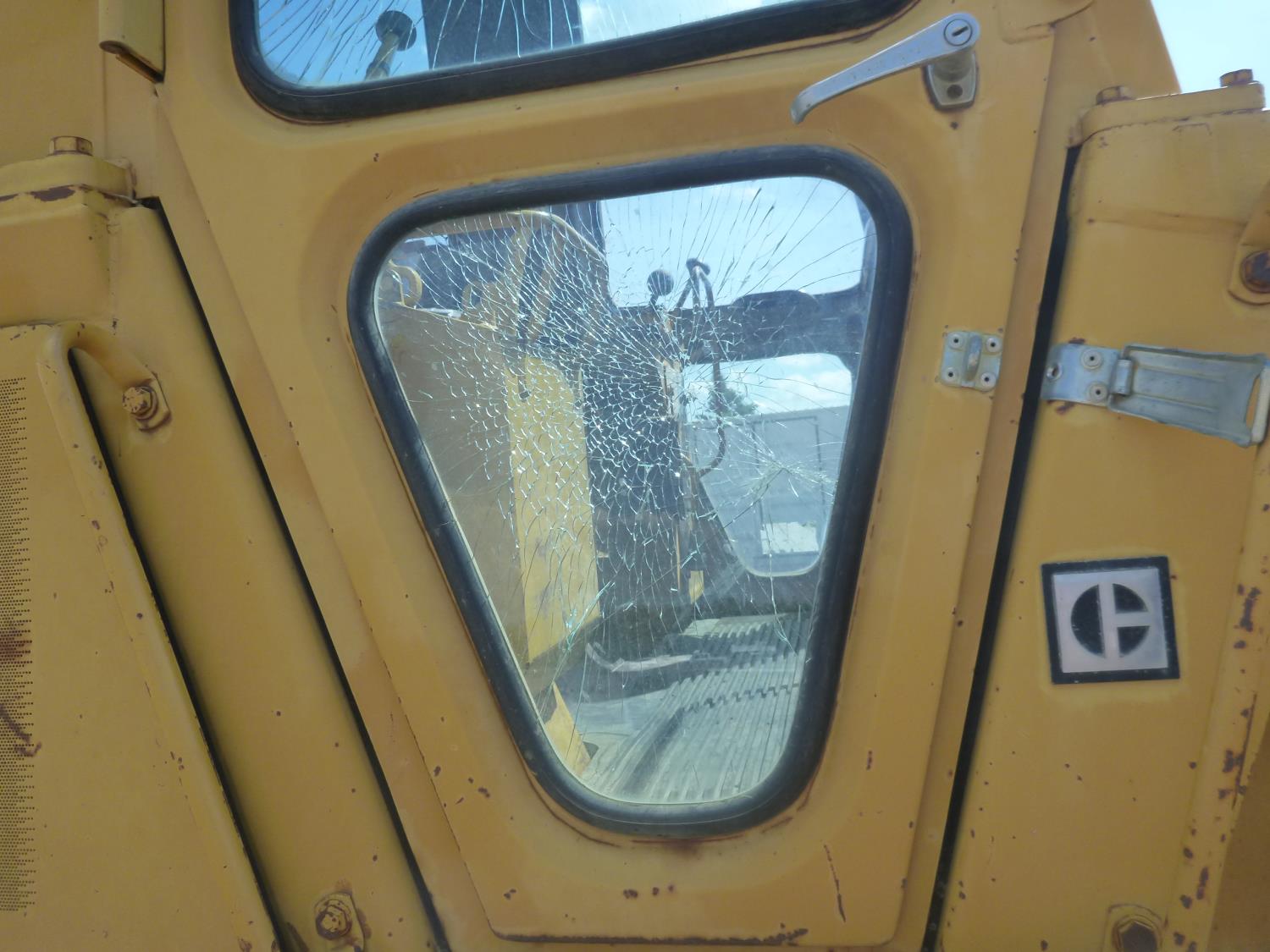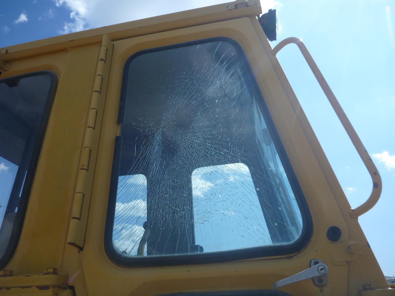 Enclosed cab, hydro transmission, Caterpillar 3204 engine, cracked side glass, 94 inch toothed bucket, 20 inch track pads, double grousers
