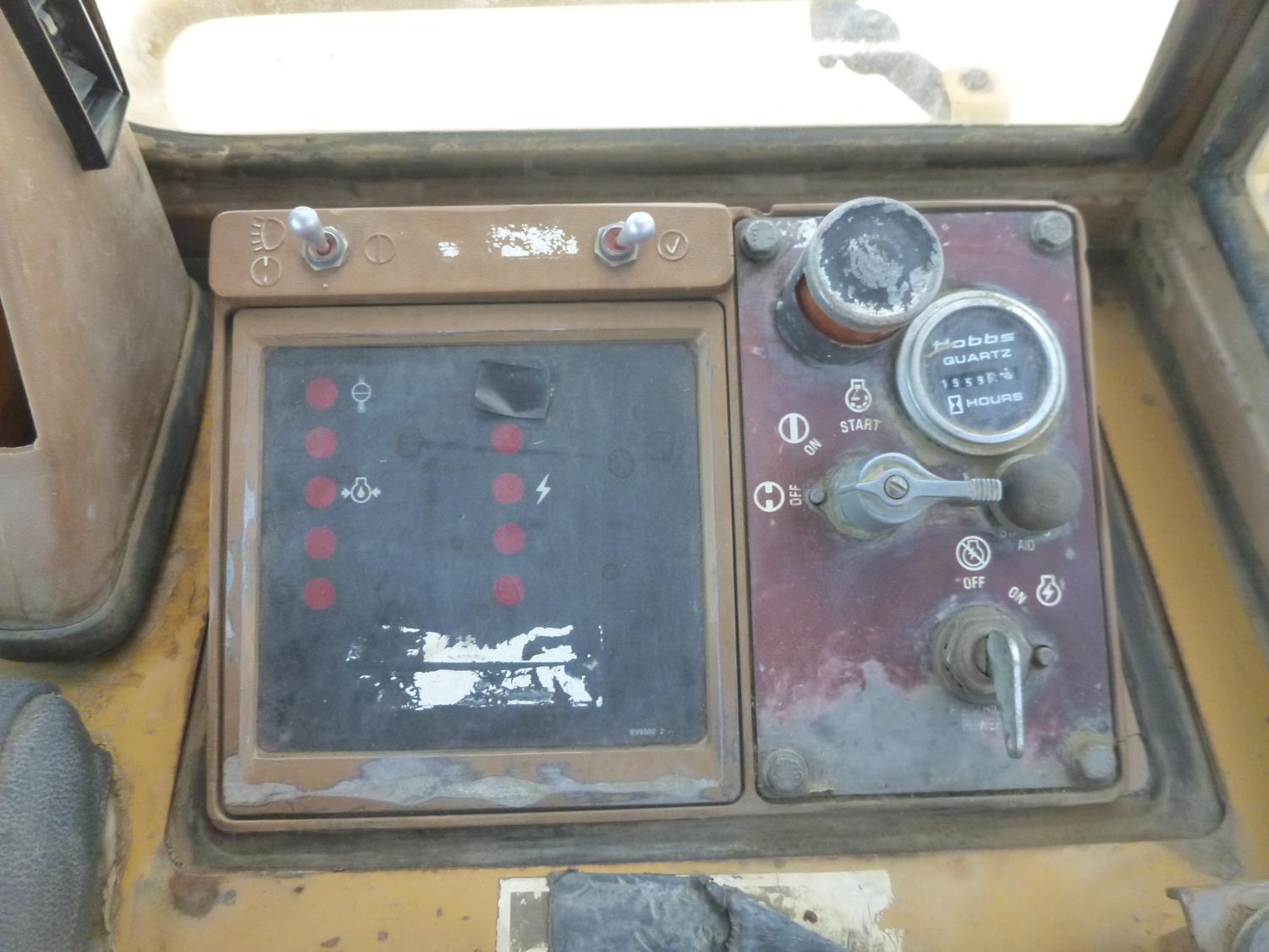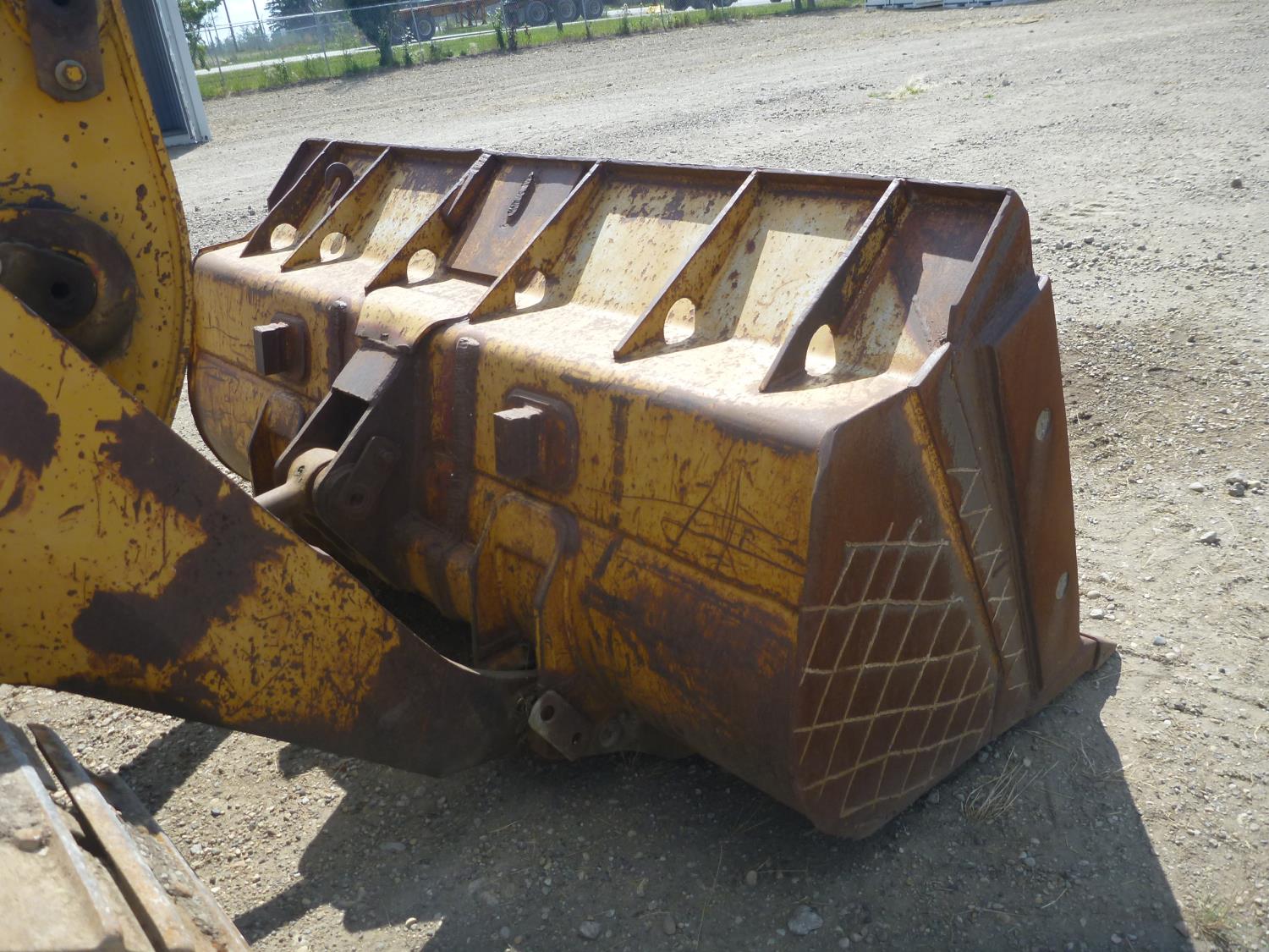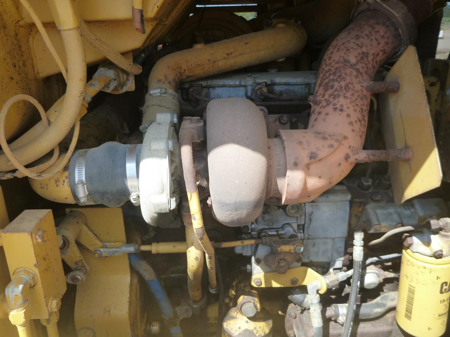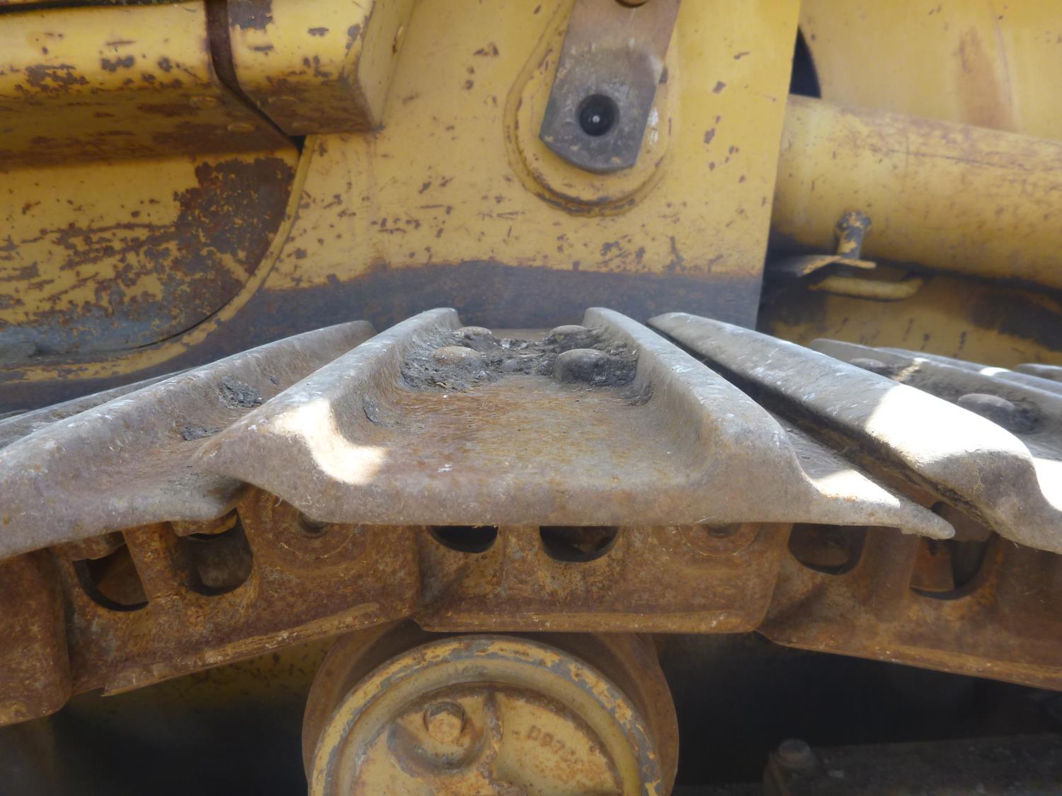 Enclosed cab, hydro transmission, Caterpillar 3204 engine, cracked side glass, 94 inch toothed bucket, 20 inch track pads, double grousers