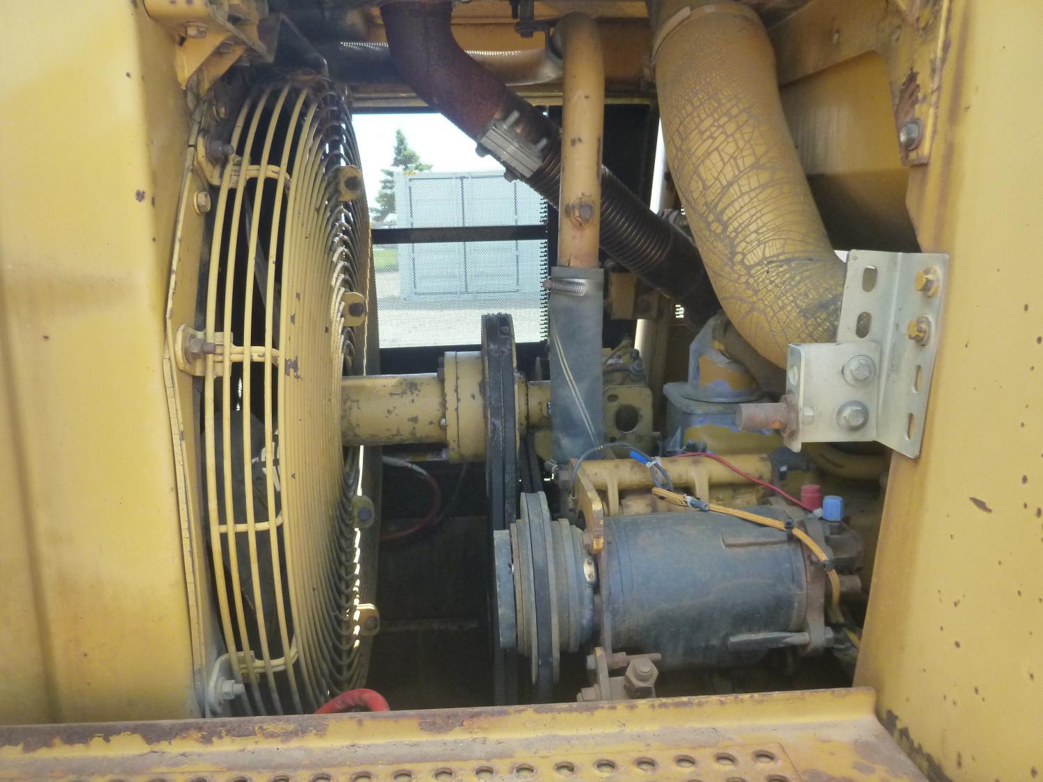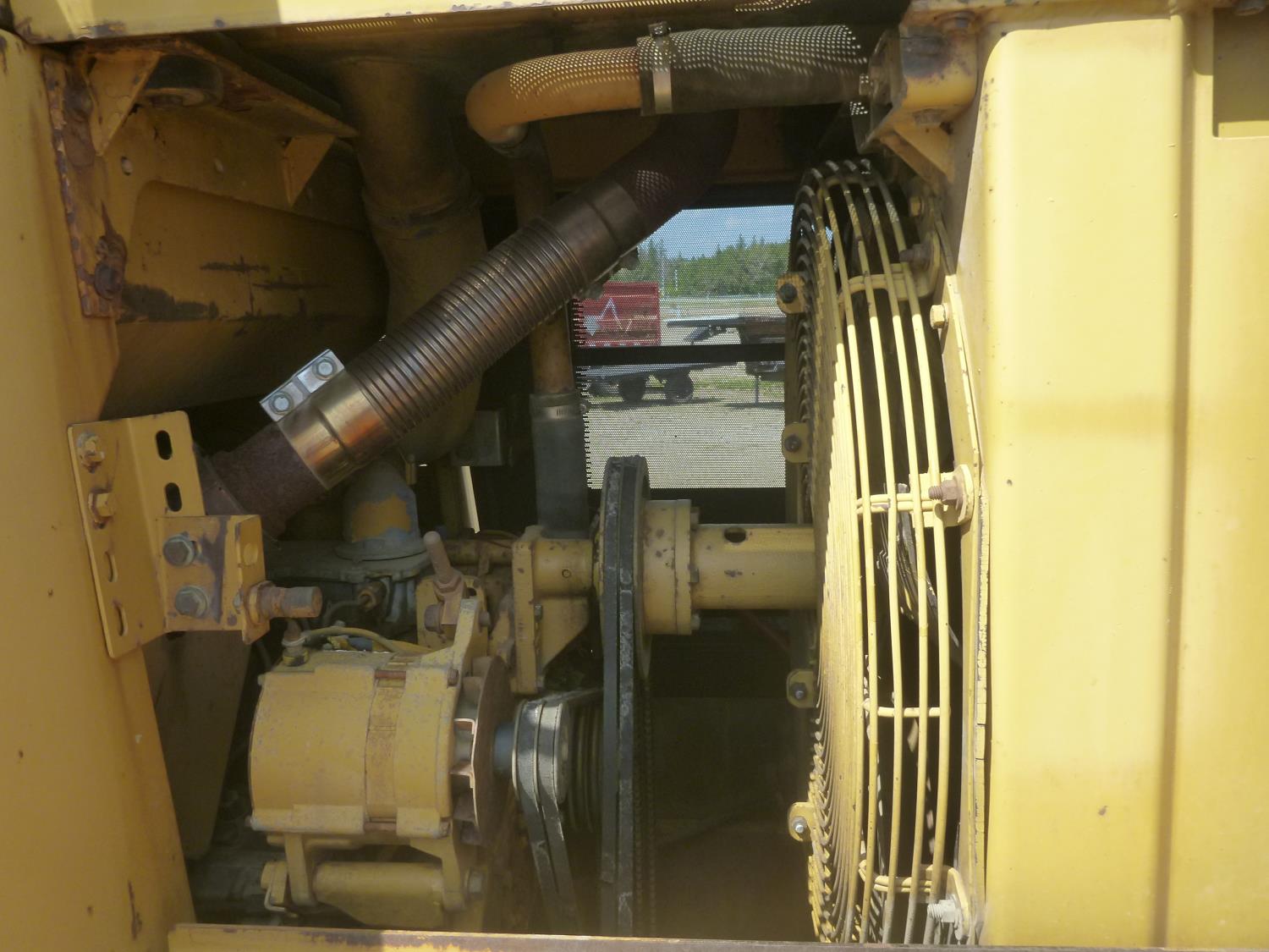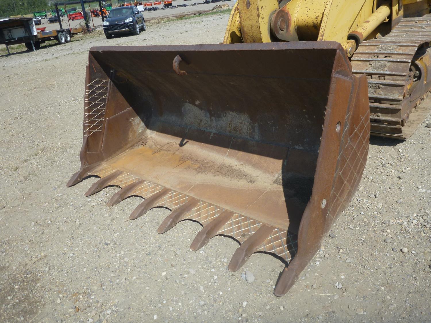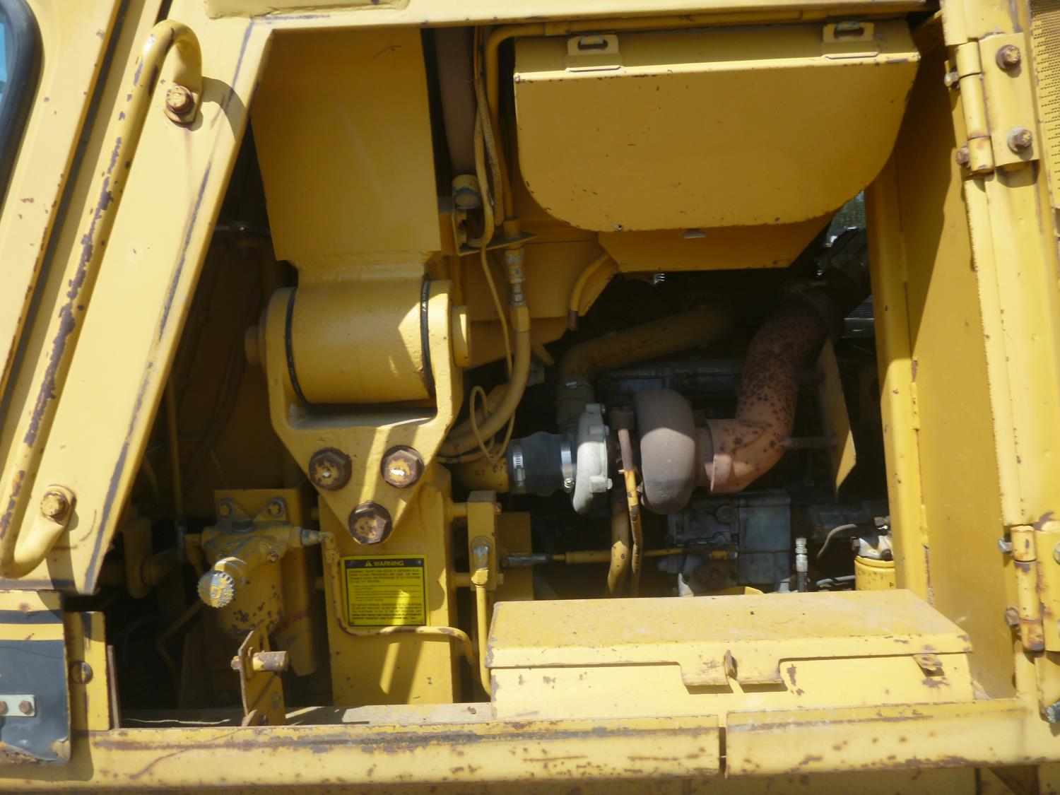Enclosed cab, hydro transmission, Caterpillar 3204 engine, cracked side glass, 94 inch toothed bucket, 20 inch track pads, double grousers