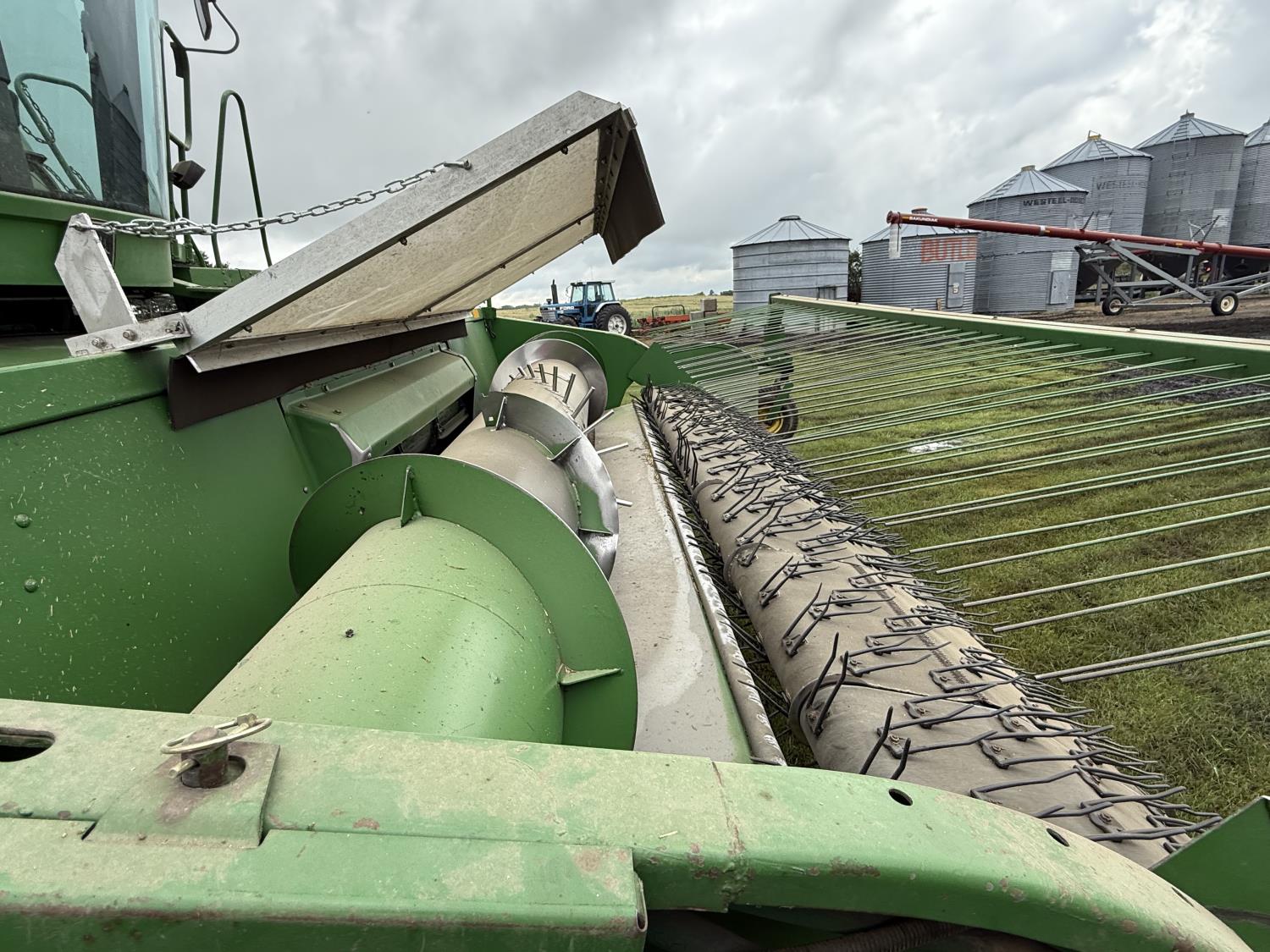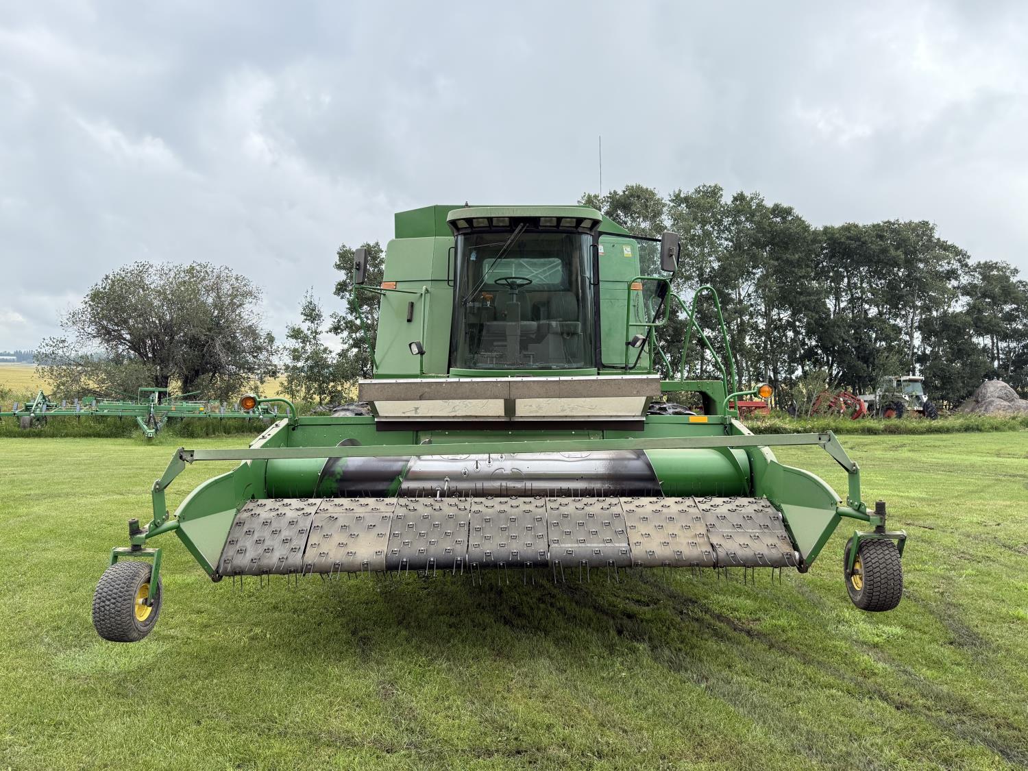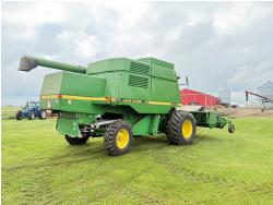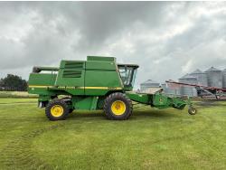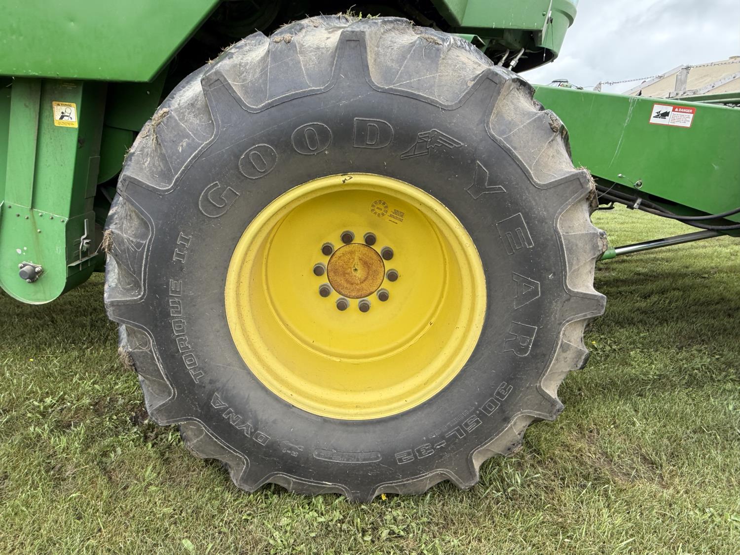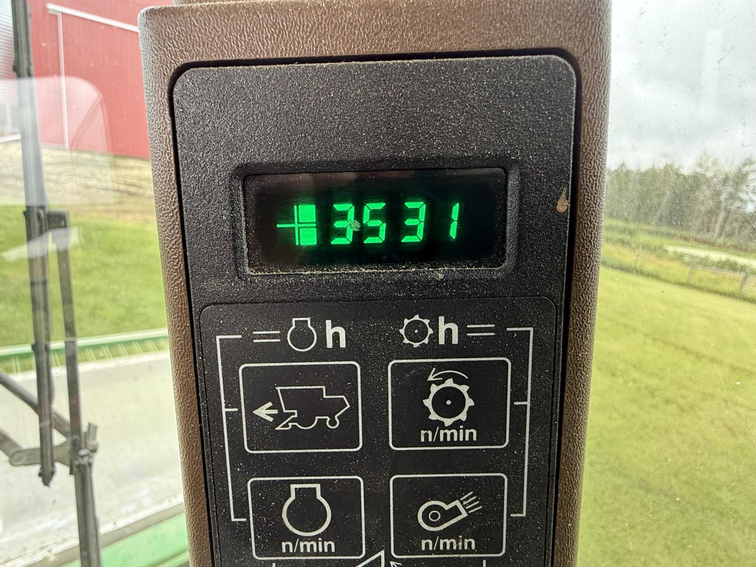 John Deere 914 14 ft pick-up header, reverser, rock trap, chaff spreader, chopper, 20 ft auger, A/C, radio, buddy seat, 30.5L-32 front tires, 16.9-26 rear tires