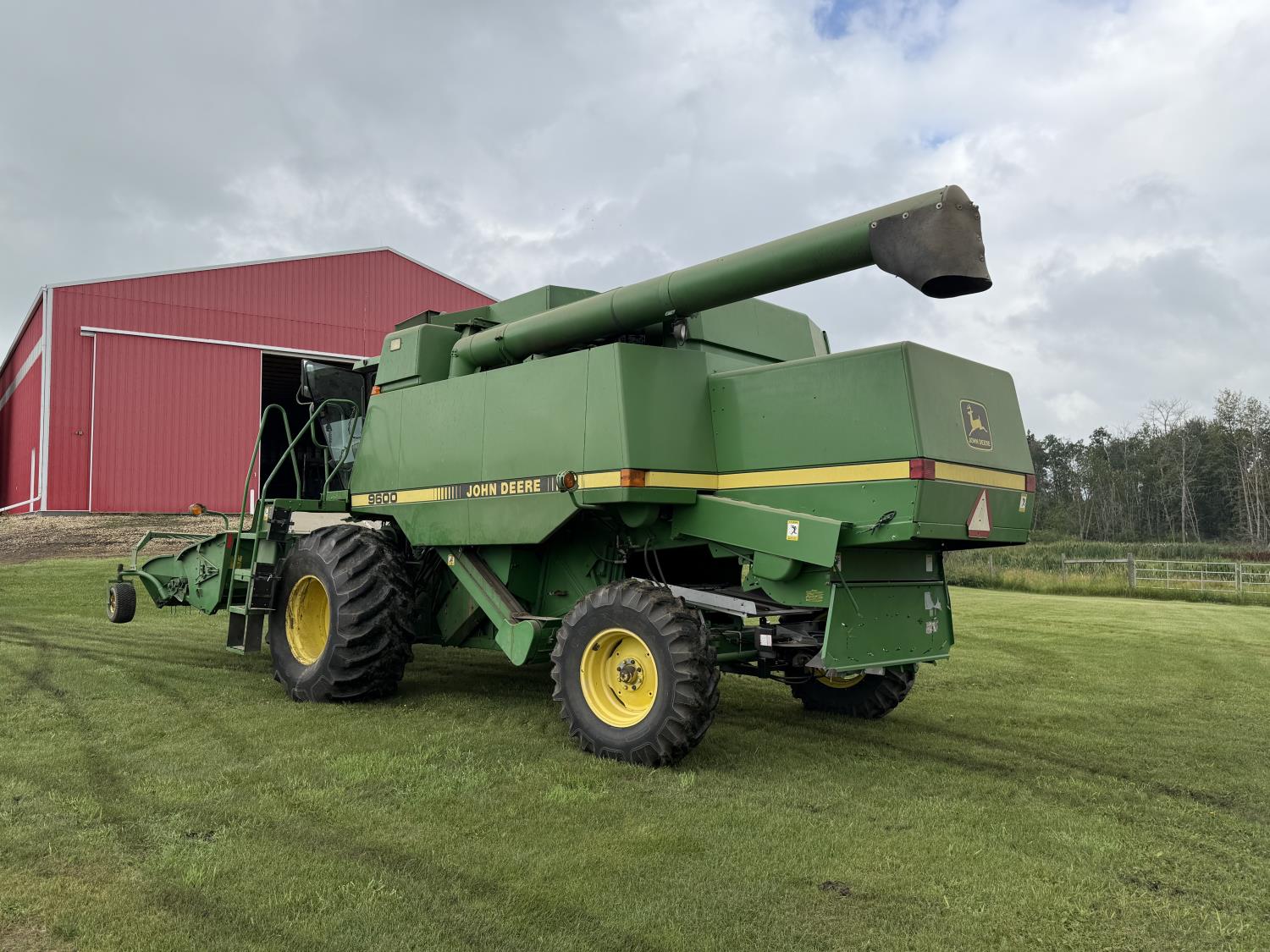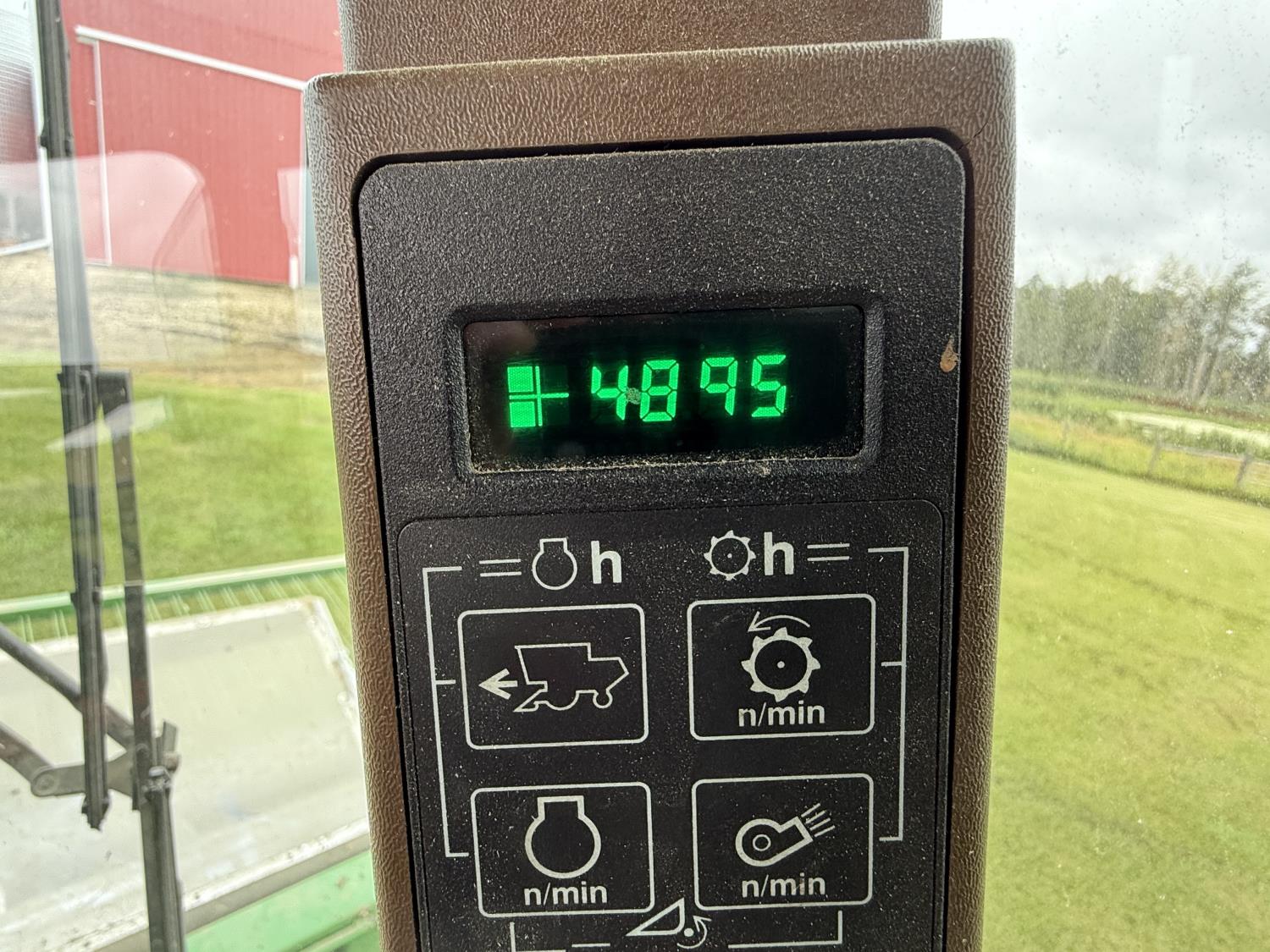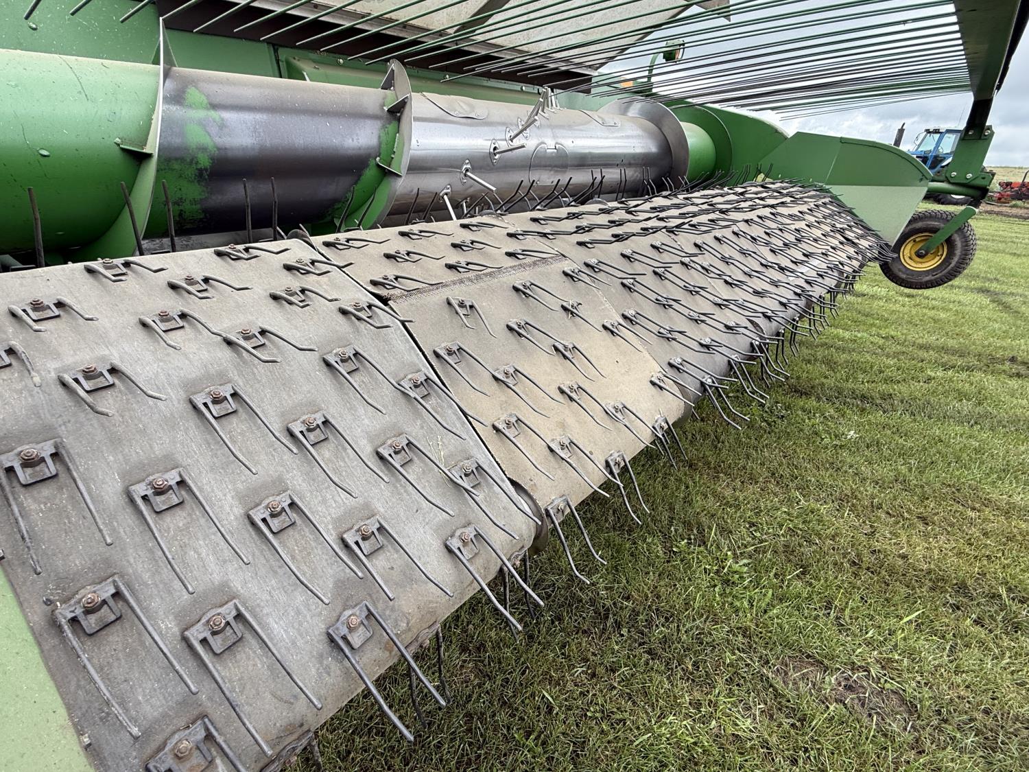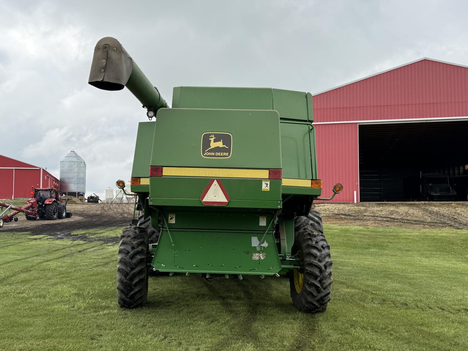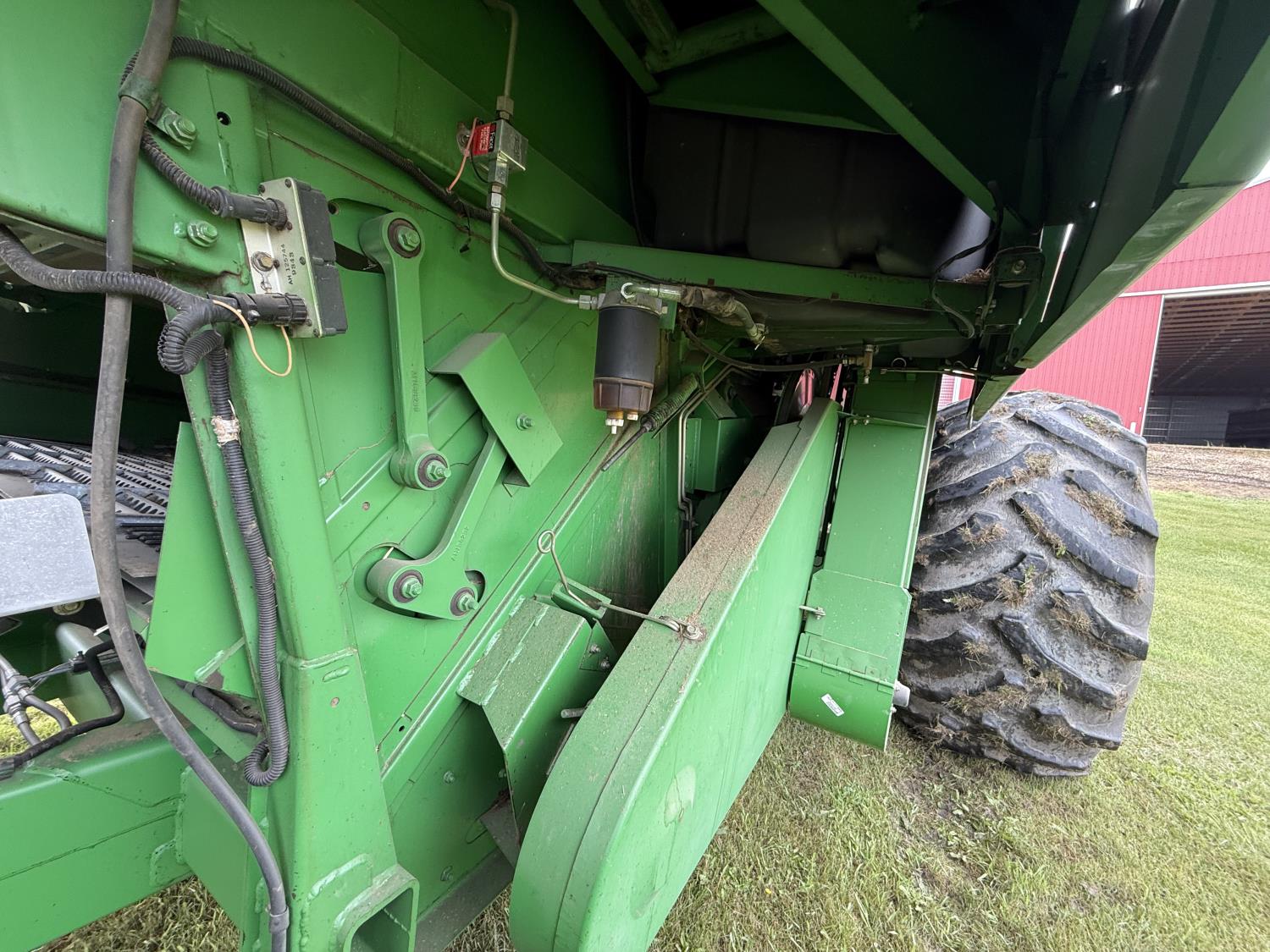 John Deere 914 14 ft pick-up header, reverser, rock trap, chaff spreader, chopper, 20 ft auger, A/C, radio, buddy seat, 30.5L-32 front tires, 16.9-26 rear tires