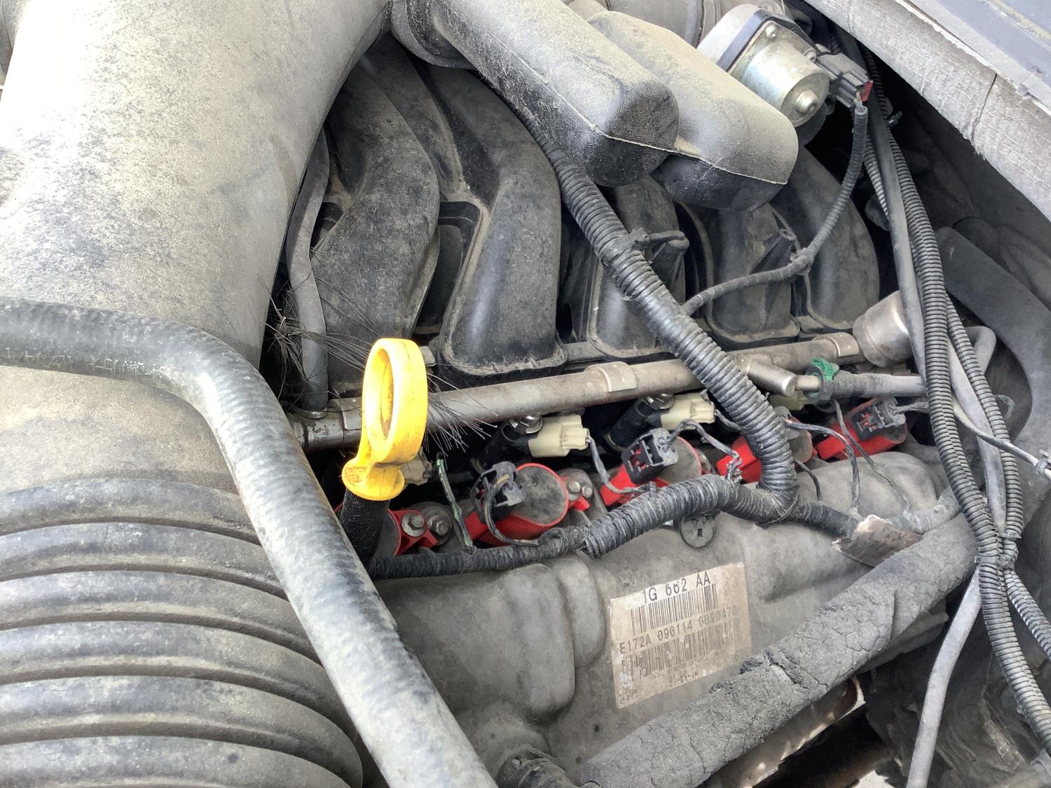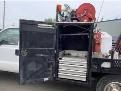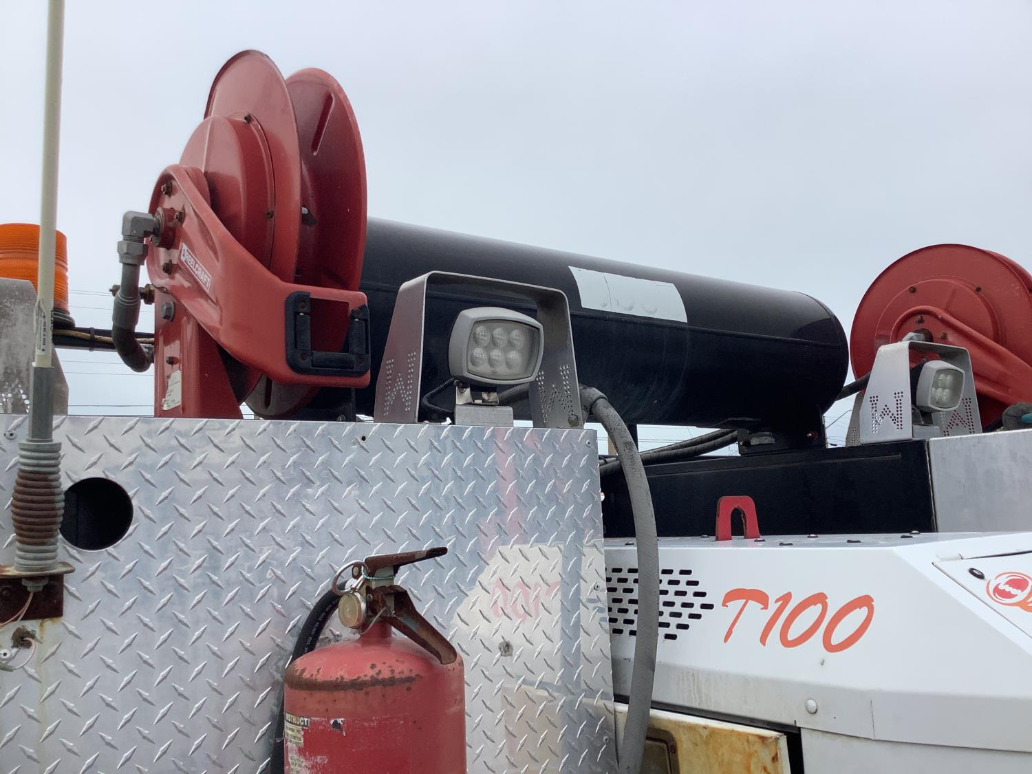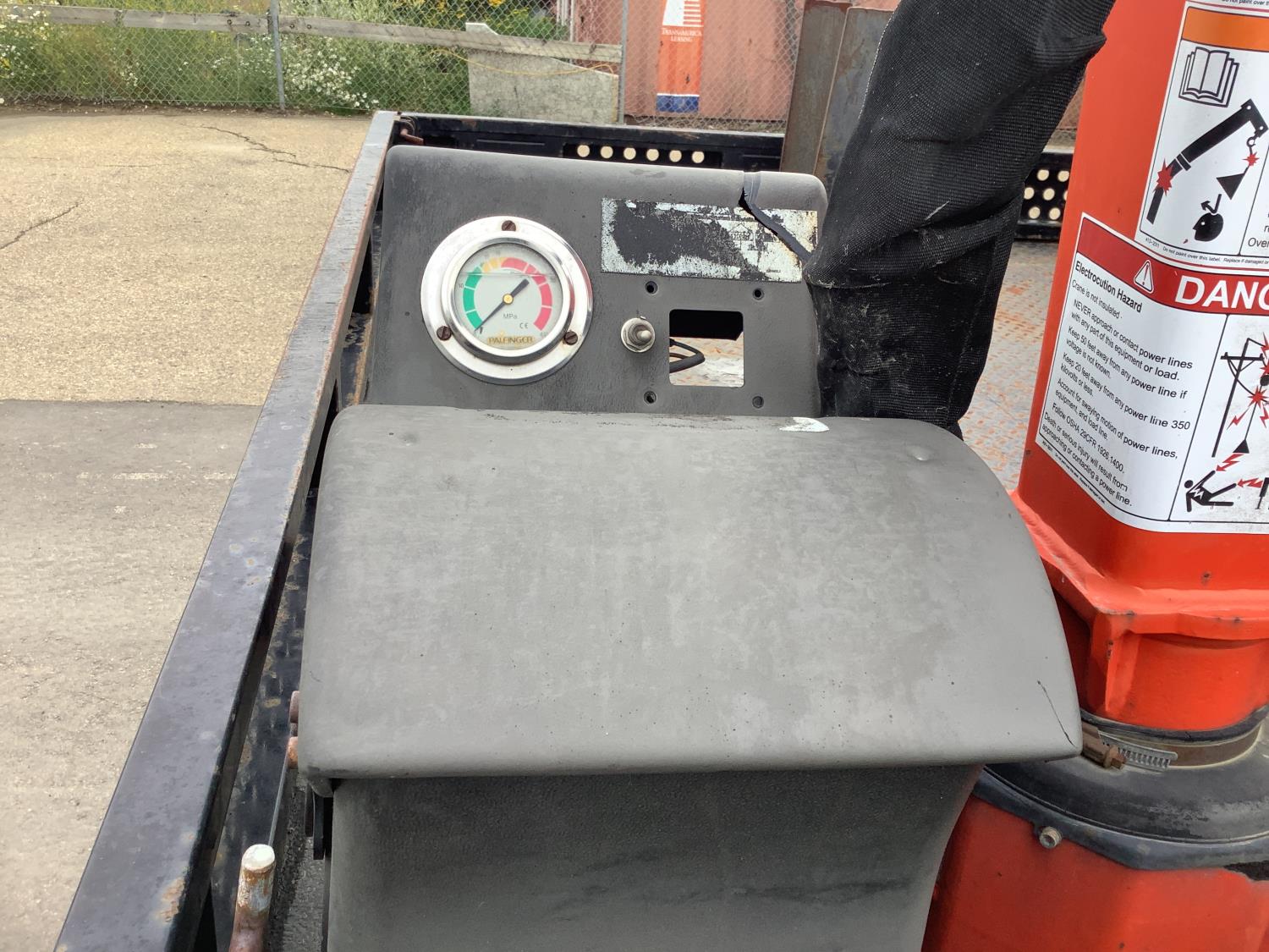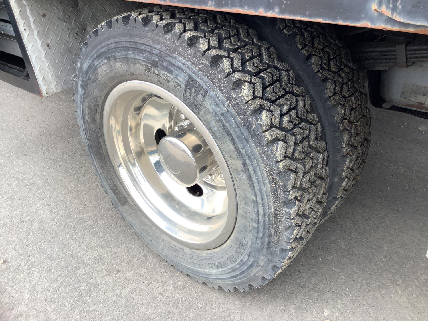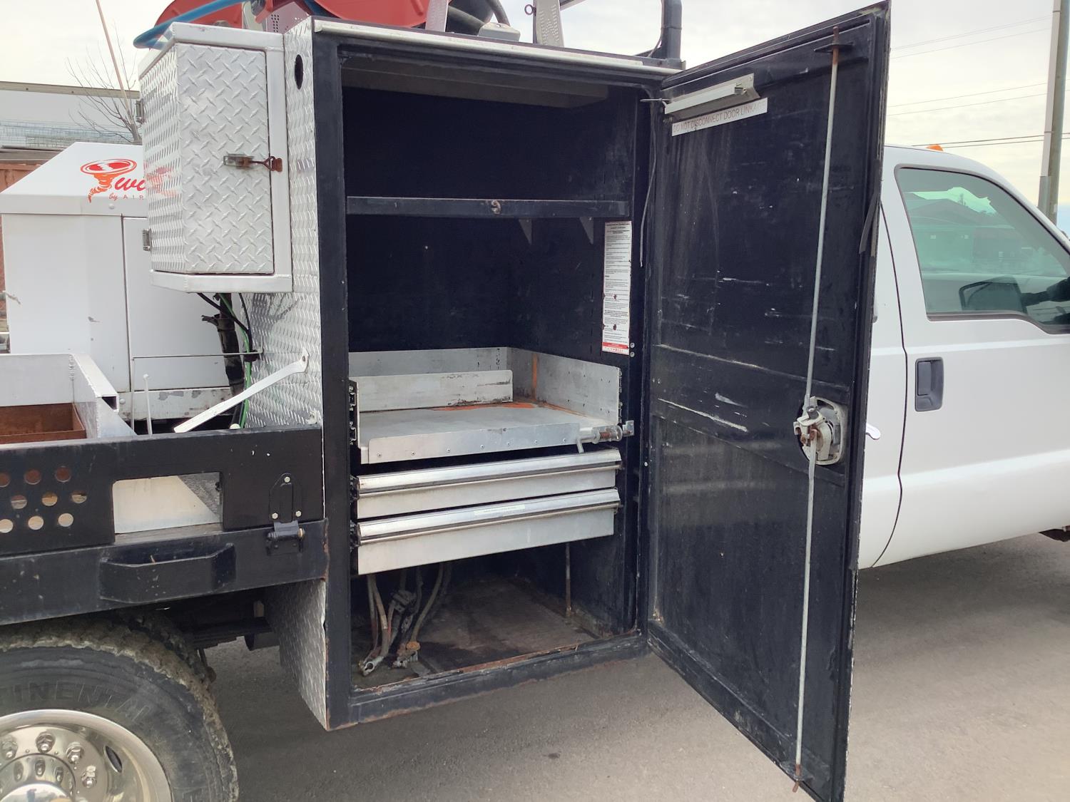 V10 6.8 liter gas engine, automatic transmission, 6 ft 9 inch flat deck, deck mounted Twister T100 air compressor, Palfinger piece2700 compact knuckle boom crane, tool cabinets, rear tow hitch, all aluminum rims, duals, 6500 lb front axle, 12,000 rear axle, 225/70R19.5