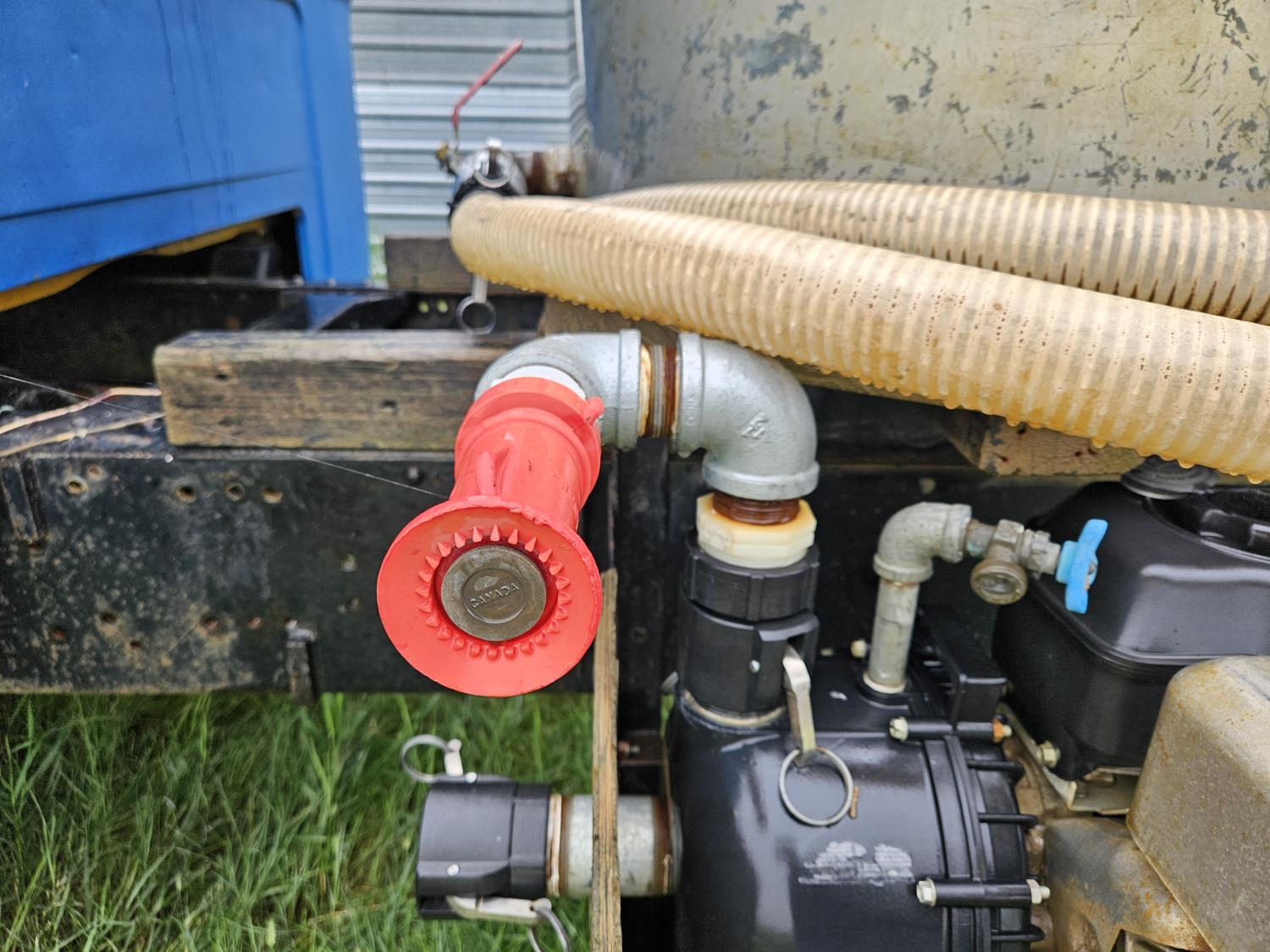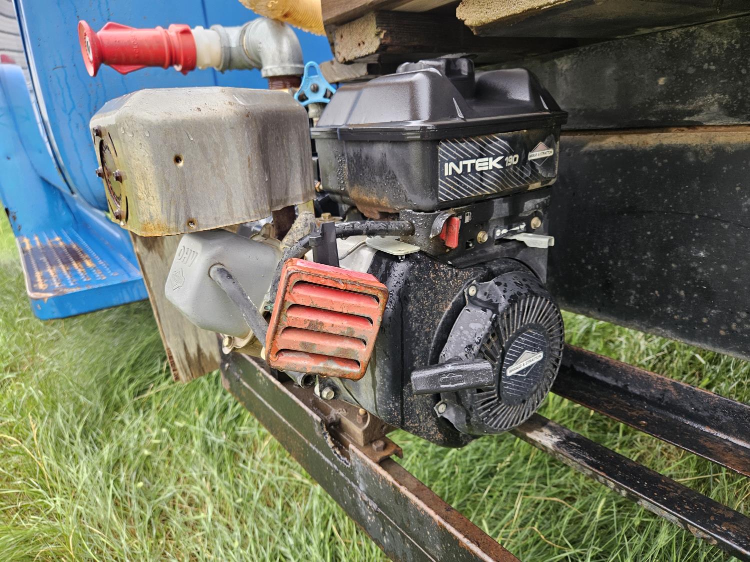 3.7 L 6 cylinder gas engine, 4 speed manual transmission, Intex 190 2" gas driven pump, 6800 liter stainless steel tank, spring suspension, 7,000 lb front axle, 8,000 lb rear axles, 9.00-20 front tires, 10.00-20 rear tires