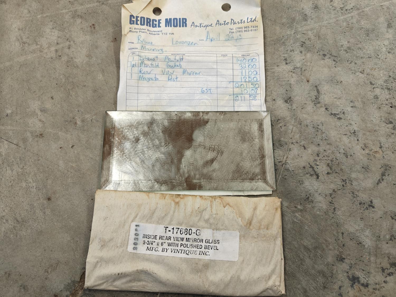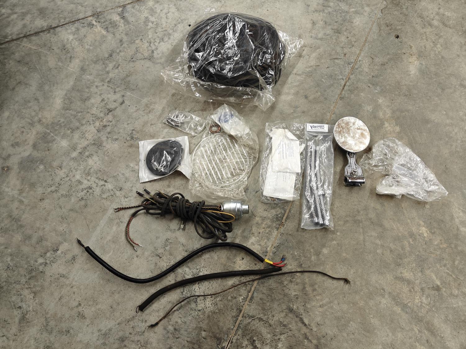 bumper, steering column, glass light cover, muffler, side mirror