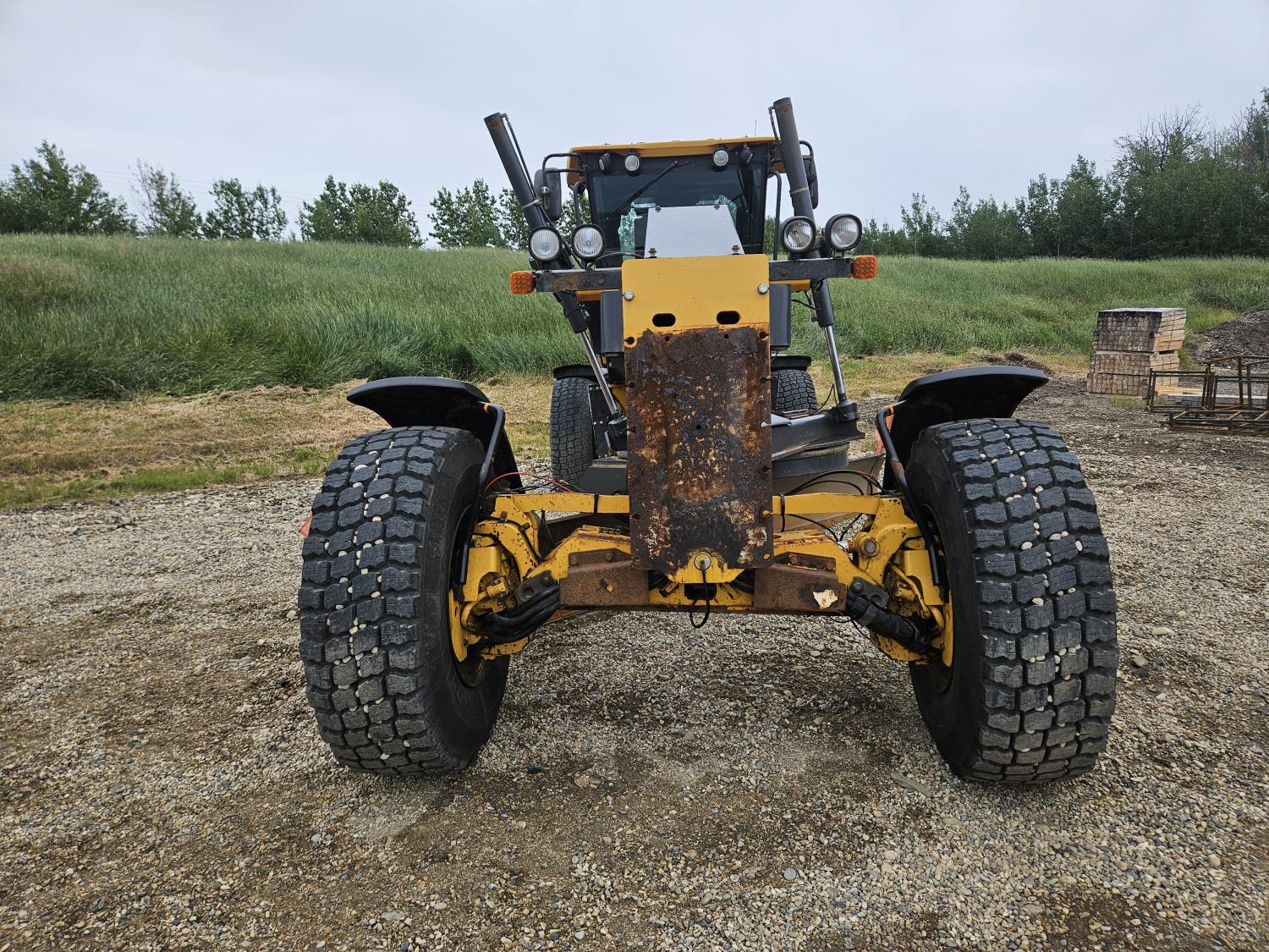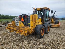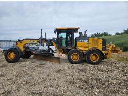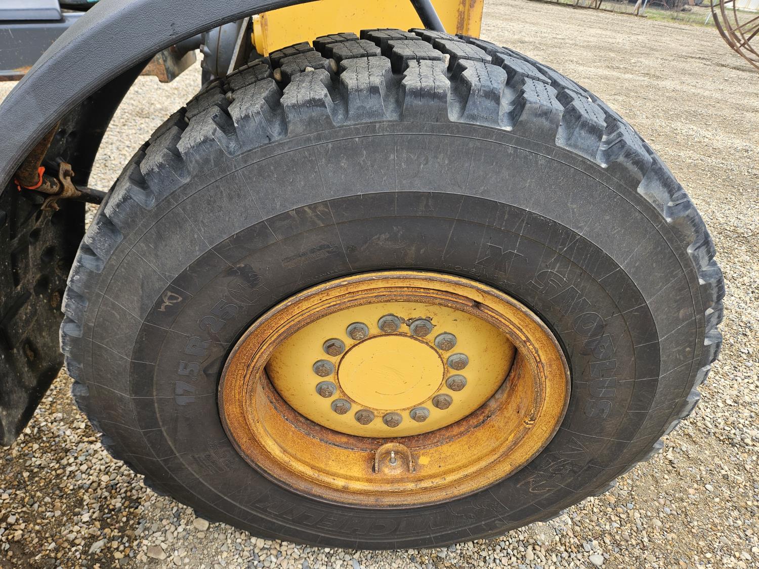 Enclosed cab, A/C, heated seat, joystick steering, rear view camera, 16 Ft moldboard, autolube, 17.5R25 tires
