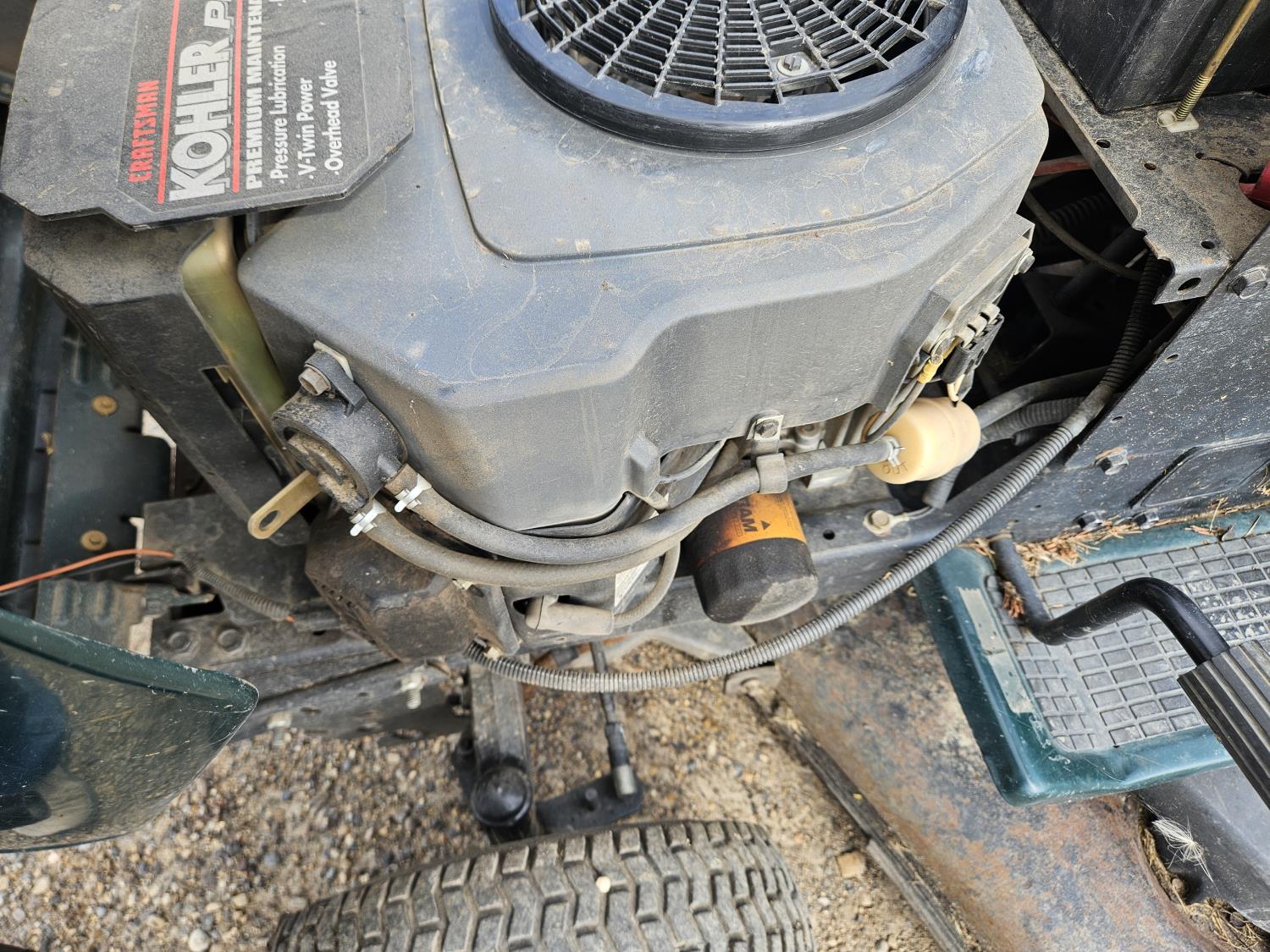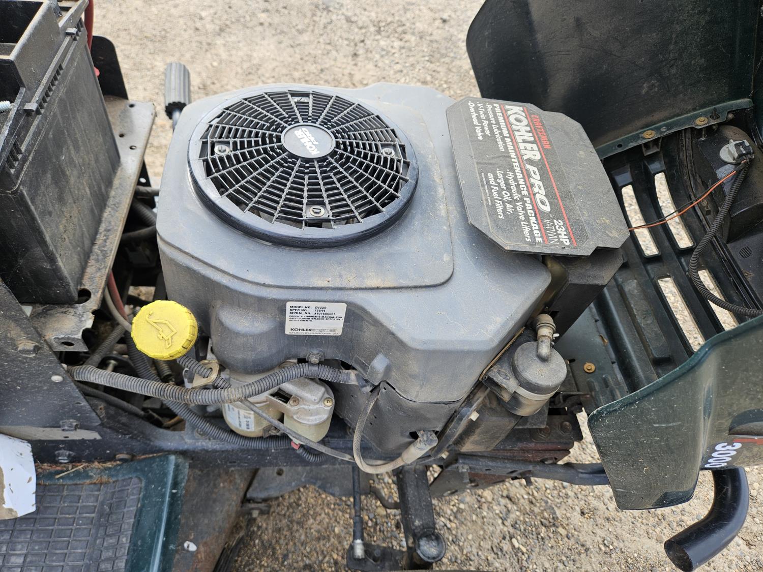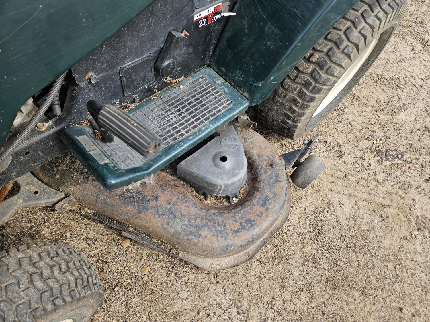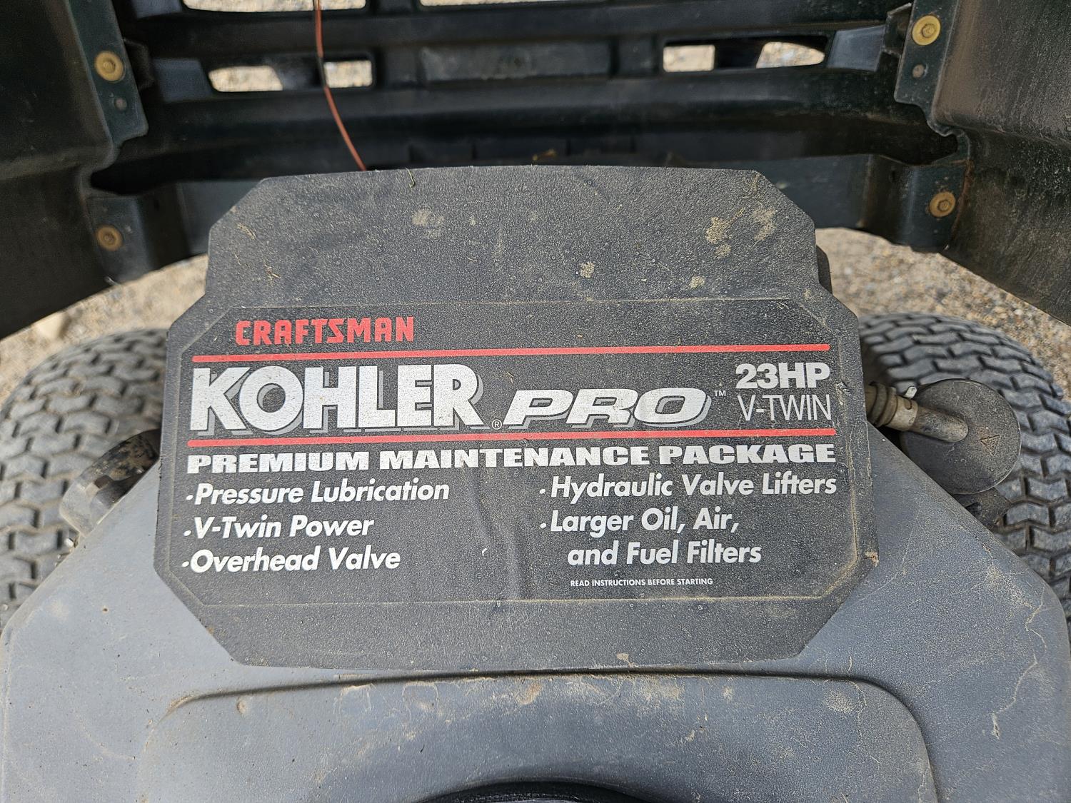 23 HP Kohler has engine, hydrostatic transmission, 48 inch mower deck, 16x6.50-8 front tires, 23x10.5-12 rear tires