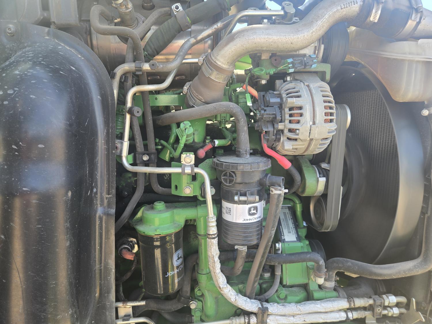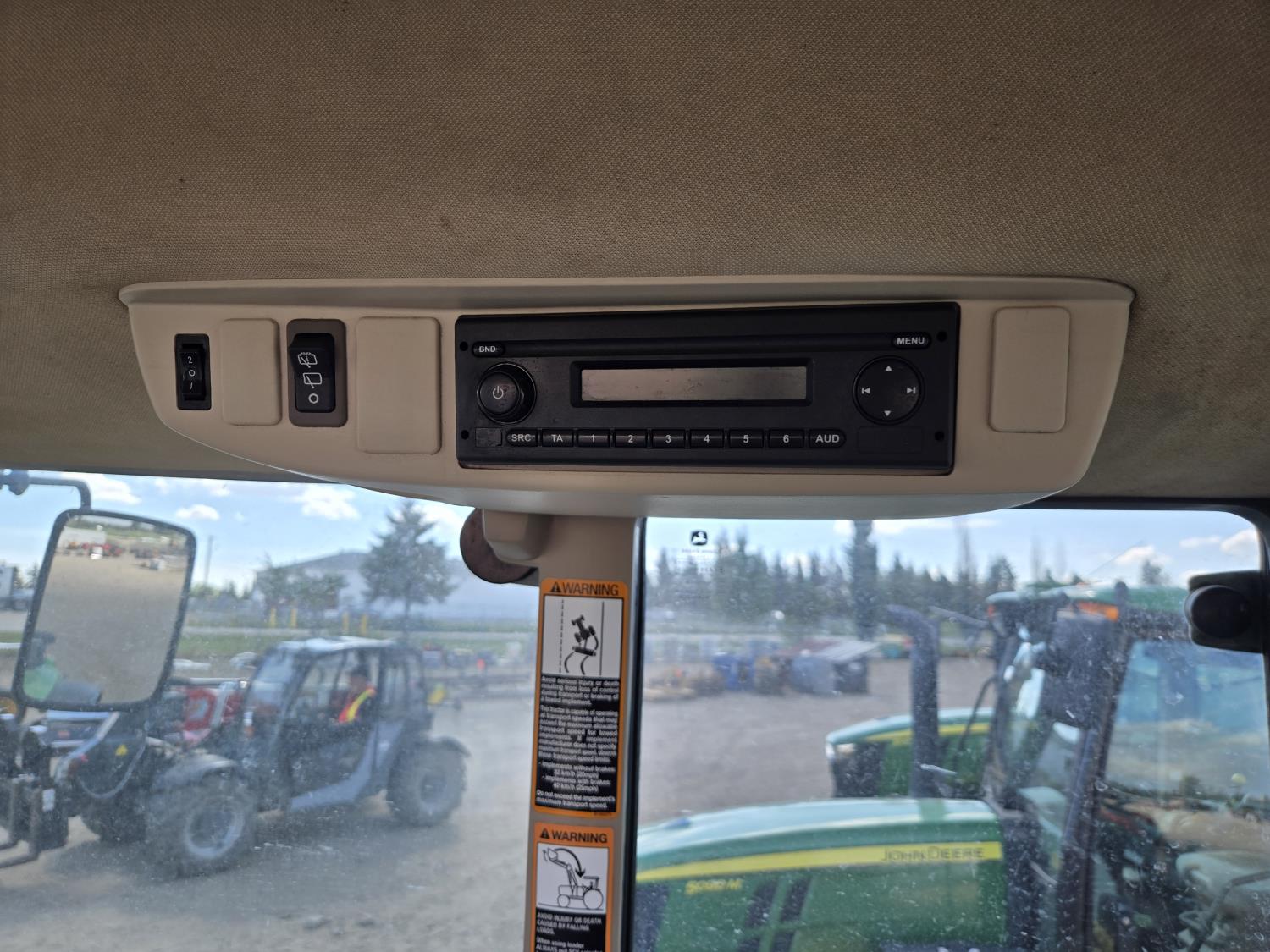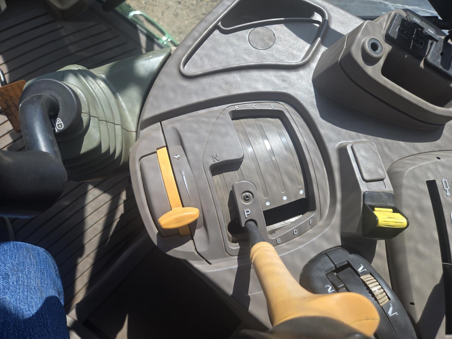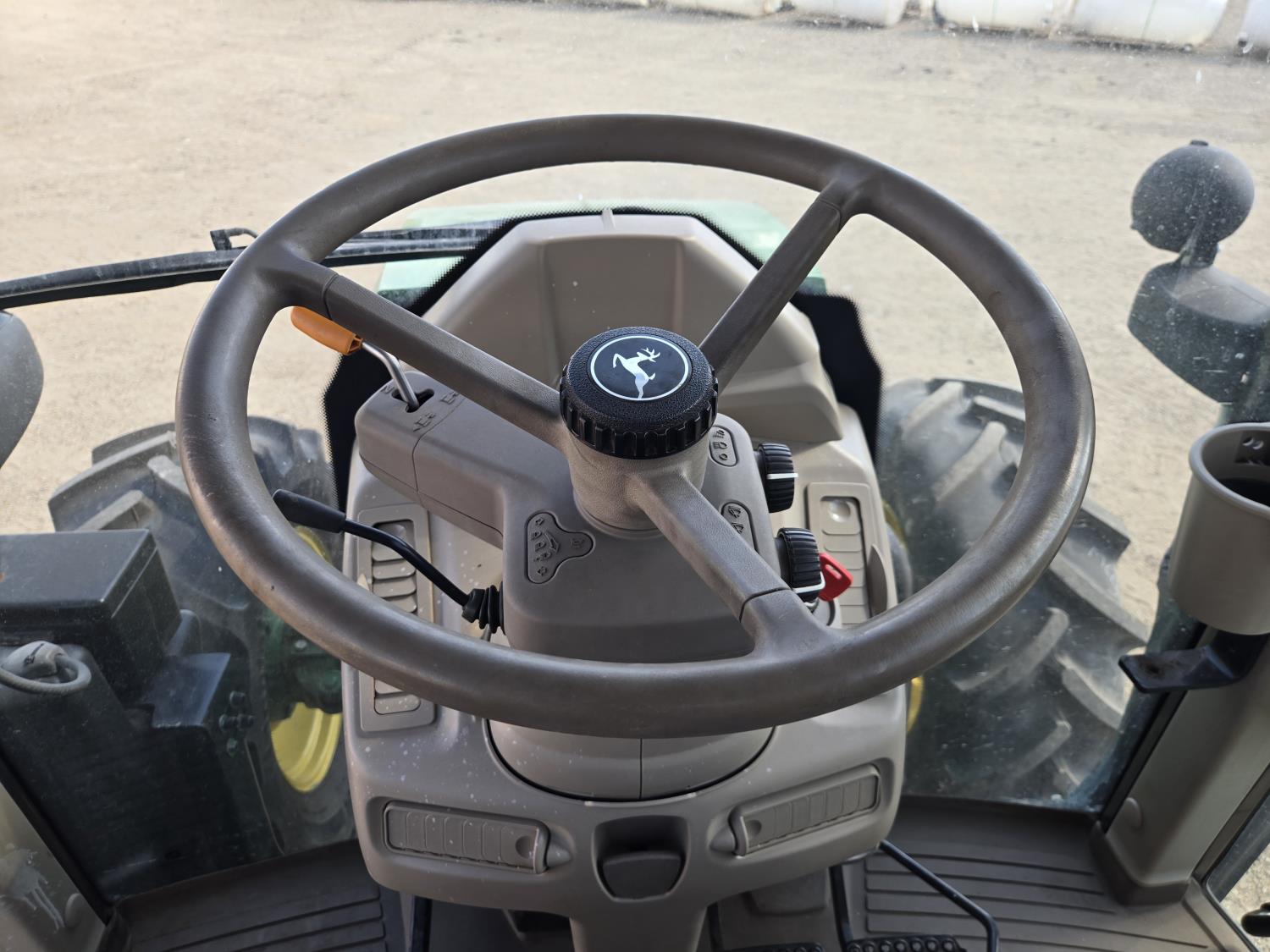 John Deere 4.5 L 4 cylinder 110 HP, diesel engine, 24 speed partial power shift transmission, cab, left hand reverser, rear differential lock, A/C, radio, GPS ready, 540/1000 PTO, 3 point hitch, 3 point hitch exterior control, 3 rear hydraulic outlets, joystick, (3) Mid hydraulics, loader ready, front weight bracket, 420/70R24 front tires, 520/70R34 rear tires