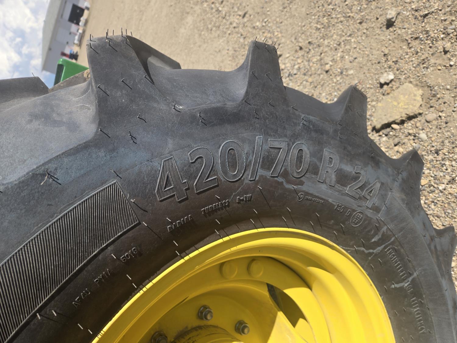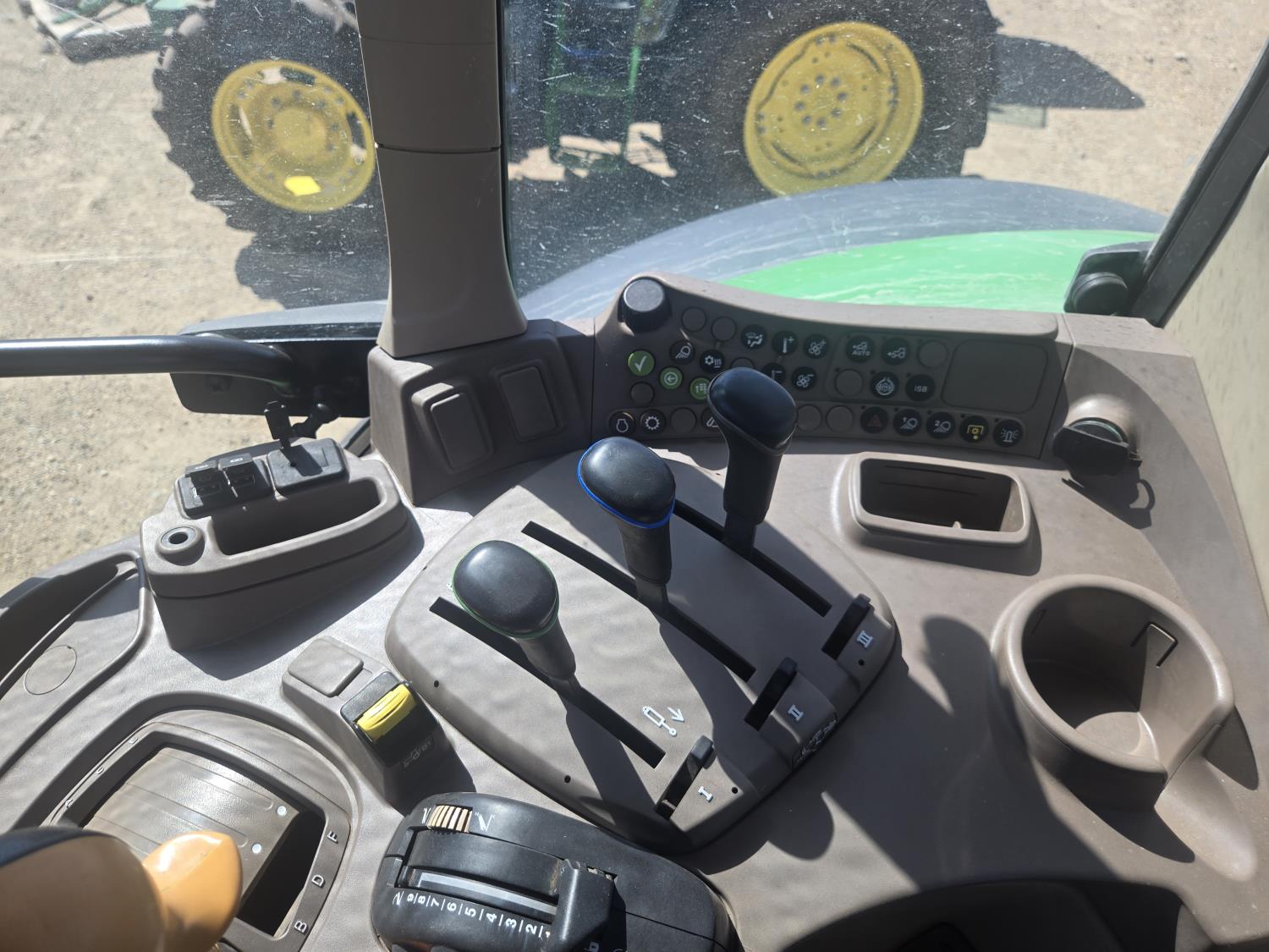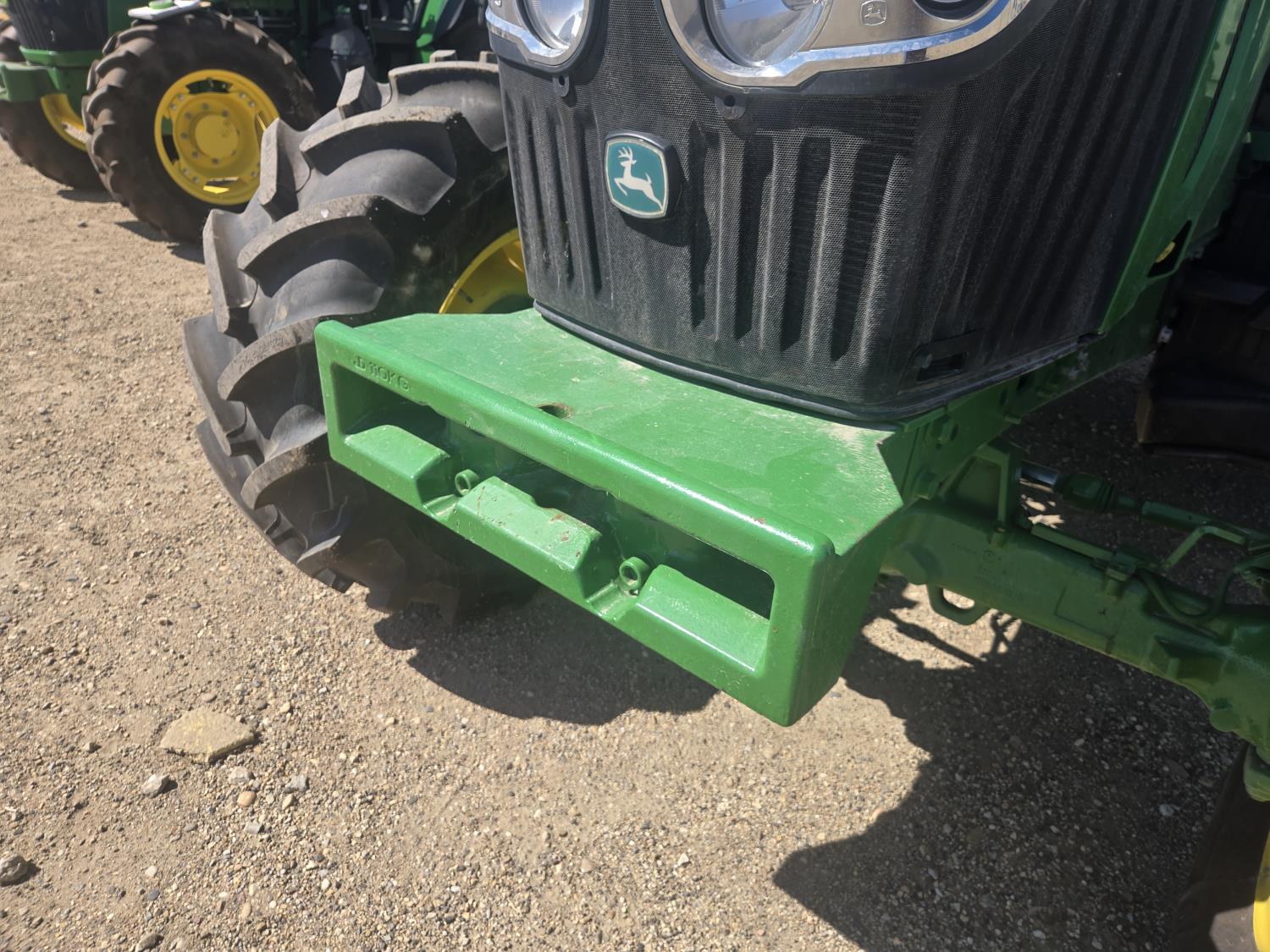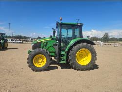 John Deere 4.5 L 4 cylinder 110 HP, diesel engine, 24 speed partial power shift transmission, cab, left hand reverser, rear differential lock, A/C, radio, GPS ready, 540/1000 PTO, 3 point hitch, 3 point hitch exterior control, 3 rear hydraulic outlets, joystick, (3) Mid hydraulics, loader ready, front weight bracket, 420/70R24 front tires, 520/70R34 rear tires
