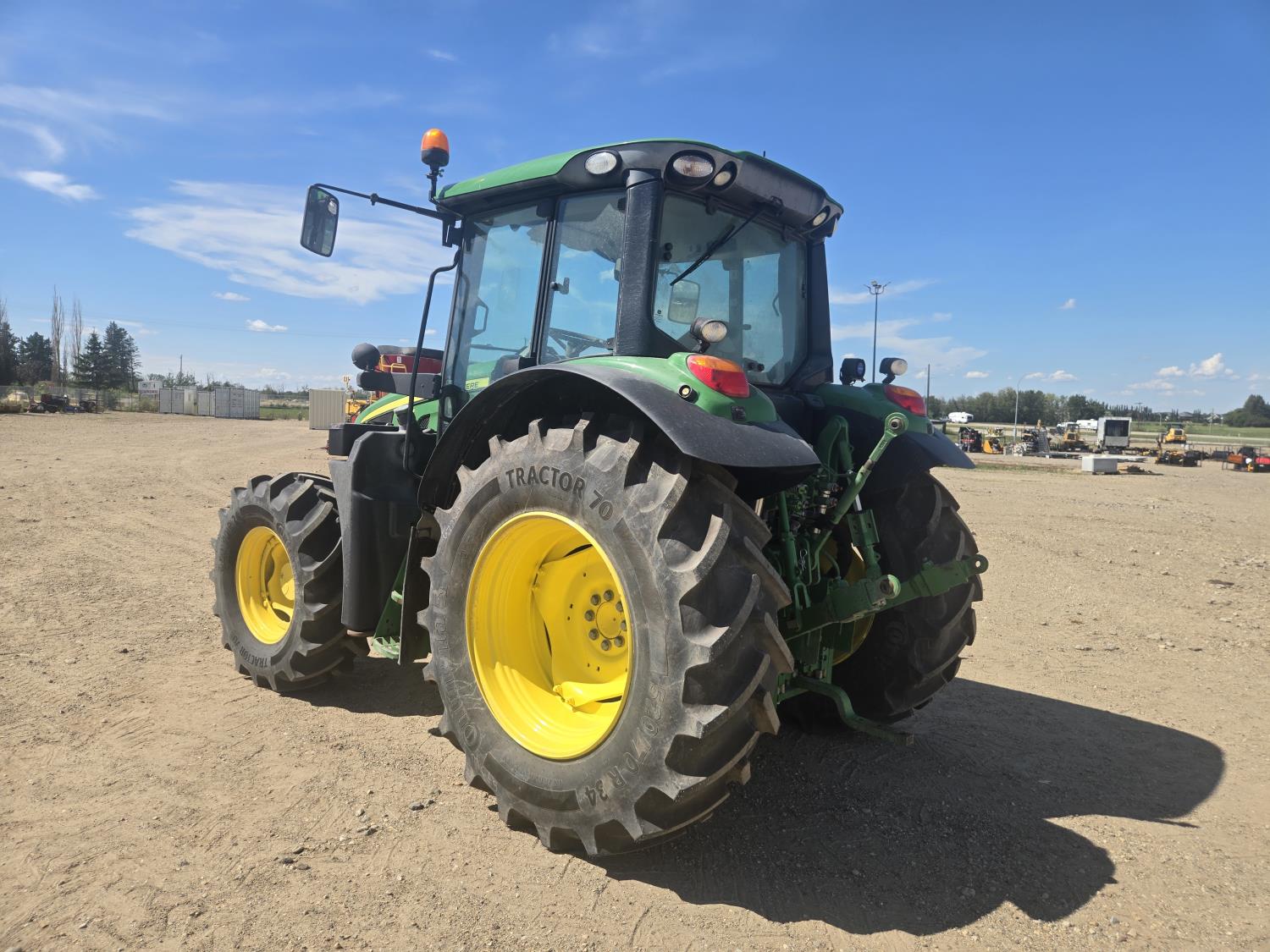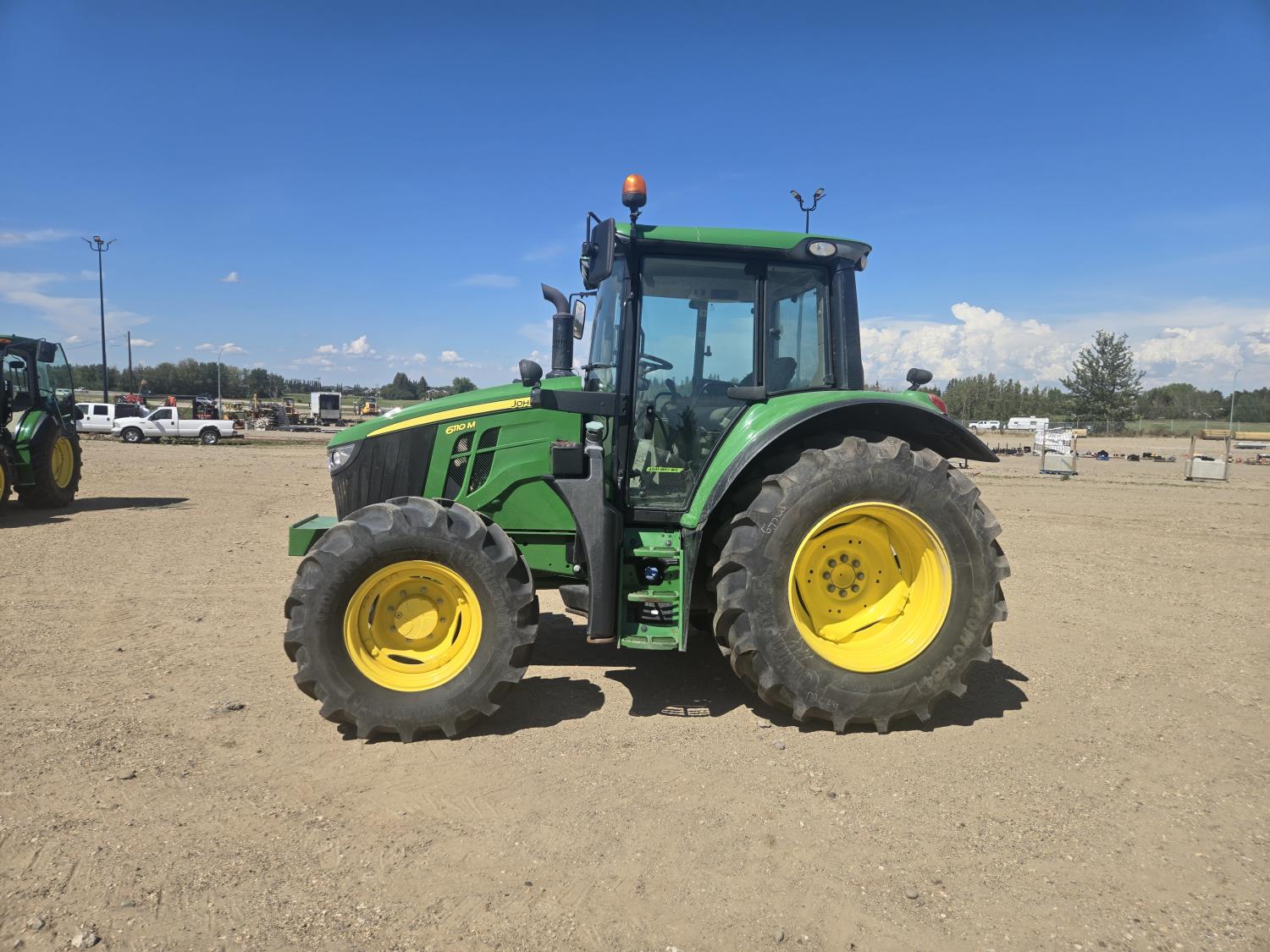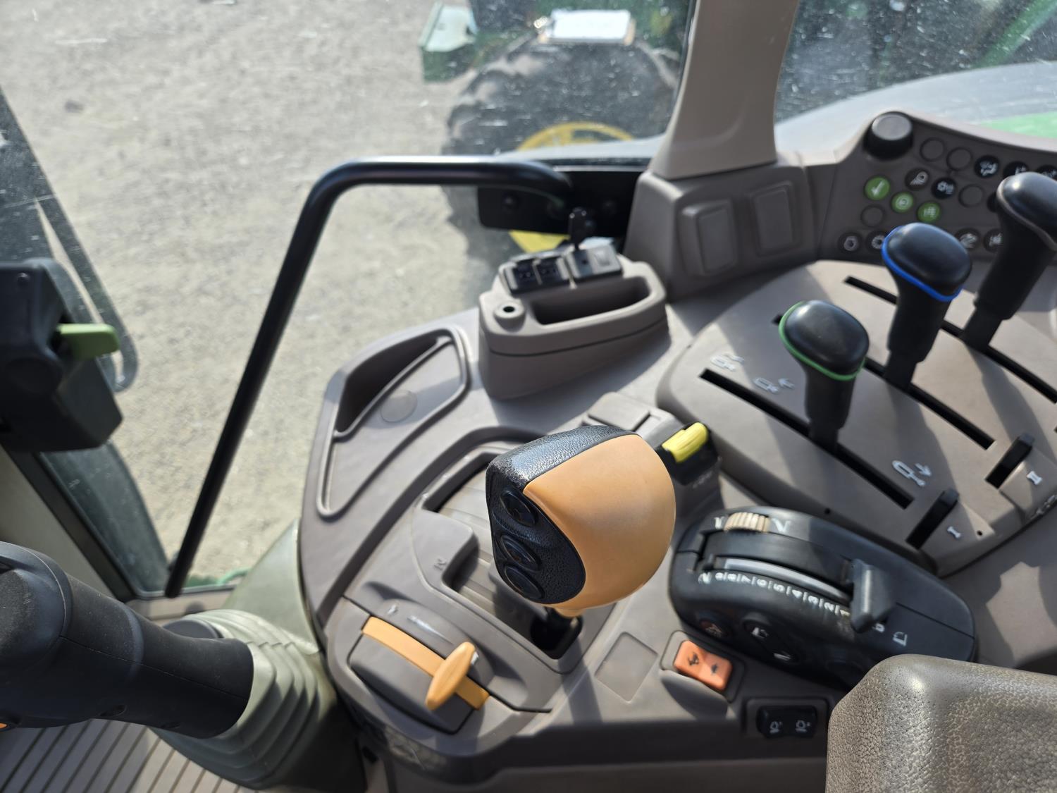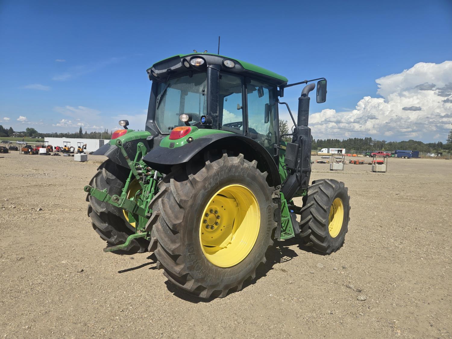 John Deere 4.5 L 4 cylinder 110 HP, diesel engine, 24 speed partial power shift transmission, cab, left hand reverser, rear differential lock, A/C, radio, GPS ready, 540/1000 PTO, 3 point hitch, 3 point hitch exterior control, 3 rear hydraulic outlets, joystick, (3) Mid hydraulics, loader ready, front weight bracket, 420/70R24 front tires, 520/70R34 rear tires