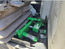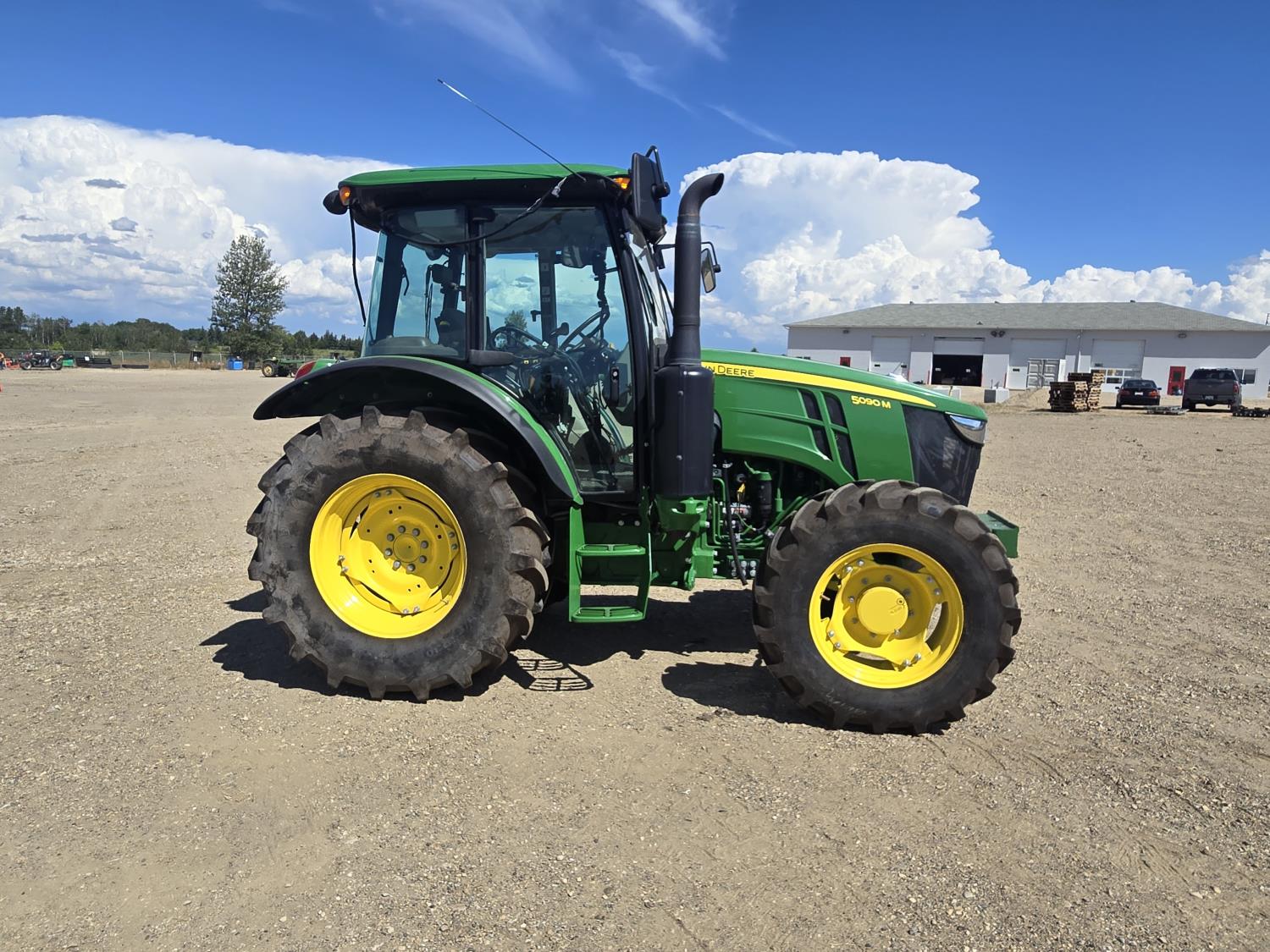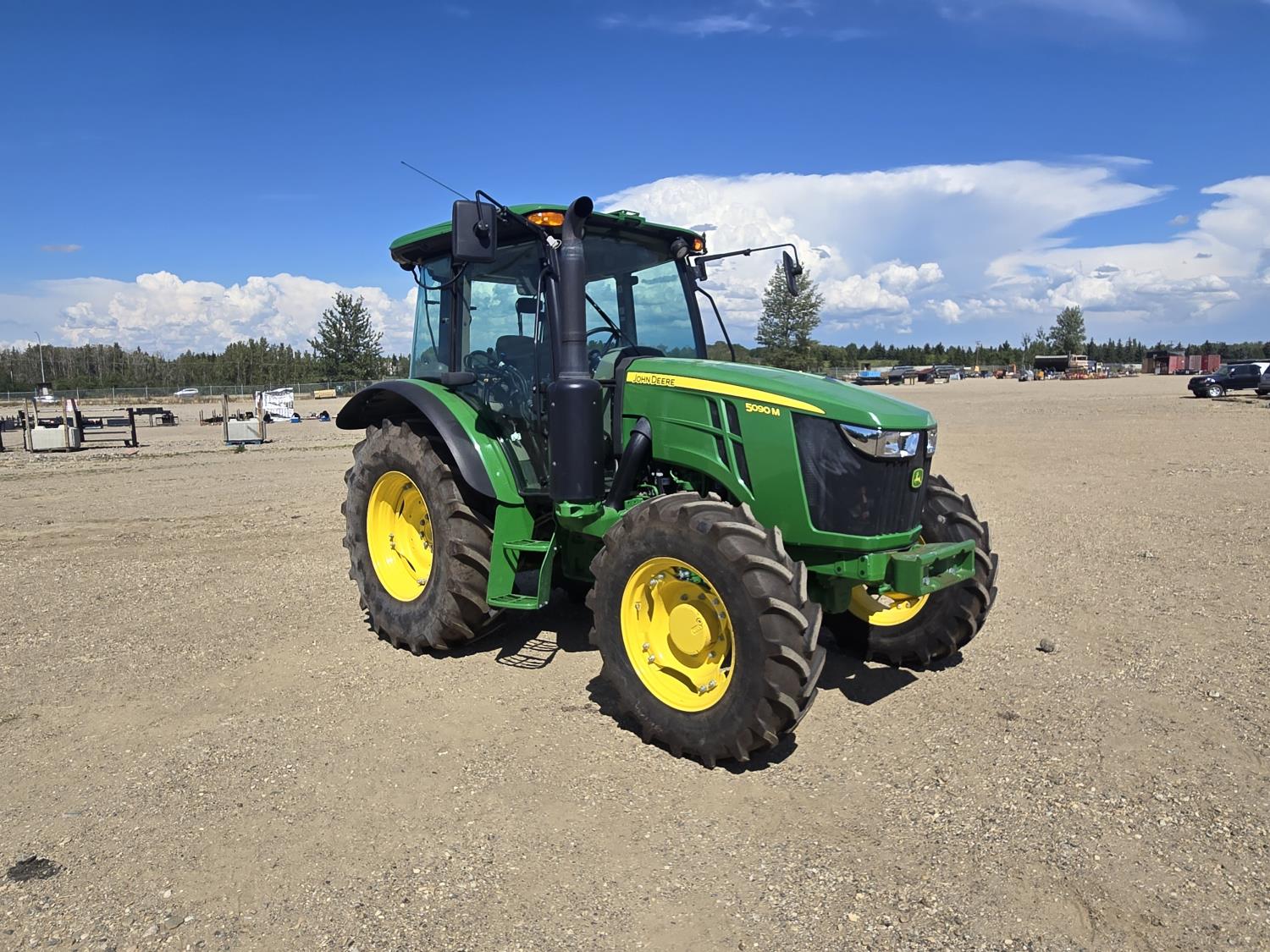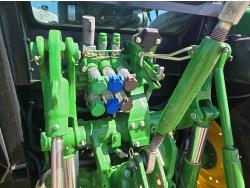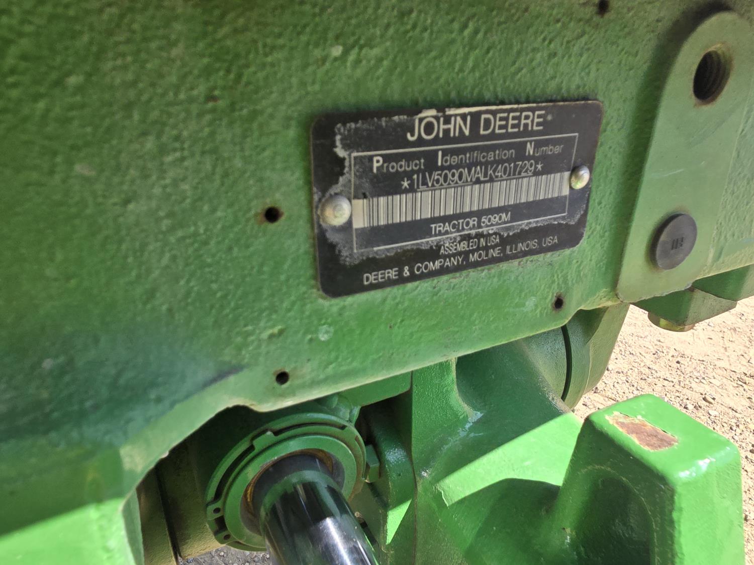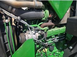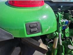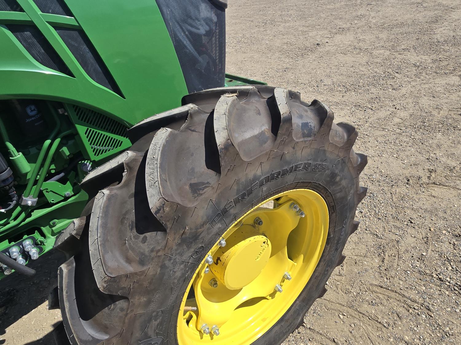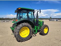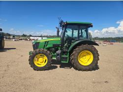 John Deere 4.5 4 cylinder 90 HP, diesel engine, 32 speed partial power shift transmission, cab, left hand reverser, rear differential lock, A/C, radio, ATV steering wheel installed, 540E / 540/1000 PTO, 3 point hitch, 3 point hitch exterior control, 3 rear hydraulic outlets, front weight bracket, joystick, (3) mid hydraulics, loader ready, 320/85R24 front tires, 460/85R30 rear tires