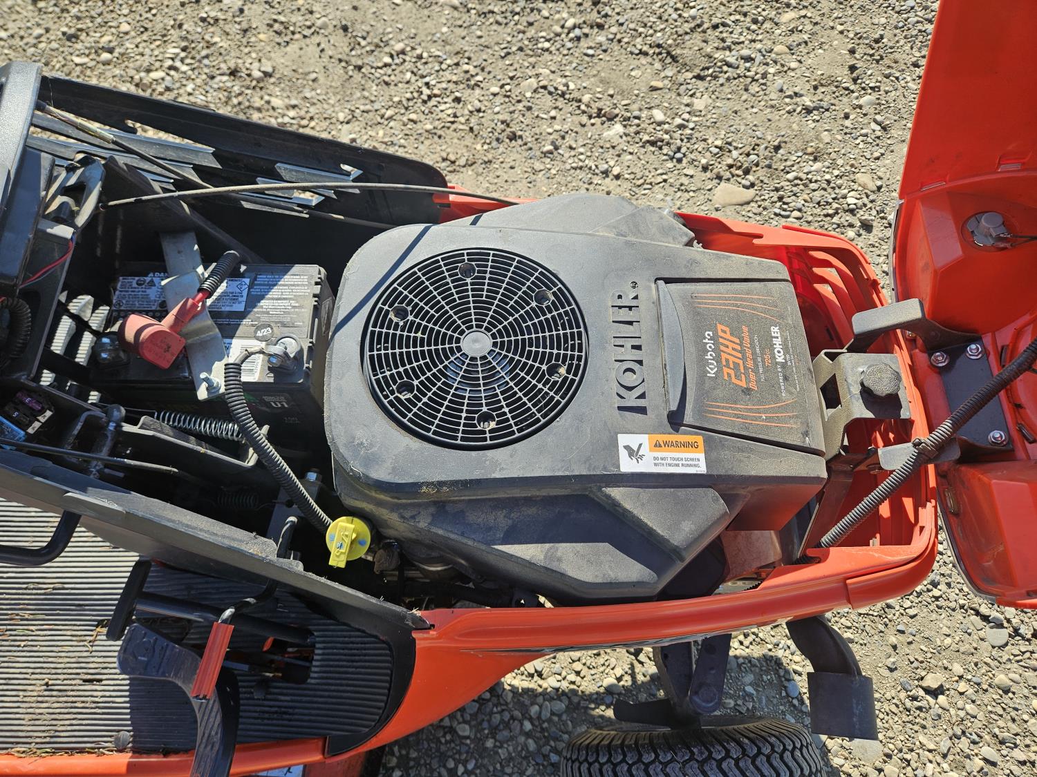 23 HP Kohler gas engine, hydrostatic transmission, 48 inch mower deck, 15x6.00-6 front tires, 22x11.00x10 rear tires