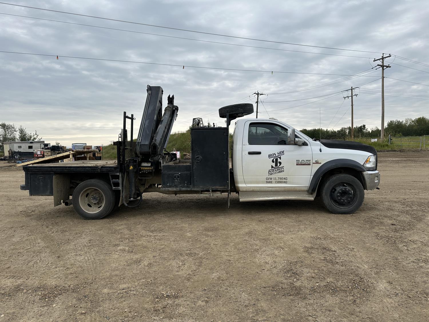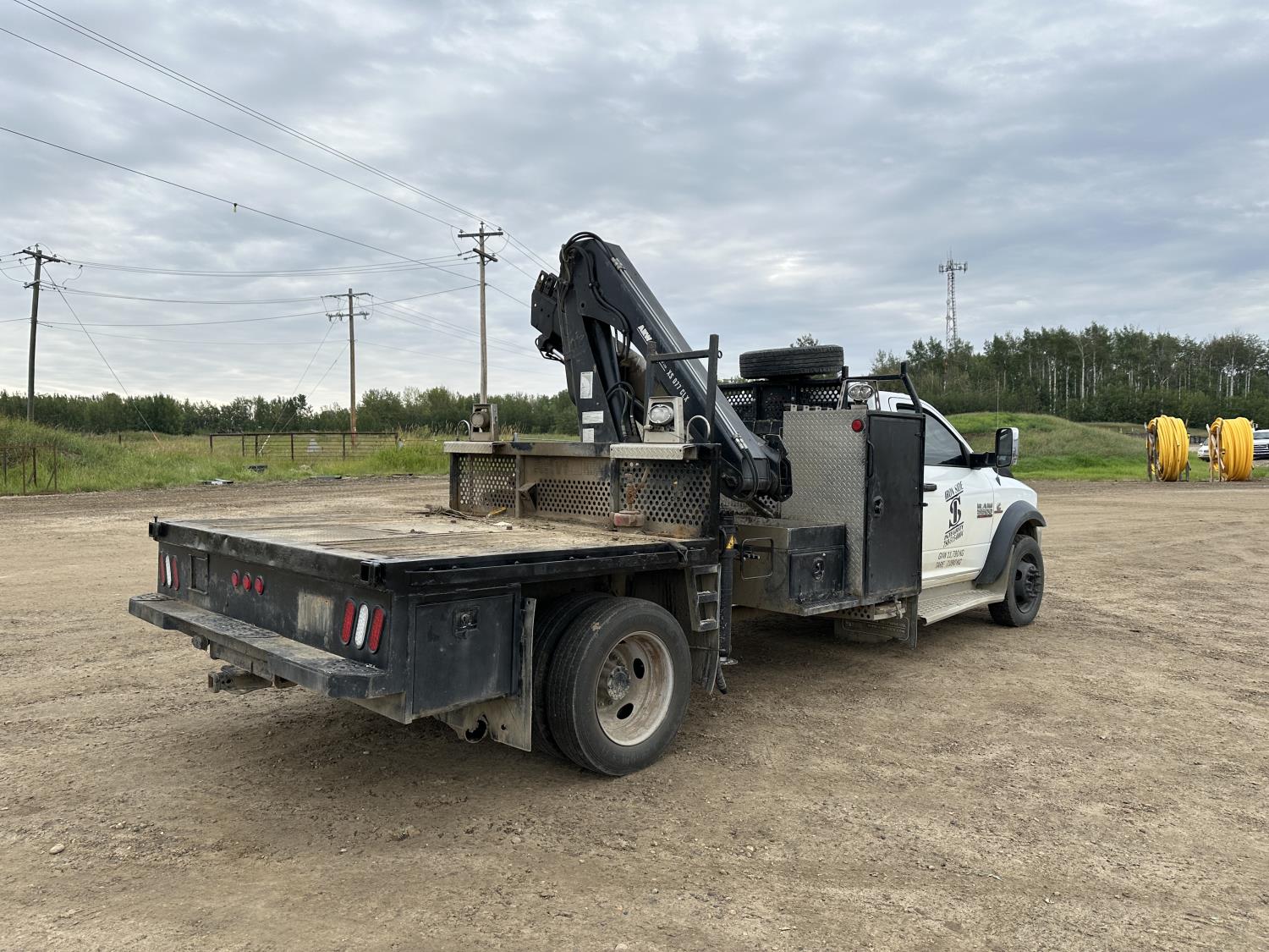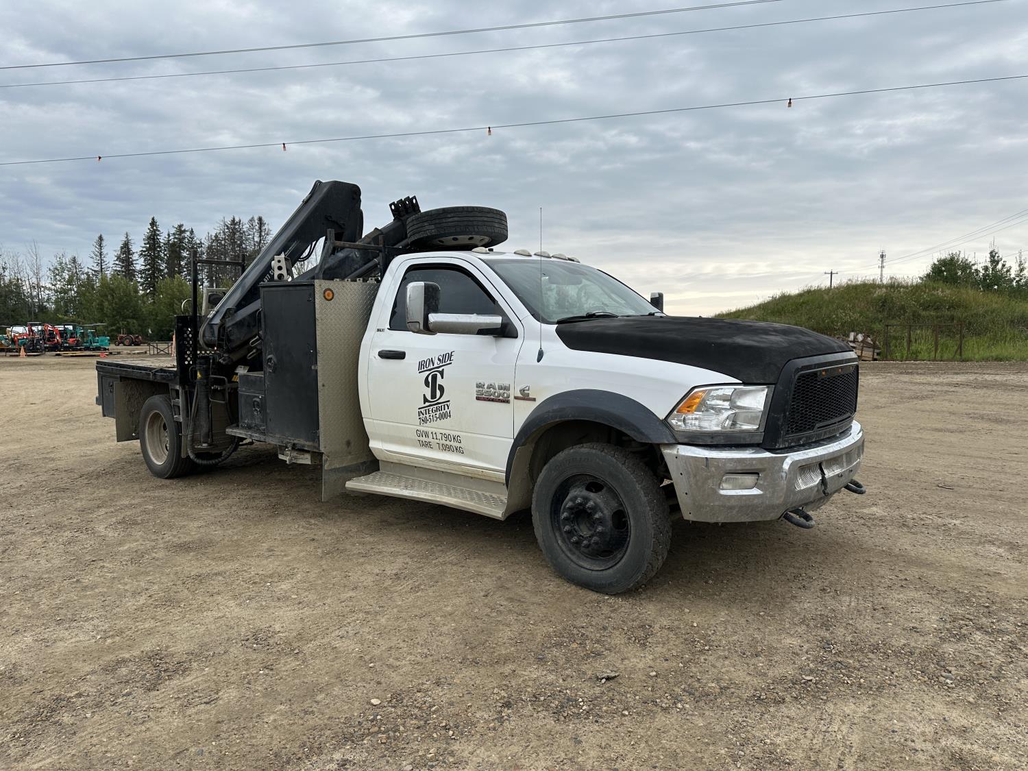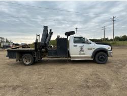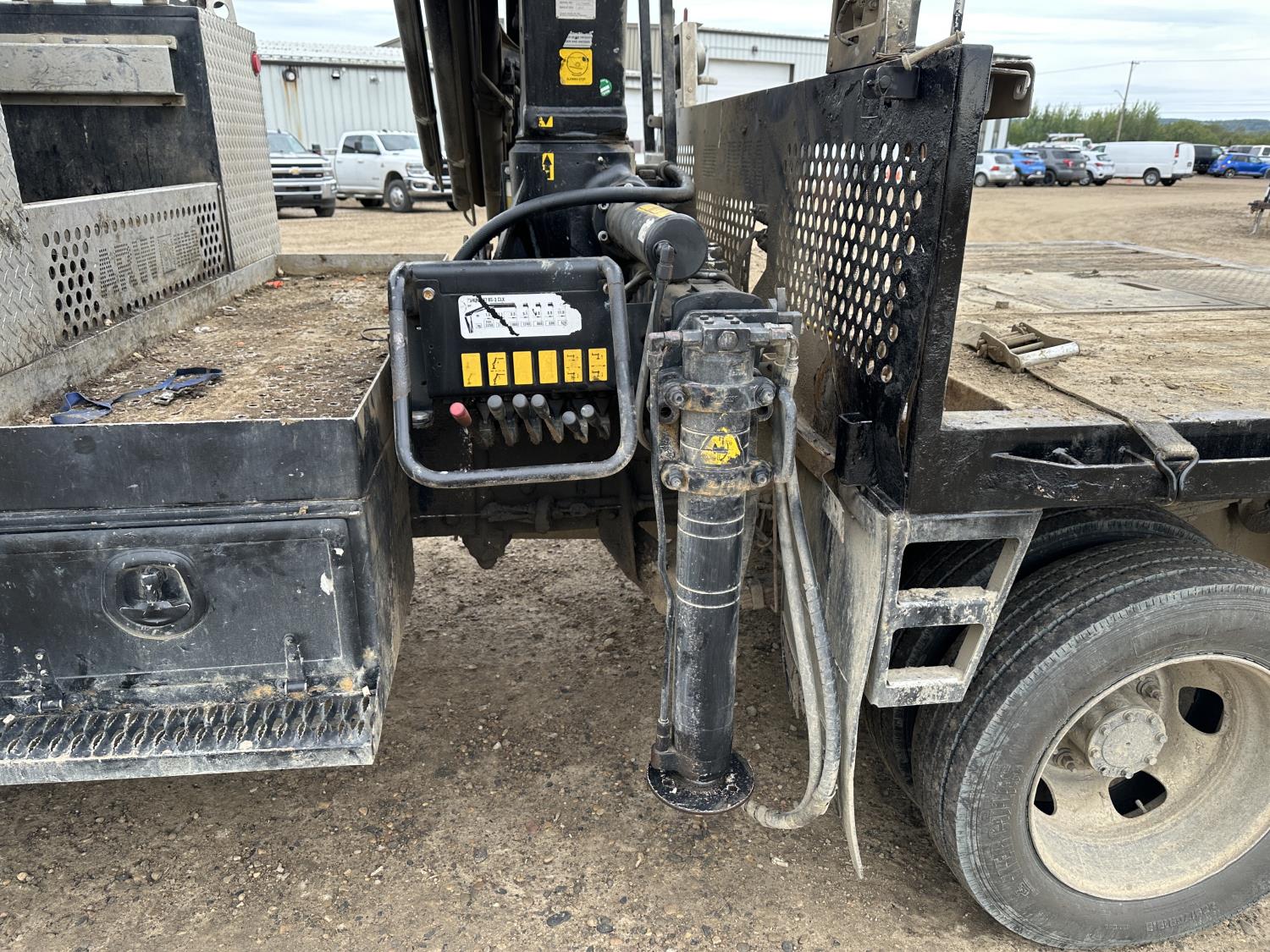Cummins 6.7 L diesel engine, positive air shutoff, automatic transmission, A/C, P/W, P/L, cruise control, radio, running boards, 5th wheel ball hitch, hydraulic wet kit, Milron steel headache rack, steel tool boxes, saddle boxes, chain holders, HIAB 077 BS-2 CLX 3 section knuckle crane, outriggers, picker certified in May of 2025, duals, 225/70R19.5 tires