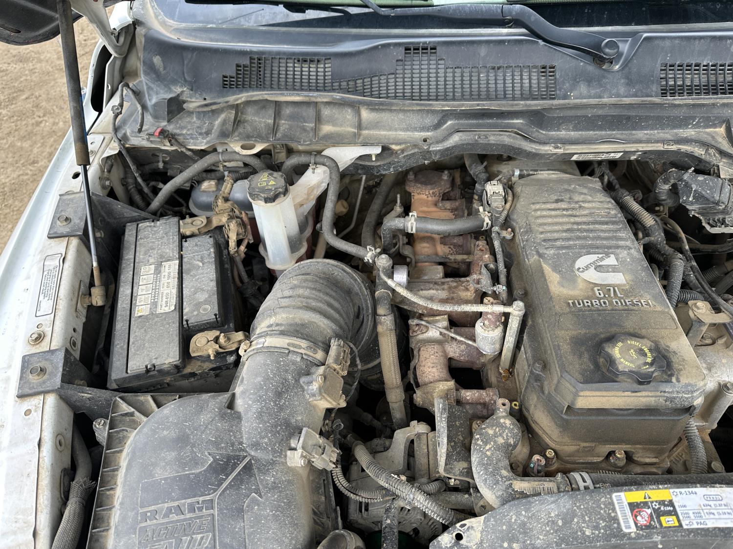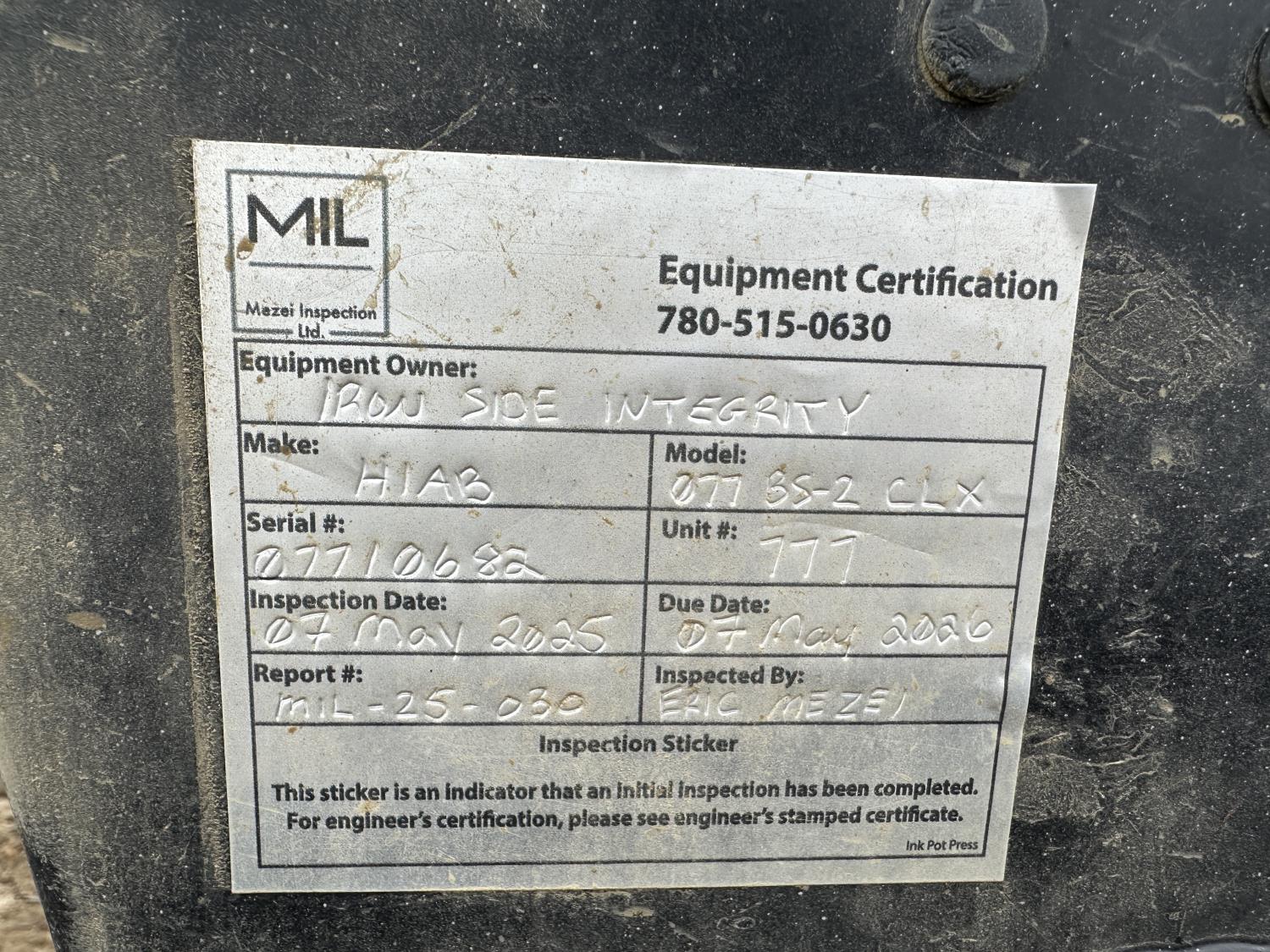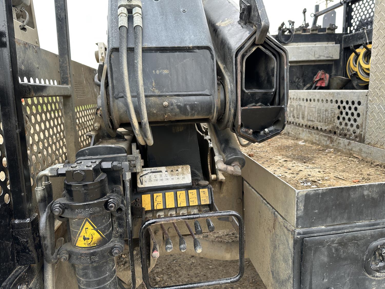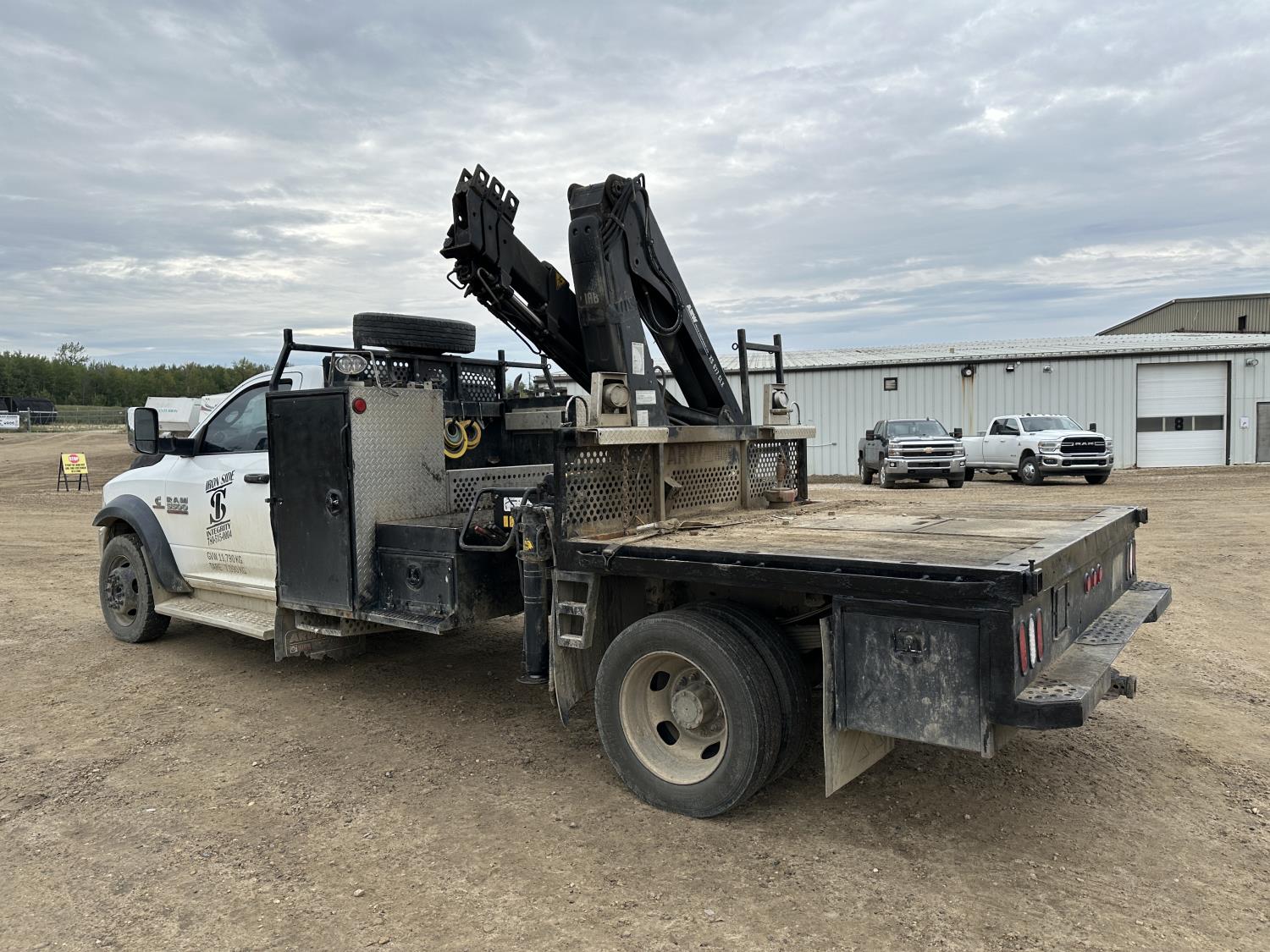 Cummins 6.7 L diesel engine, positive air shutoff, automatic transmission, A/C, P/W, P/L, cruise control, radio, running boards, 5th wheel ball hitch, hydraulic wet kit, Milron steel headache rack, steel tool boxes, saddle boxes, chain holders, HIAB 077 BS-2 CLX 3 section knuckle crane, outriggers, picker certified in May of 2025, duals, 225/70R19.5 tires