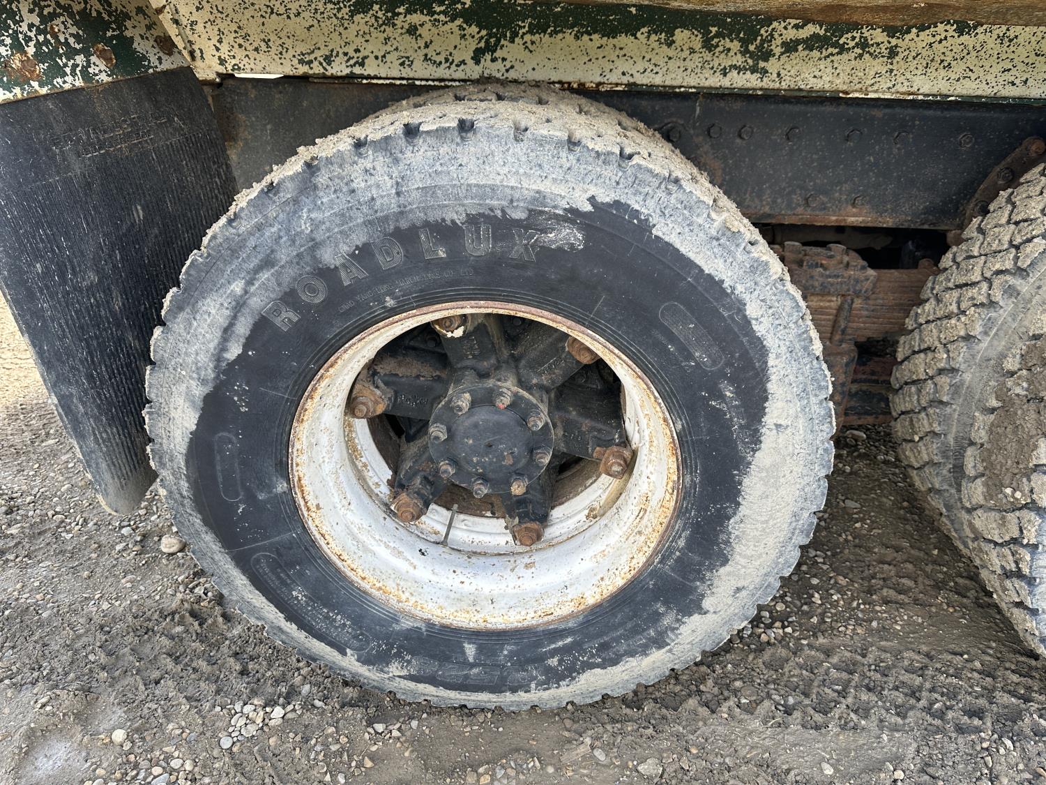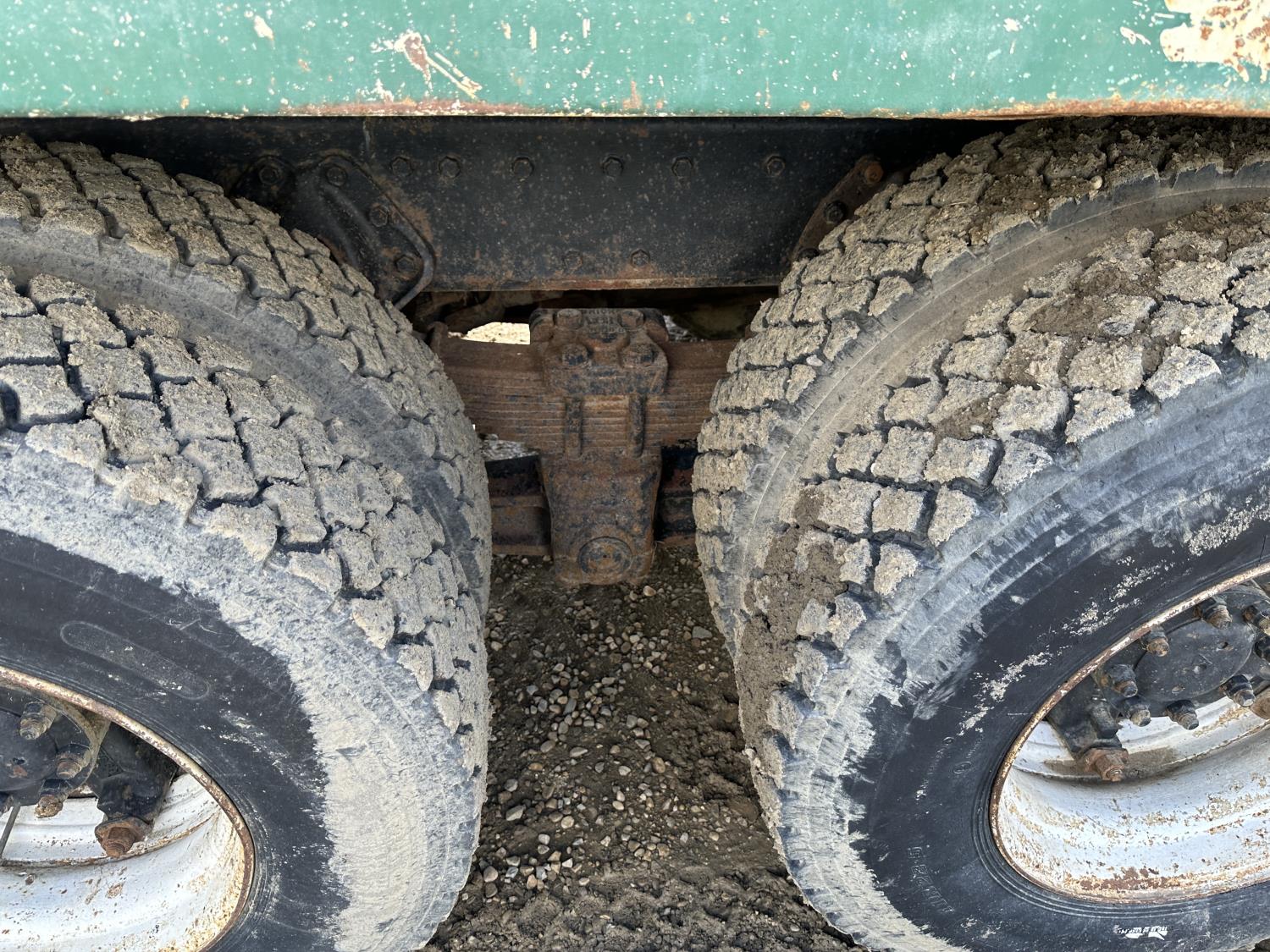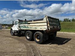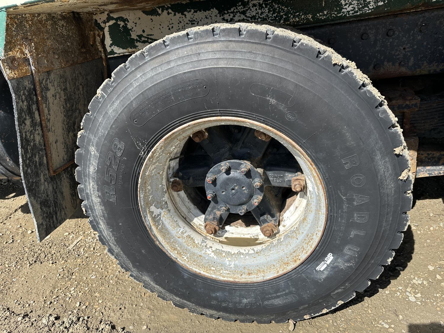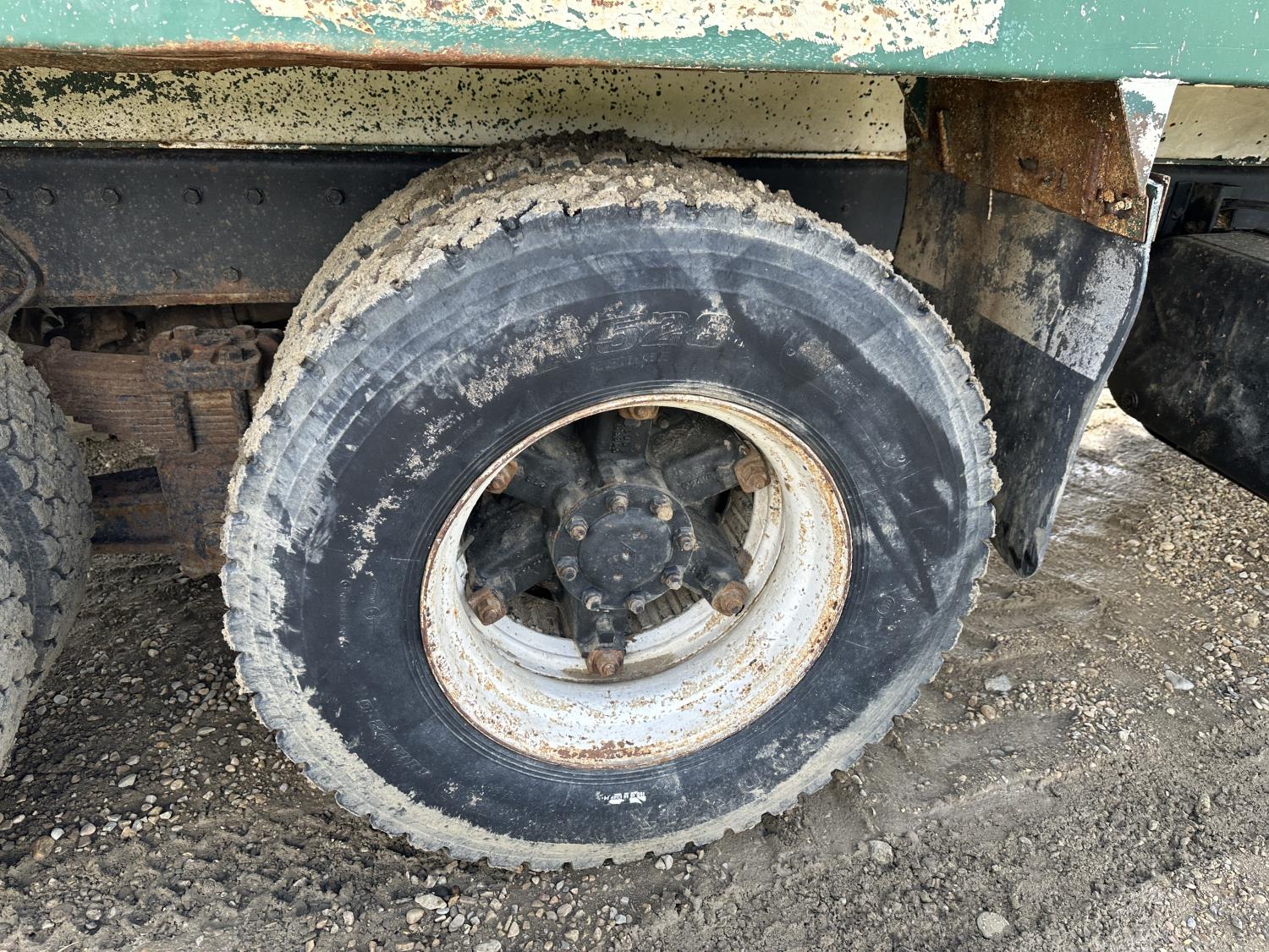 International 466 6 cylinder diesel engine, 8LL manual transmission, hydraulic wet kit, 15 ft box, hoist, roll tarp, 12,000 lb front axle, 40,000 lb rear axles, 188 inch WB, 11R22.5 front tires