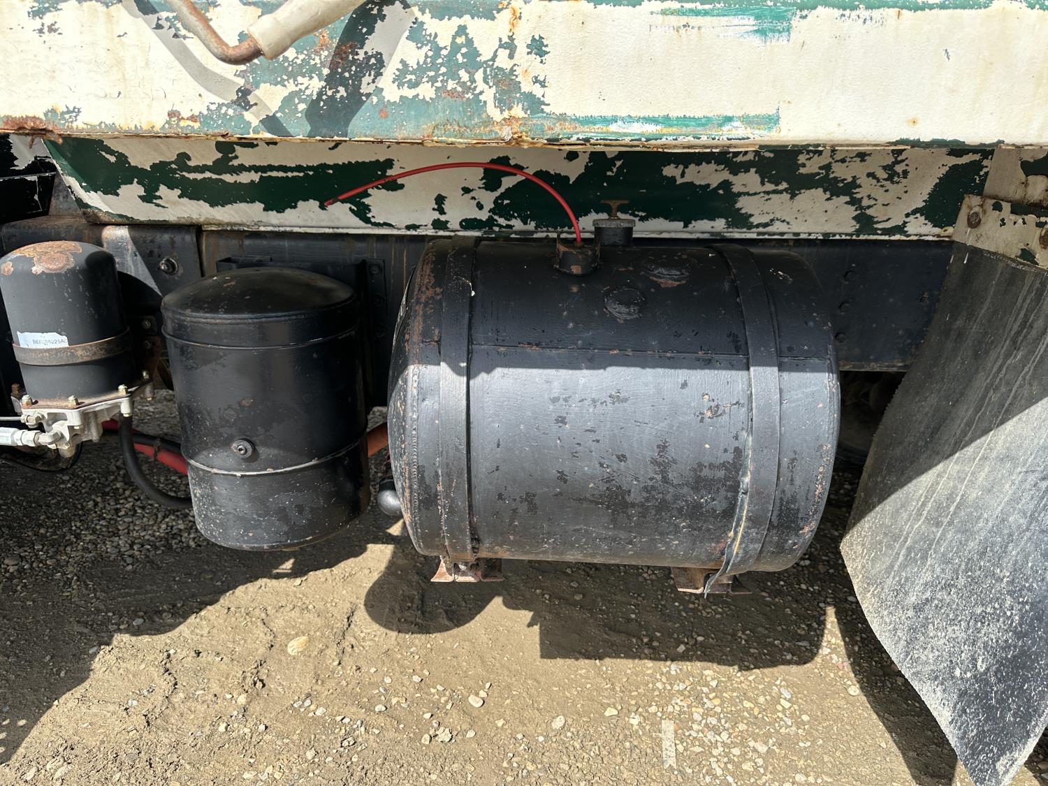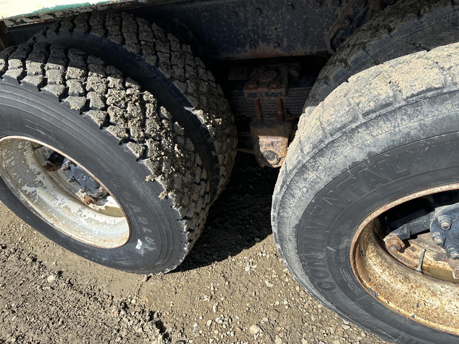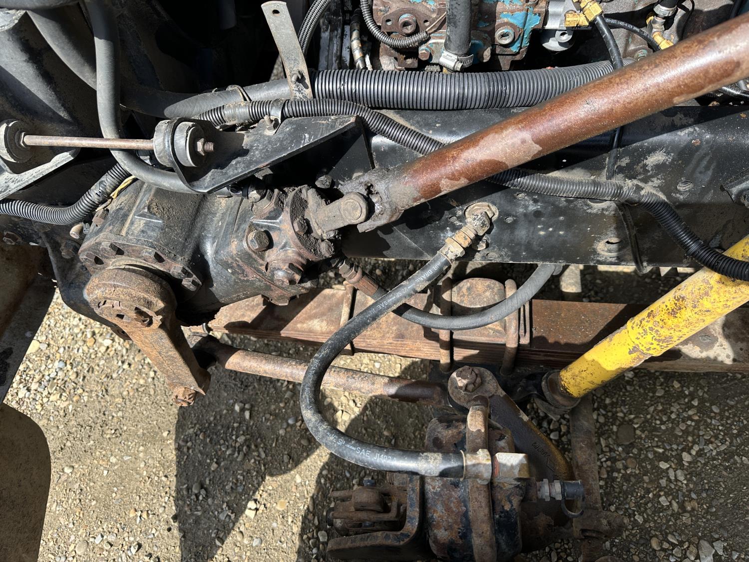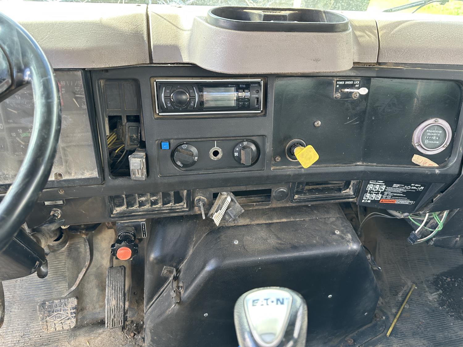 International 466 6 cylinder diesel engine, 8LL manual transmission, hydraulic wet kit, 15 ft box, hoist, roll tarp, 12,000 lb front axle, 40,000 lb rear axles, 188 inch WB, 11R22.5 front tires