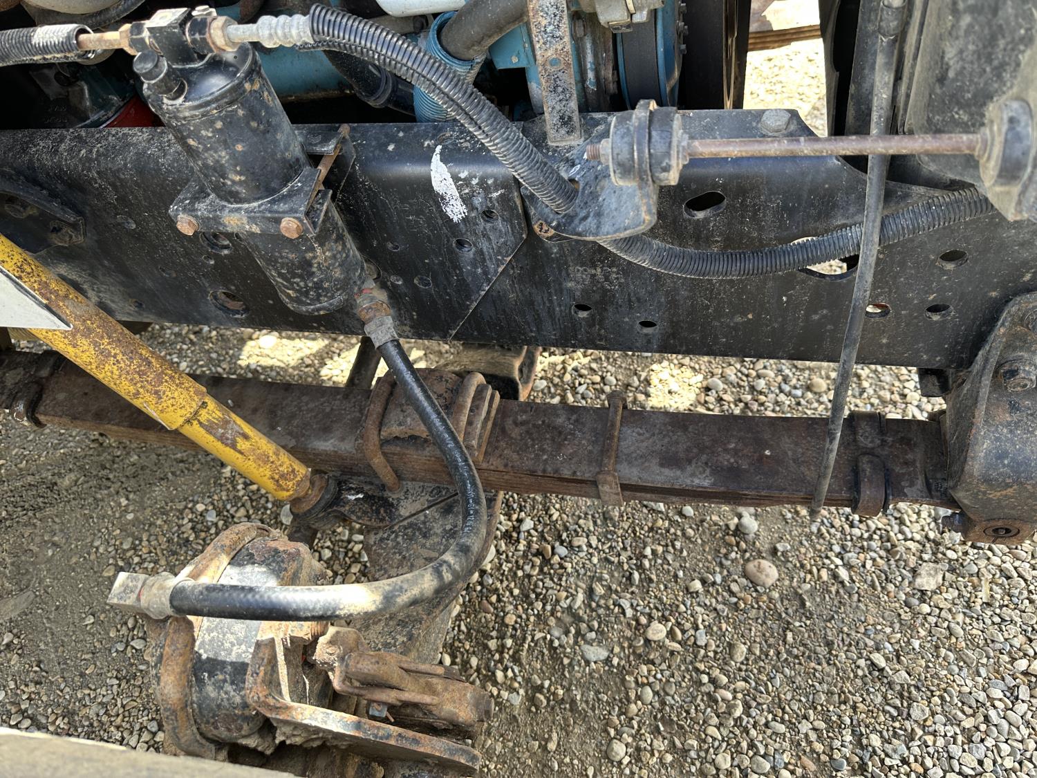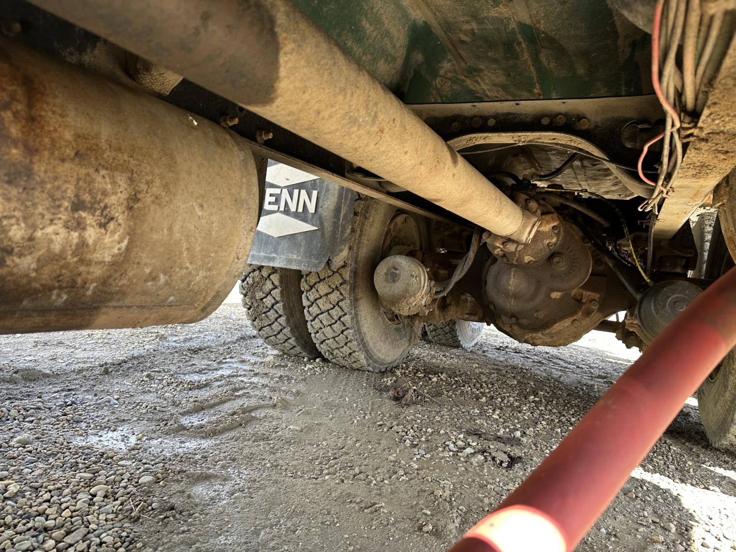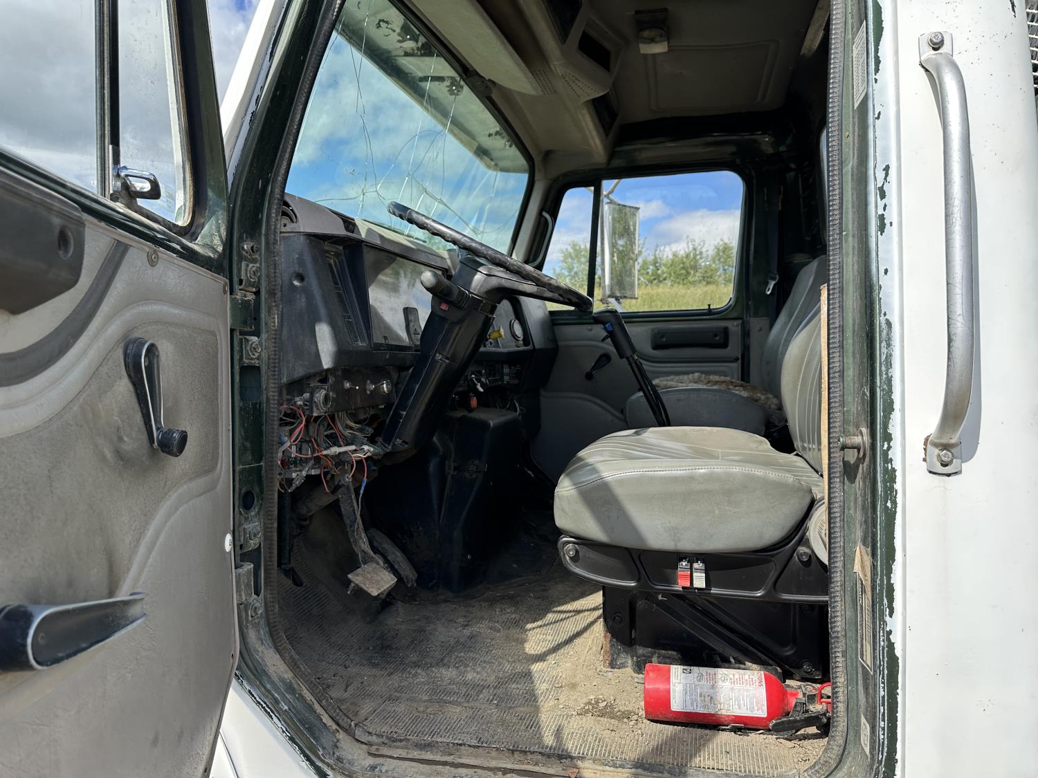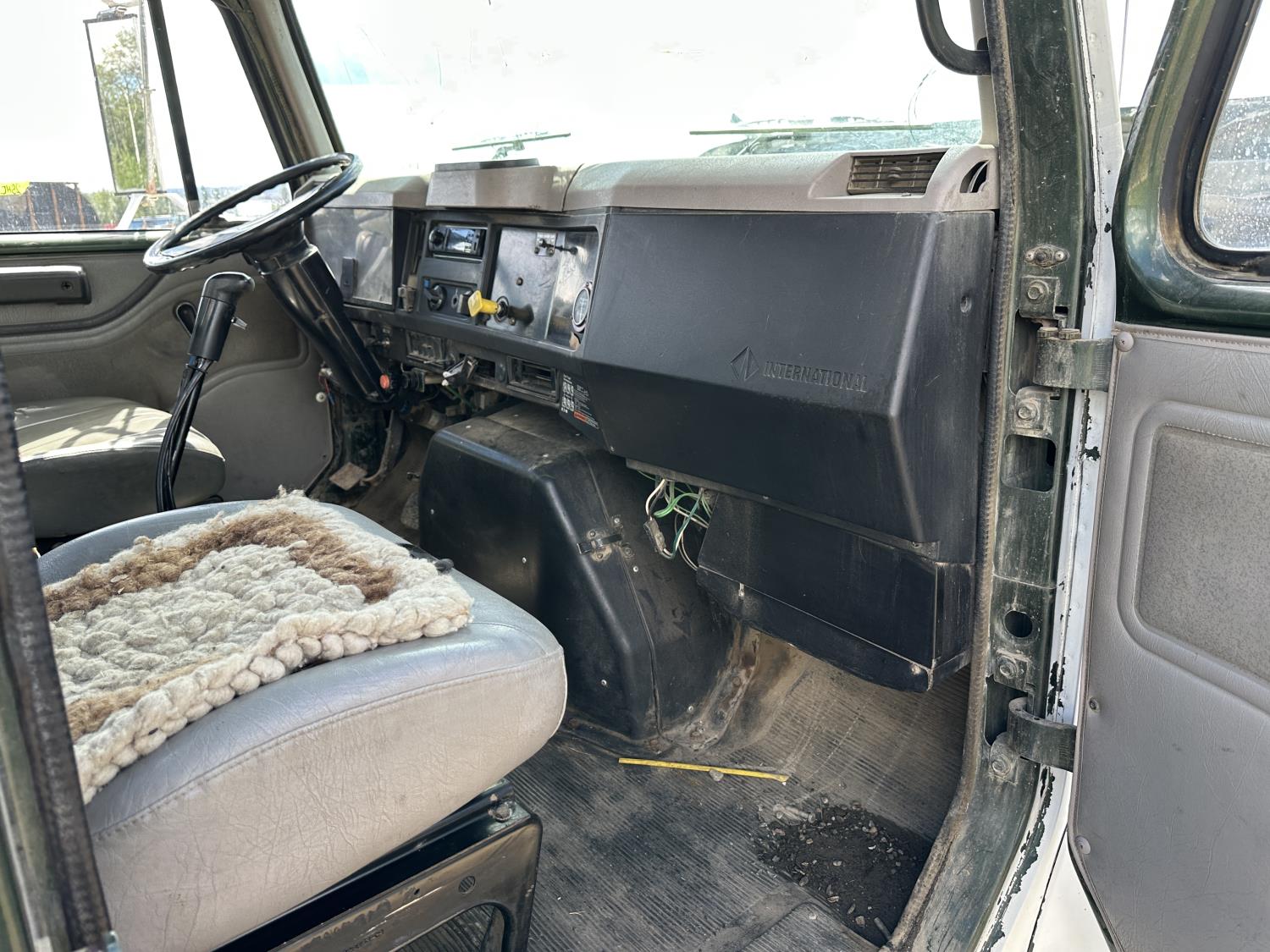 International 466 6 cylinder diesel engine, 8LL manual transmission, hydraulic wet kit, 15 ft box, hoist, roll tarp, 12,000 lb front axle, 40,000 lb rear axles, 188 inch WB, 11R22.5 front tires