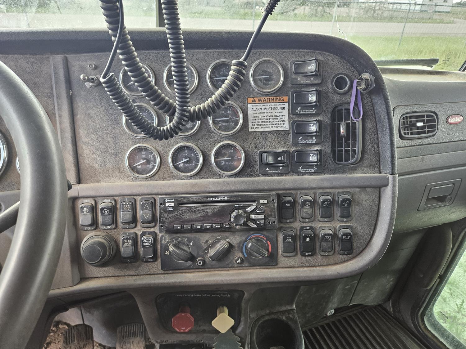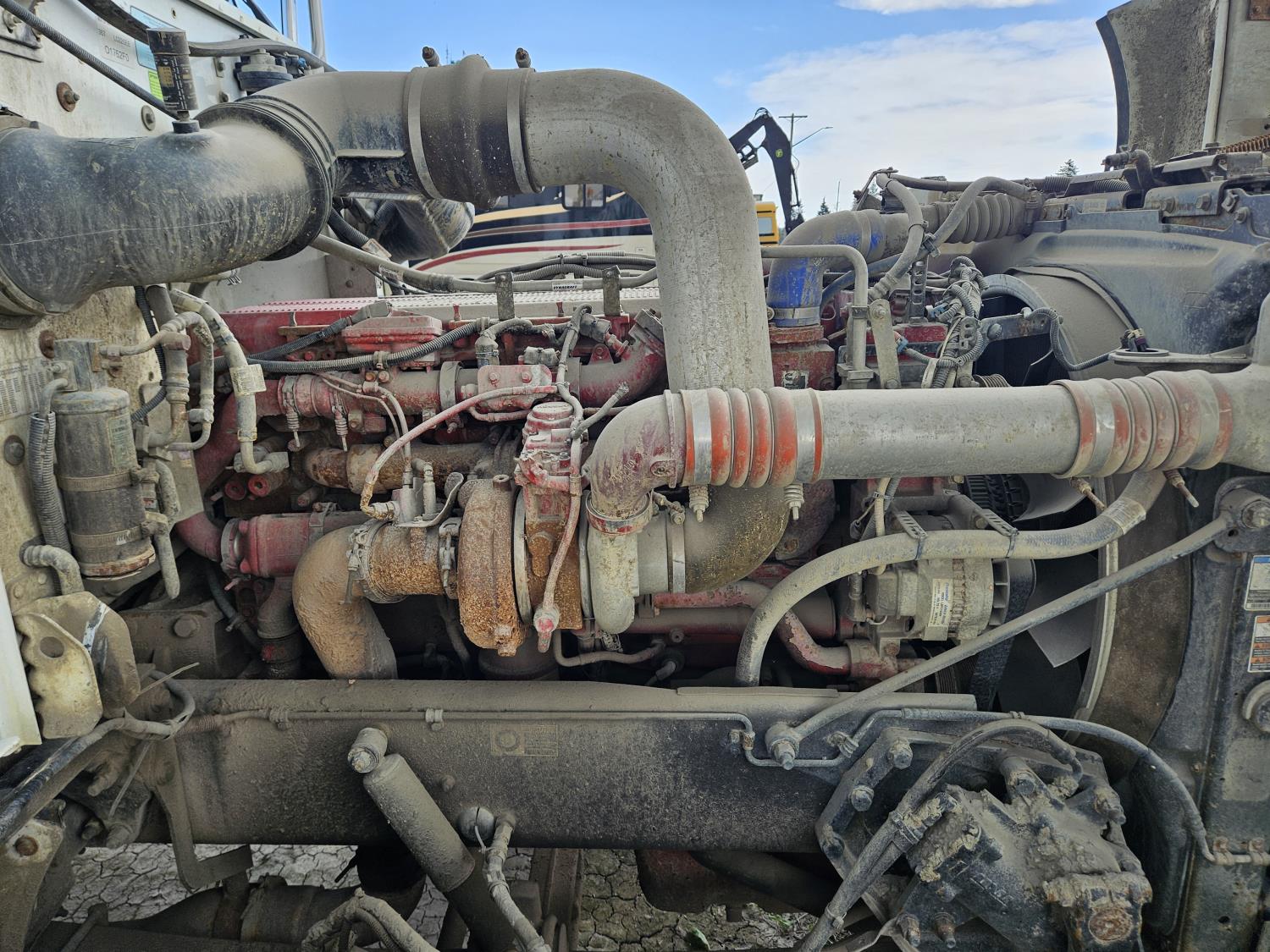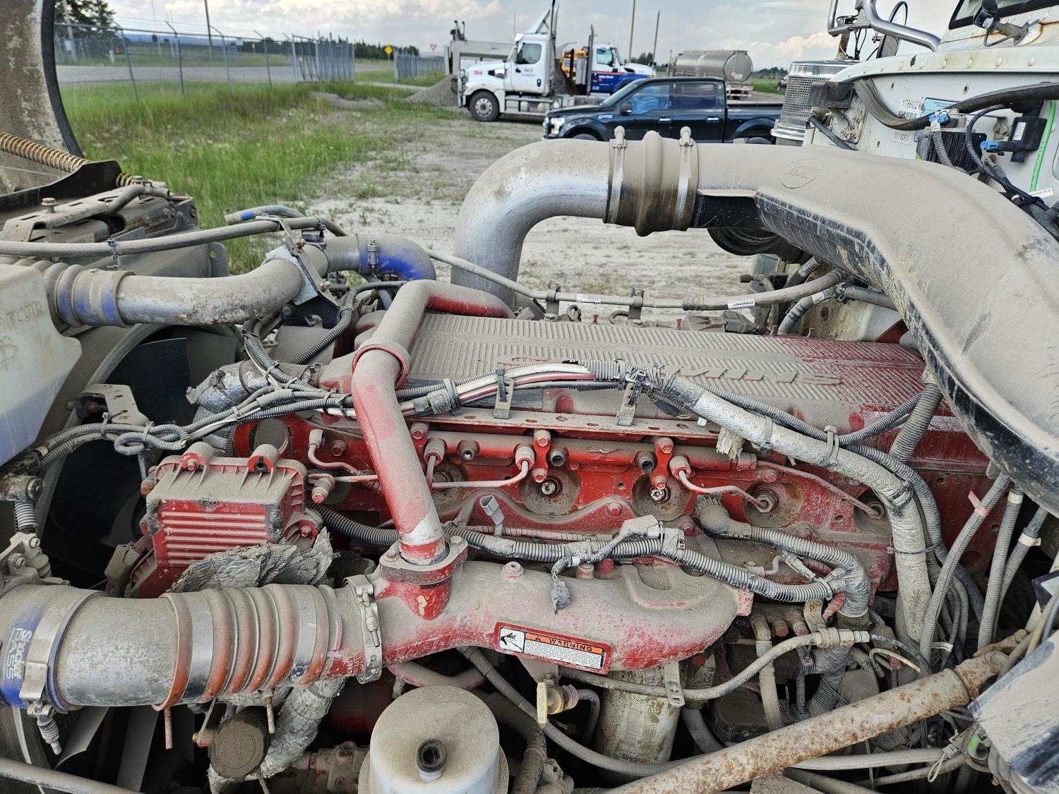 Cummins ISX 15 15L engine, DEF deleted, engine brake, Eaton Fuller 18 speed manual transmission, sleeper, A/C, cruise control, air ride driver seat, radio, CB radio, hydraulic wet kit, aluminum moose bumper, aluminum headache rack, aluminum tool boxes, chain holders, outriggers, air ride suspension, 20,000 lb front axle, 46,000 lb rear axles, full lockers, (Steel Bin Not Included), all aluminum wheels, 425/65R22.5 front tires, 11R24.5 rear tires