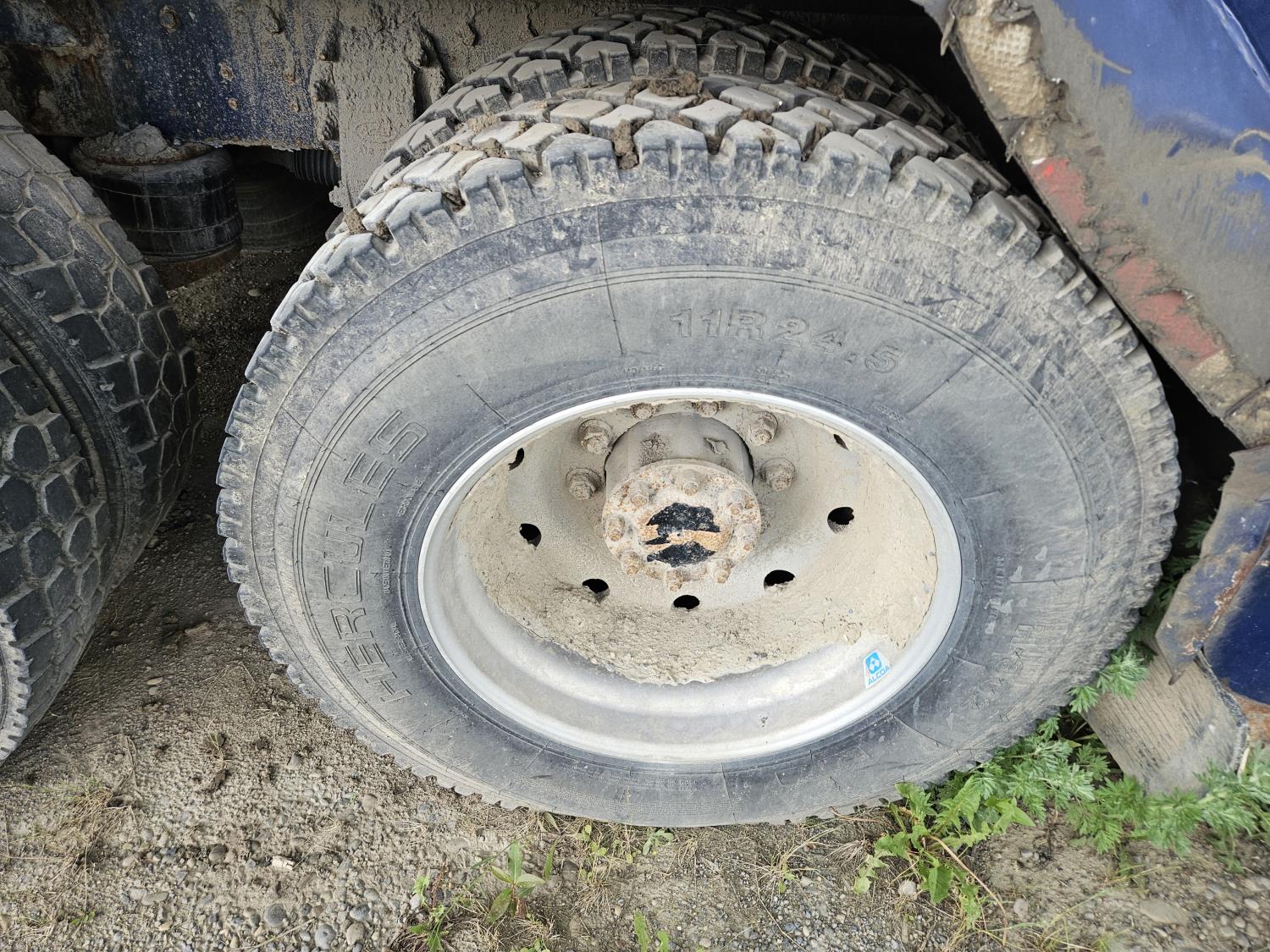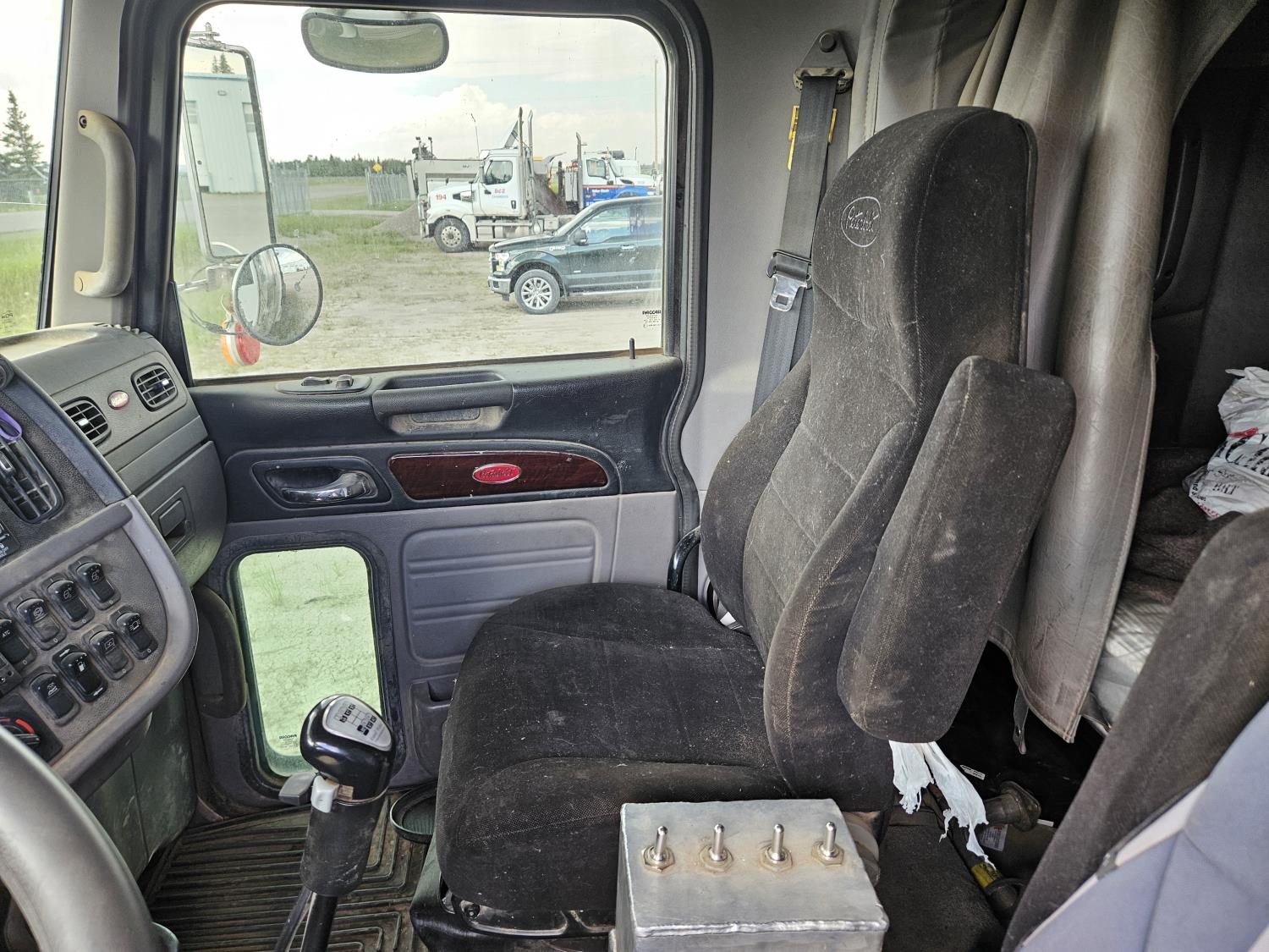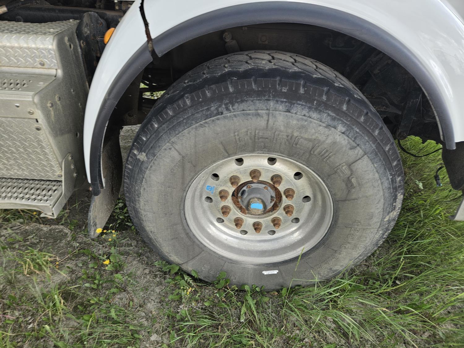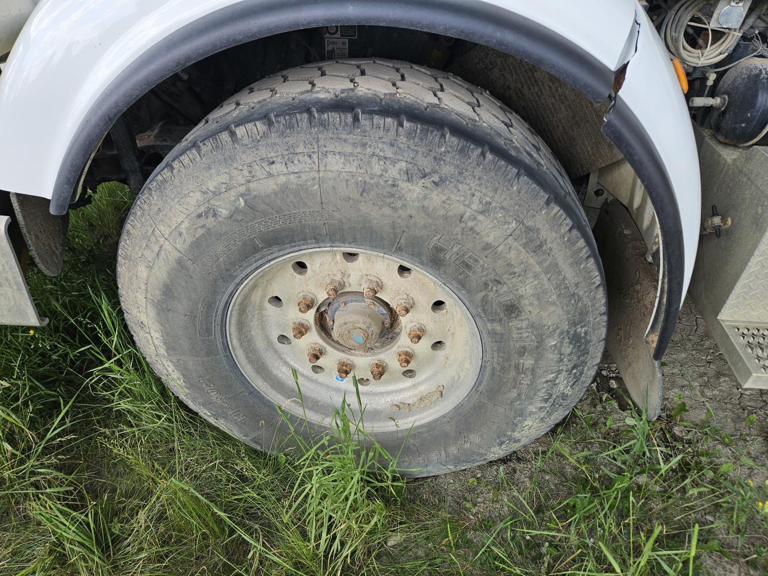 Cummins ISX 15 15L engine, DEF deleted, engine brake, Eaton Fuller 18 speed manual transmission, sleeper, A/C, cruise control, air ride driver seat, radio, CB radio, hydraulic wet kit, aluminum moose bumper, aluminum headache rack, aluminum tool boxes, chain holders, outriggers, air ride suspension, 20,000 lb front axle, 46,000 lb rear axles, full lockers, (Steel Bin Not Included), all aluminum wheels, 425/65R22.5 front tires, 11R24.5 rear tires