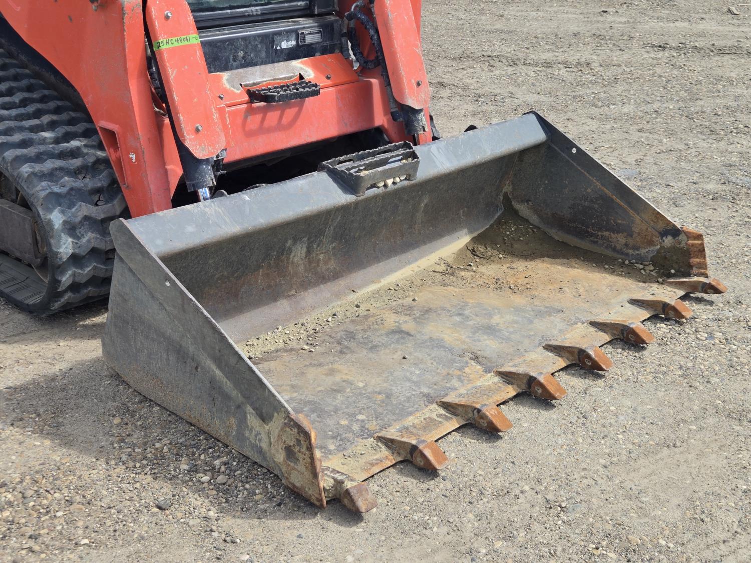 Enclosed cab, A/C, diesel engine, 2 speed transmission, 72 inch toothed bucket, hydraulic Q/C coupler, 1 auxiliary hydraulics, Qty of spare filters, 16 inch rubber tracks