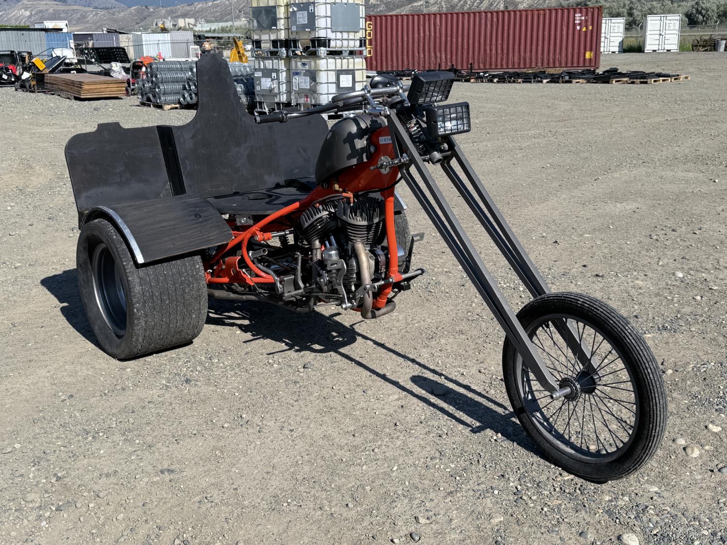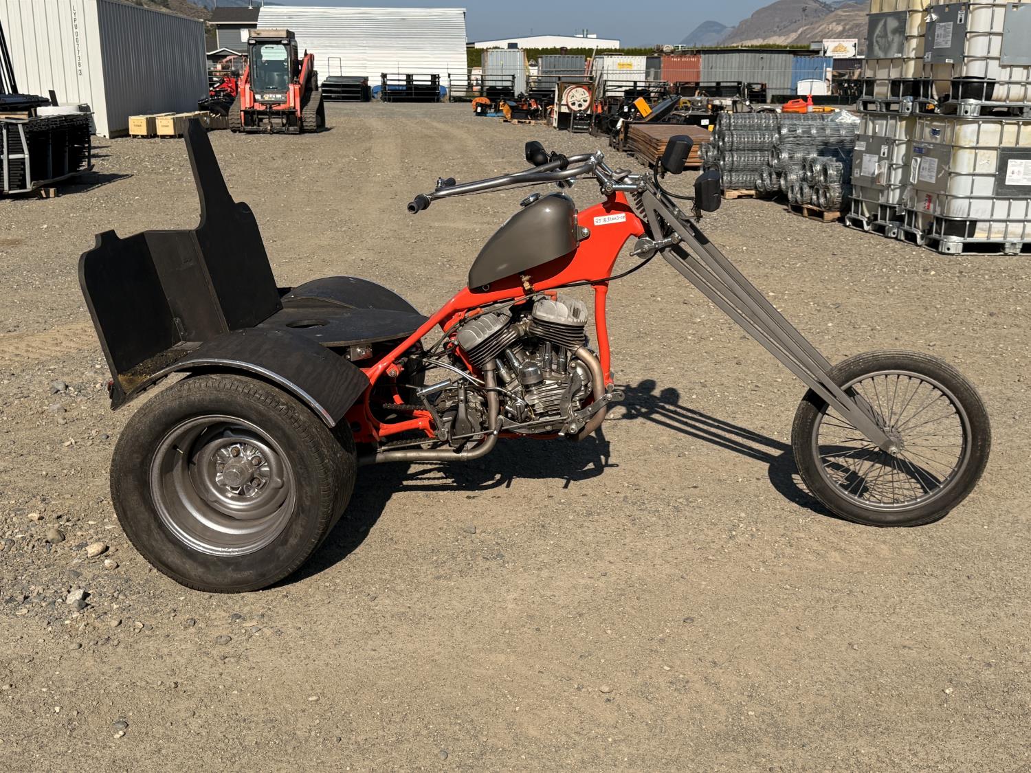 45 Flathead Harley Trike 750 cc, 550/15-15 rear tires, 2.75-18 front tire