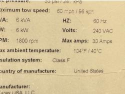 6 KW, 240v, 30amp, Pintle Hitch, 3 cylinder. diesel engine, ST175/80D13 tires
