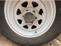 8 inch wide deck, wood deck, electric brakes, ball hitch, 2-5/16 ball, 3500 lb axles, ST225/75R15 tires