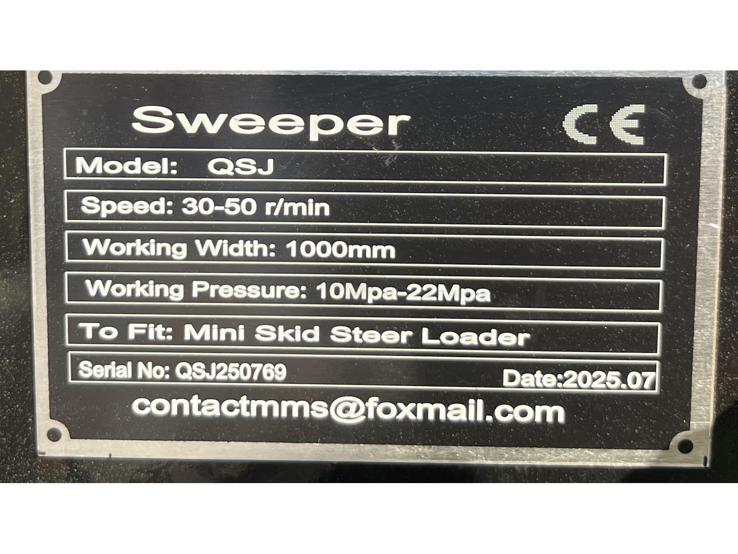 382 GIYI GY-QSJ 39 Inch Hydraulic Sweeper - Mini Skid Steer Attachment (Unused)