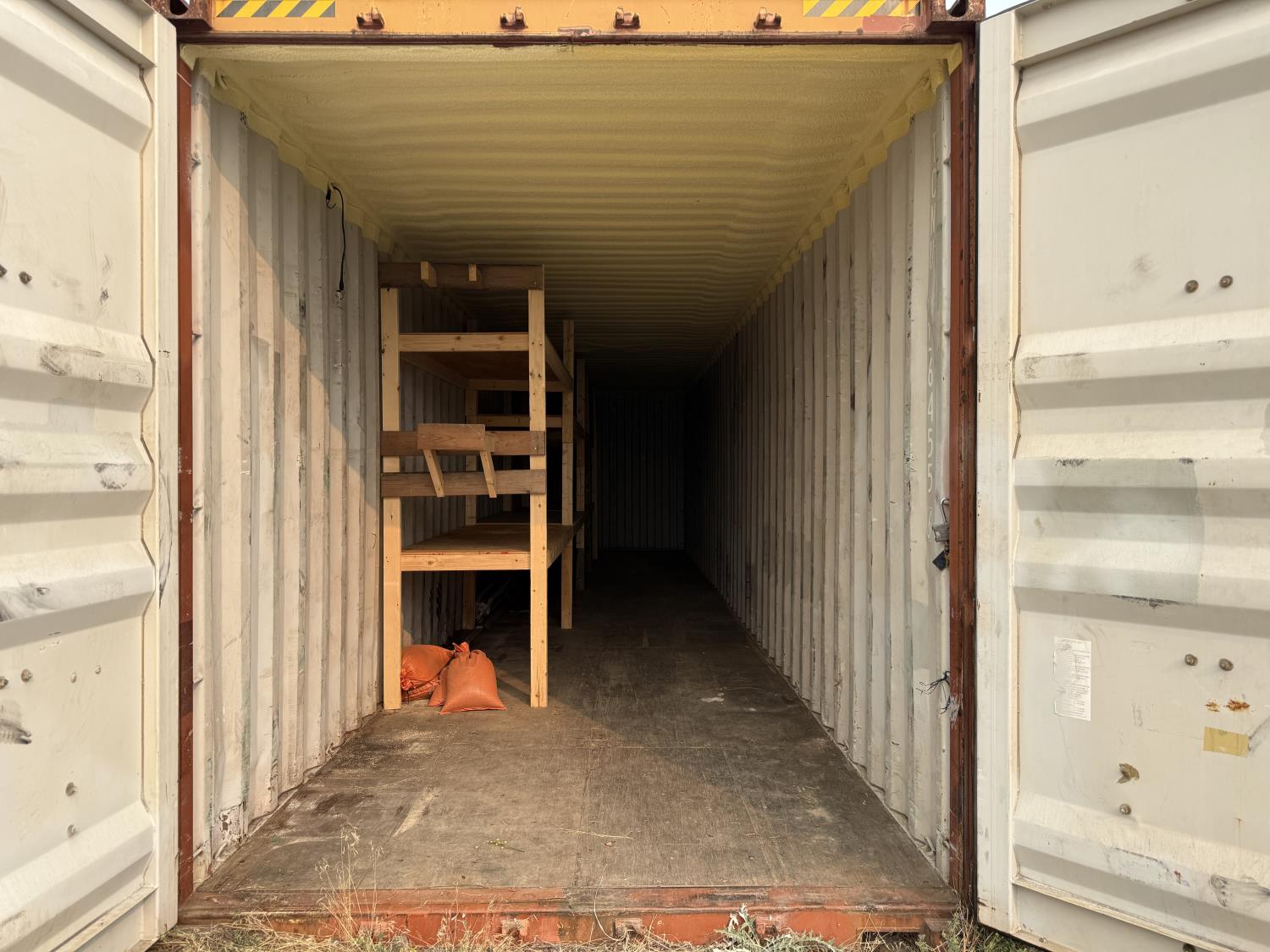 40 ft container, spray foam ceiling, c/w shelving, double rear door