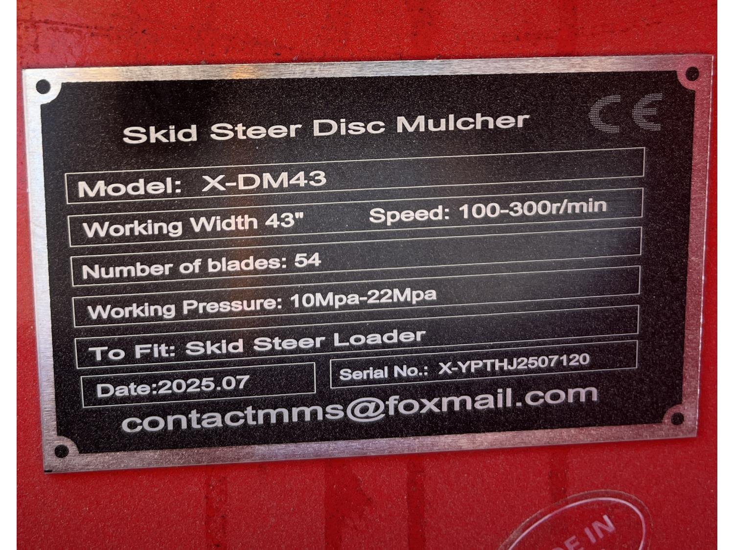 470 43 Inch Hydraulic Disc Mulcher - Skid Steer Attachment (Unused)
