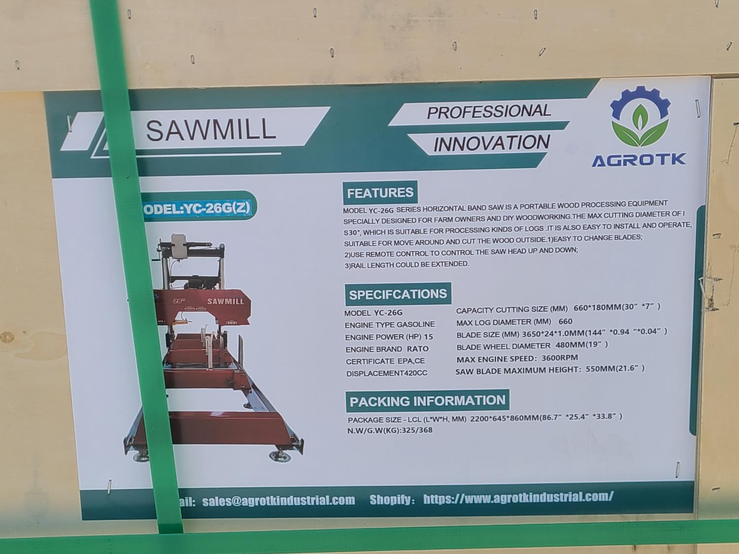 129 AGT YC-26G Portable Sawmill (Unused)