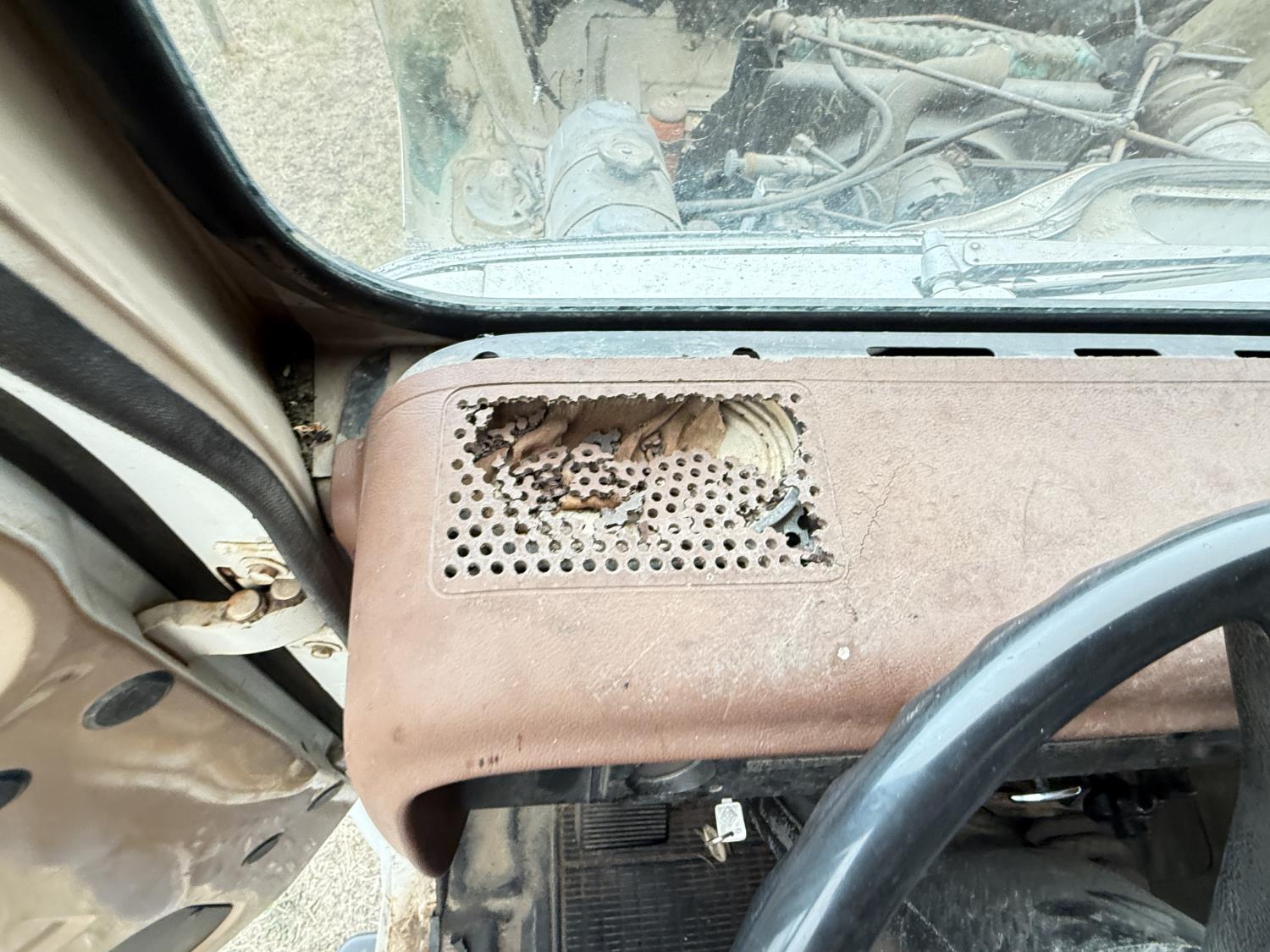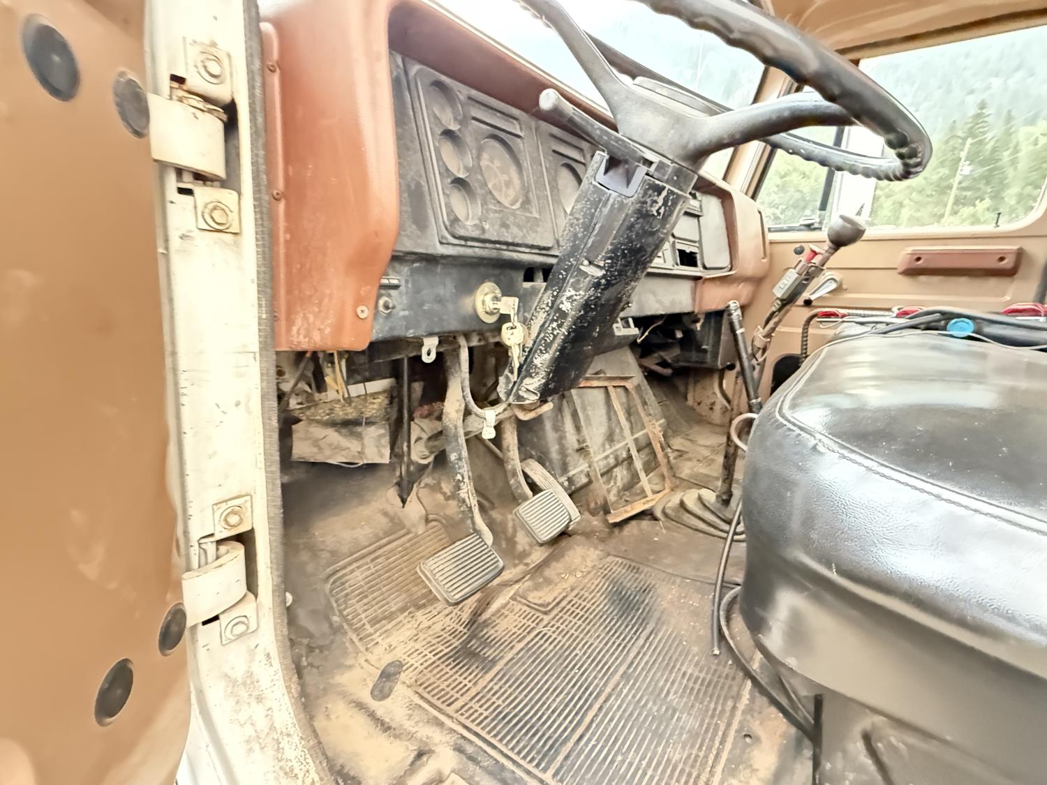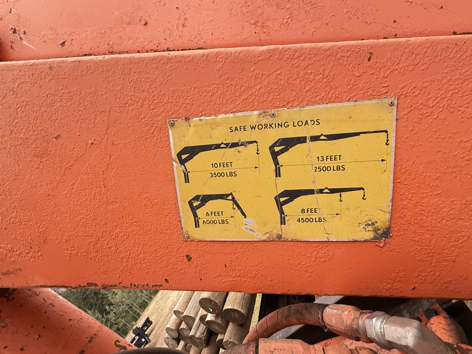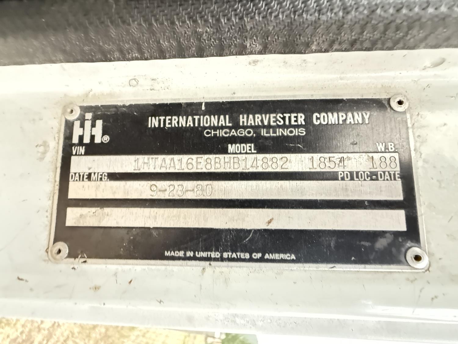 International V8 diesel engine, 5 speed manual transmission, 3 section 13 ft knuckle front mount crane, outriggers, spring suspension, 188 inch WB, 2 spd differential, Many spare parts included, 9.00/20 front tires, 8.25/20 rear tires