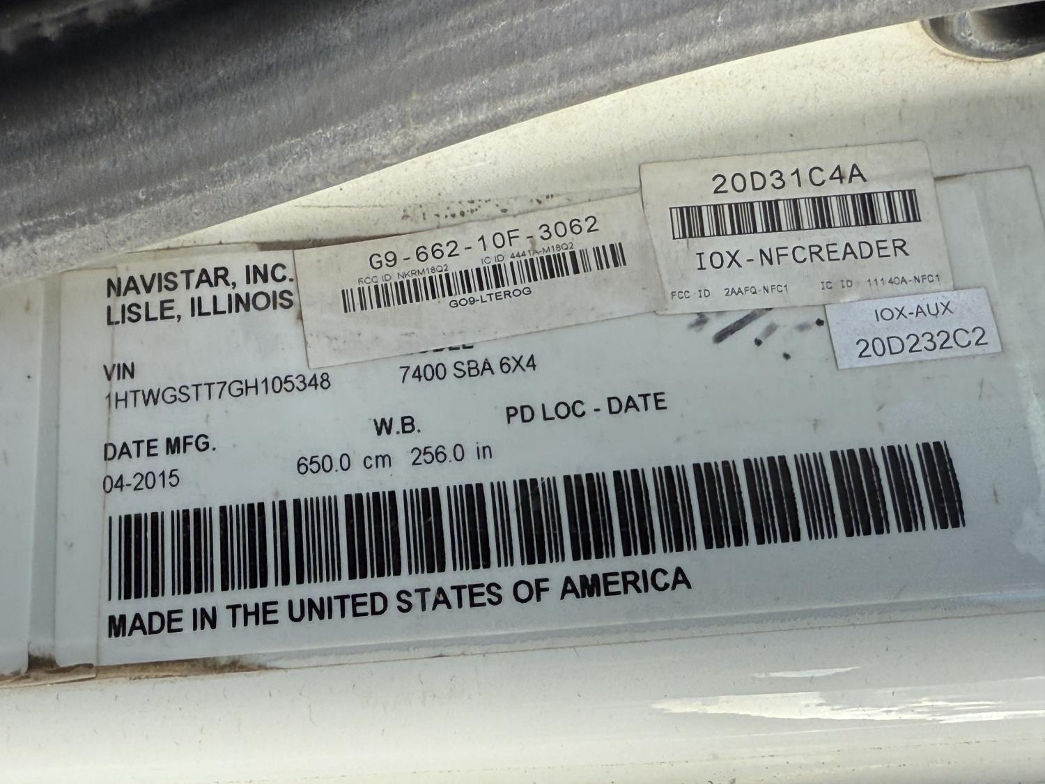 233 2016 International 7400 SBA 6x4 T/A Day Cab Sanitation Truck