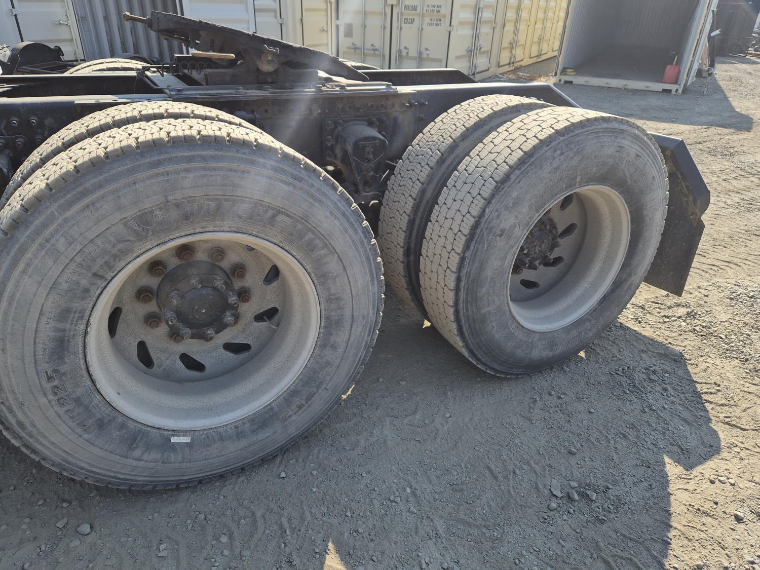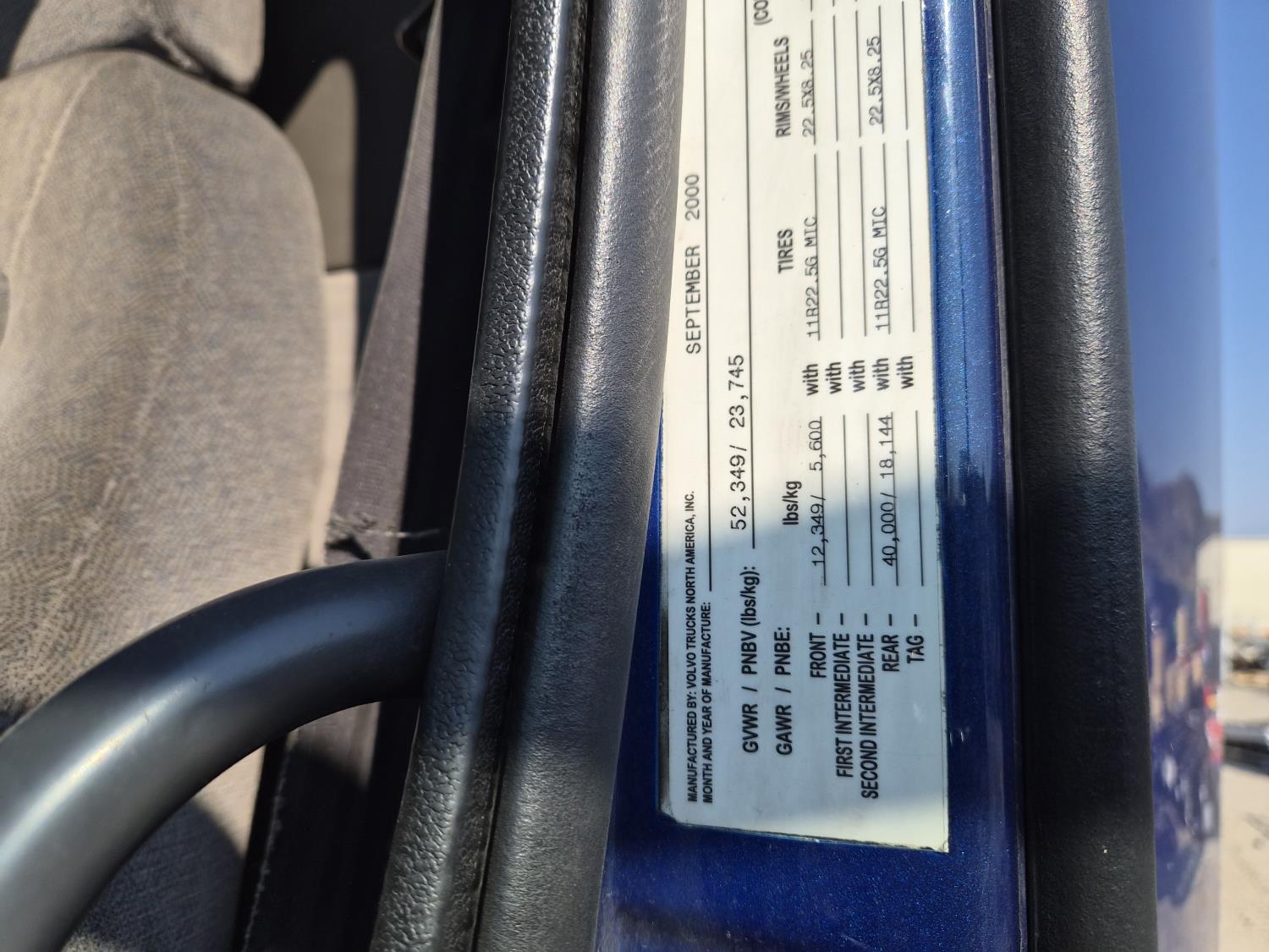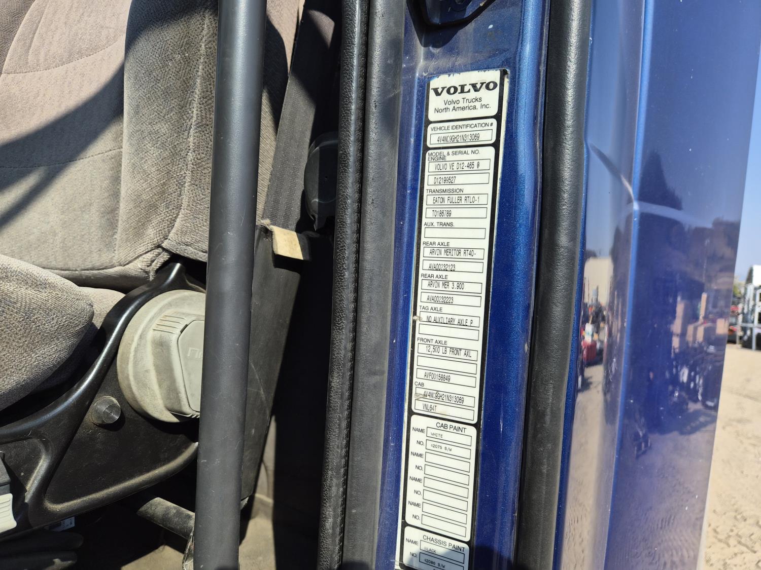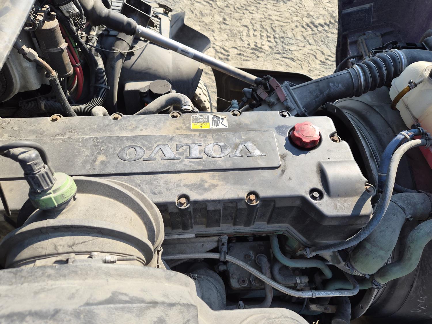 Volvo VE D12 12.1 L 6 cylinder 425 HP diesel engine, engine brake, Eaton Fuller RTLO-1 13 speed transmission, A/C, cruise control, air ride driver seat, radio, saddle boxes, air ride suspension, 12,500 lb front axle, 40,000 lb rear axles, 3 way diff locks, 11R22.5G tires