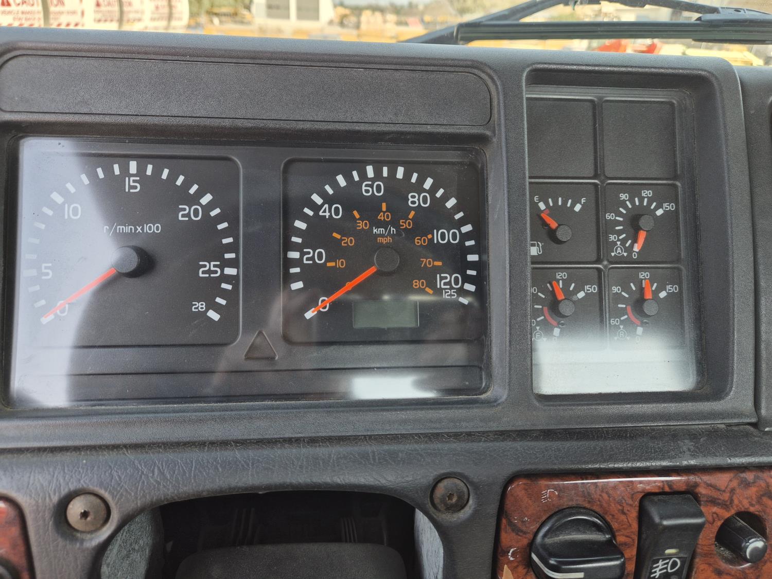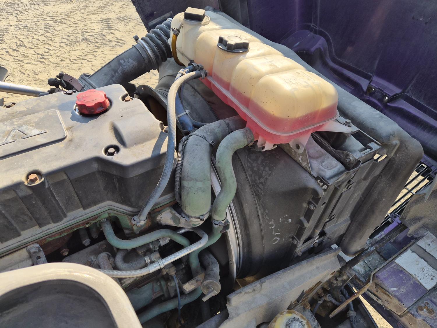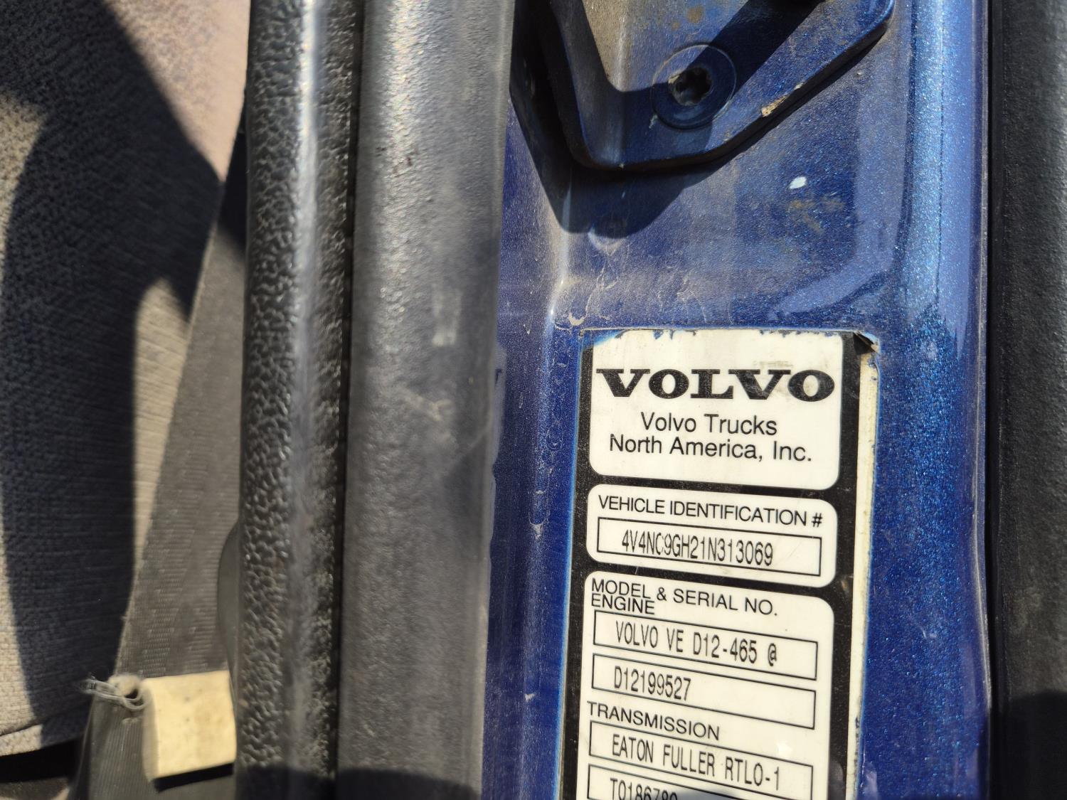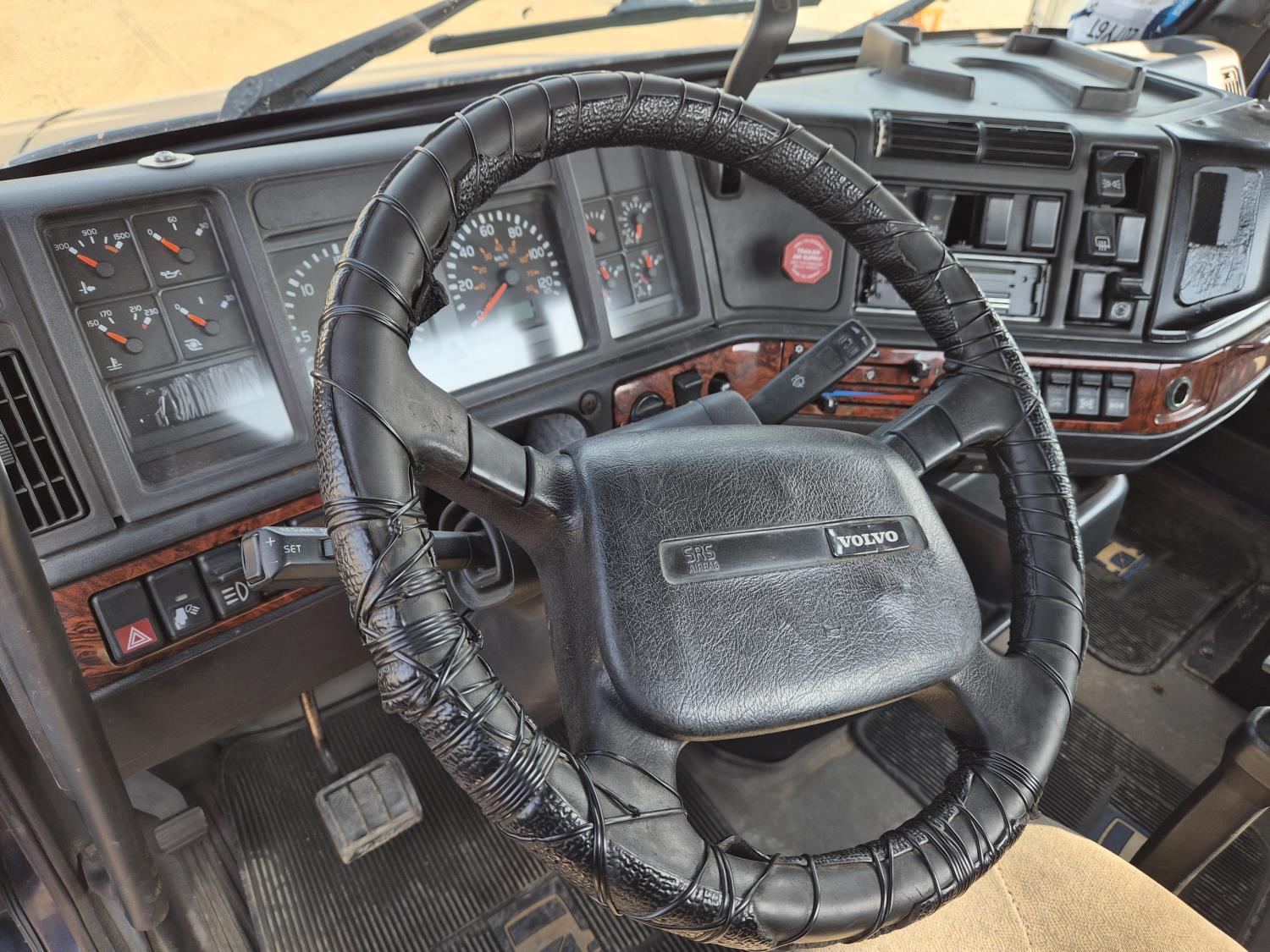 Volvo VE D12 12.1 L 6 cylinder 425 HP diesel engine, engine brake, Eaton Fuller RTLO-1 13 speed transmission, A/C, cruise control, air ride driver seat, radio, saddle boxes, air ride suspension, 12,500 lb front axle, 40,000 lb rear axles, 3 way diff locks, 11R22.5G tires