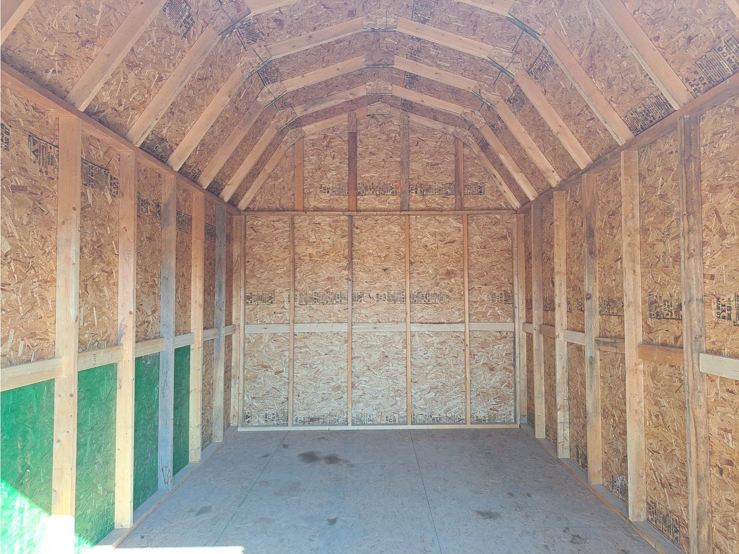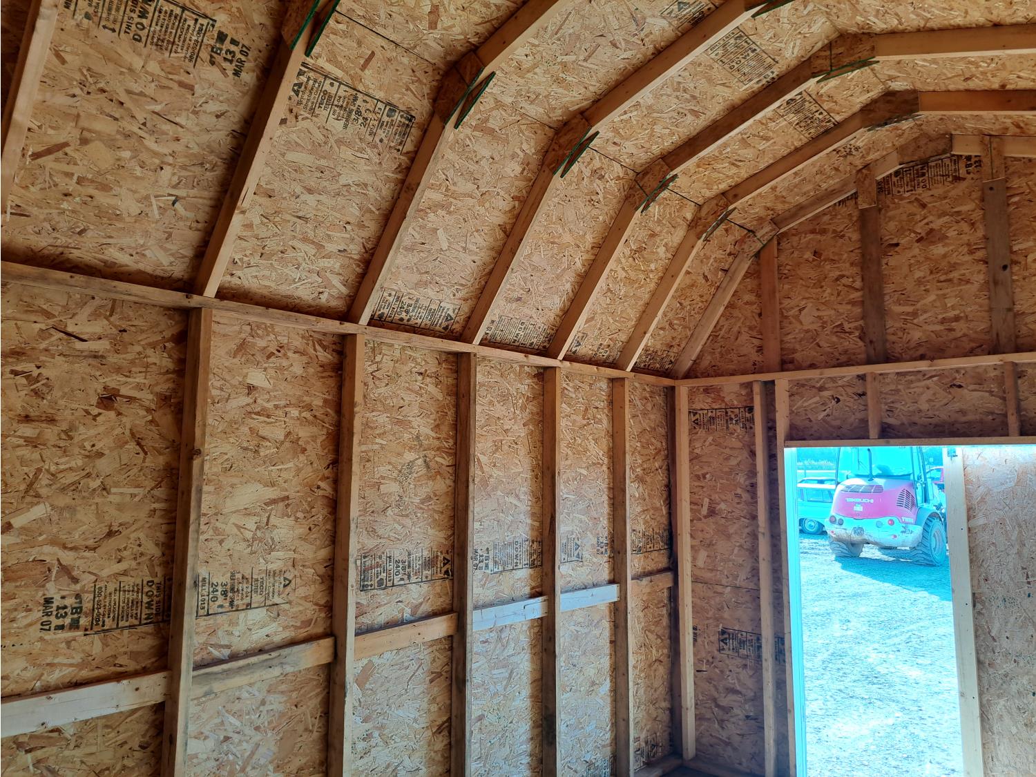 Barn style doors, shingled roof, 2 x 6 floor joist