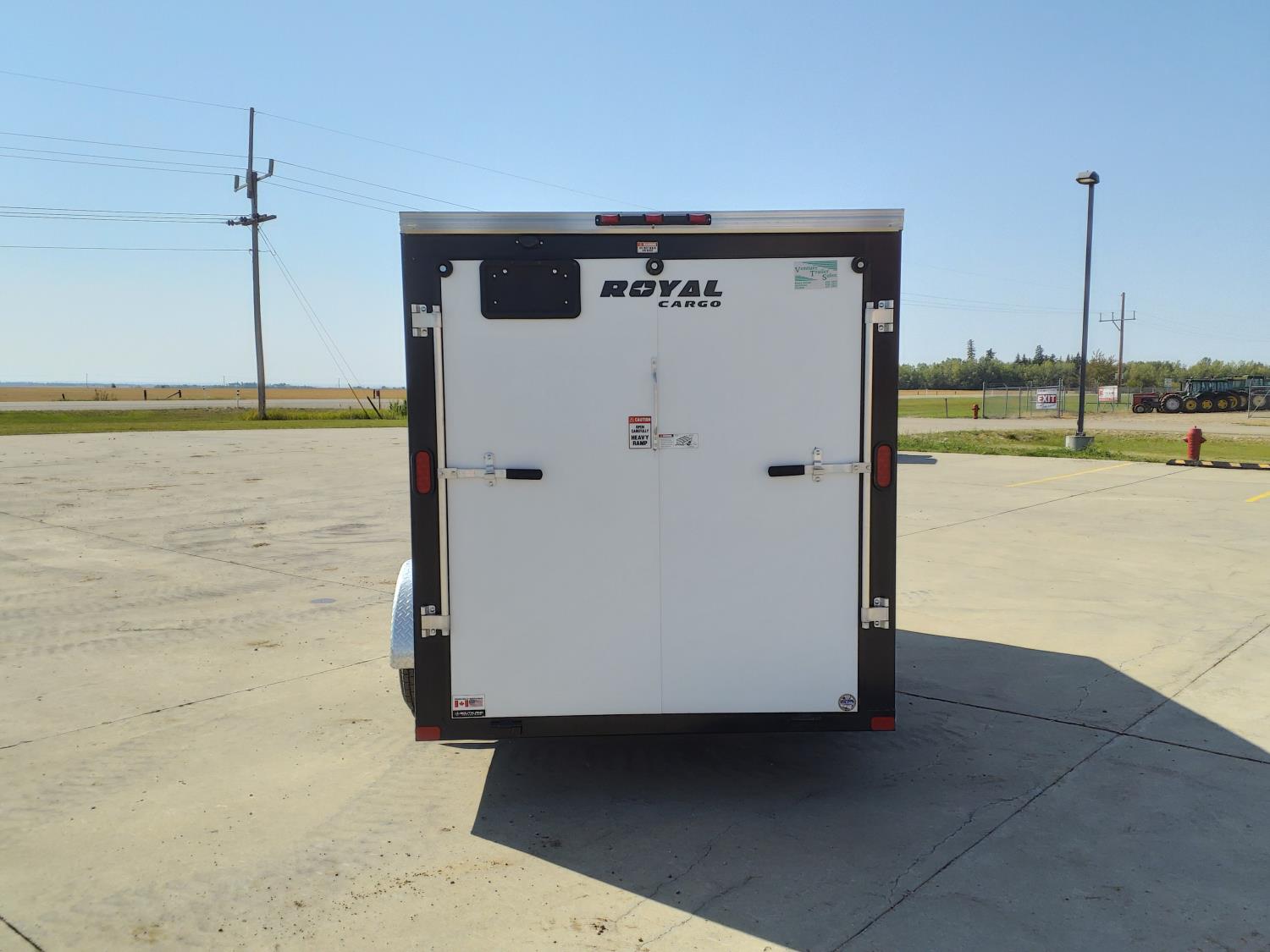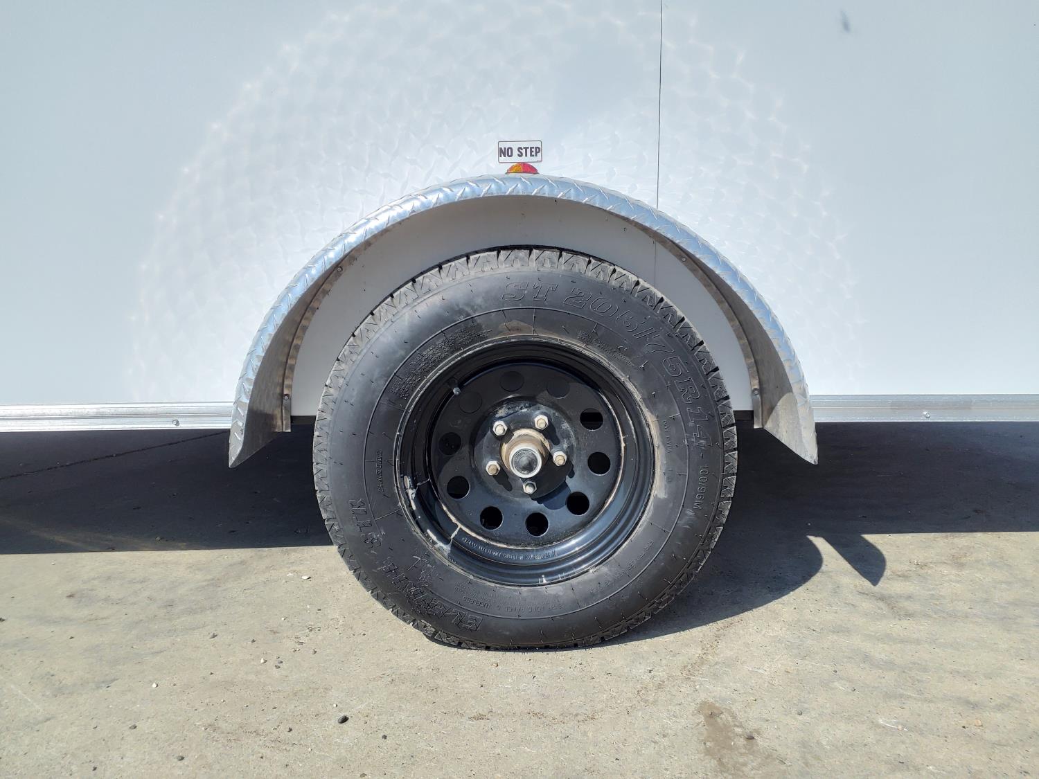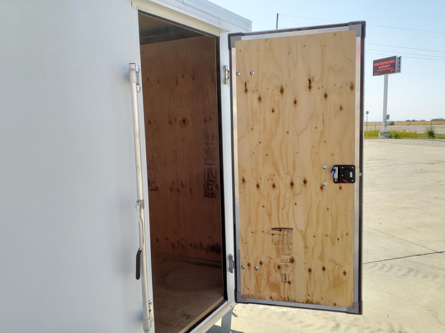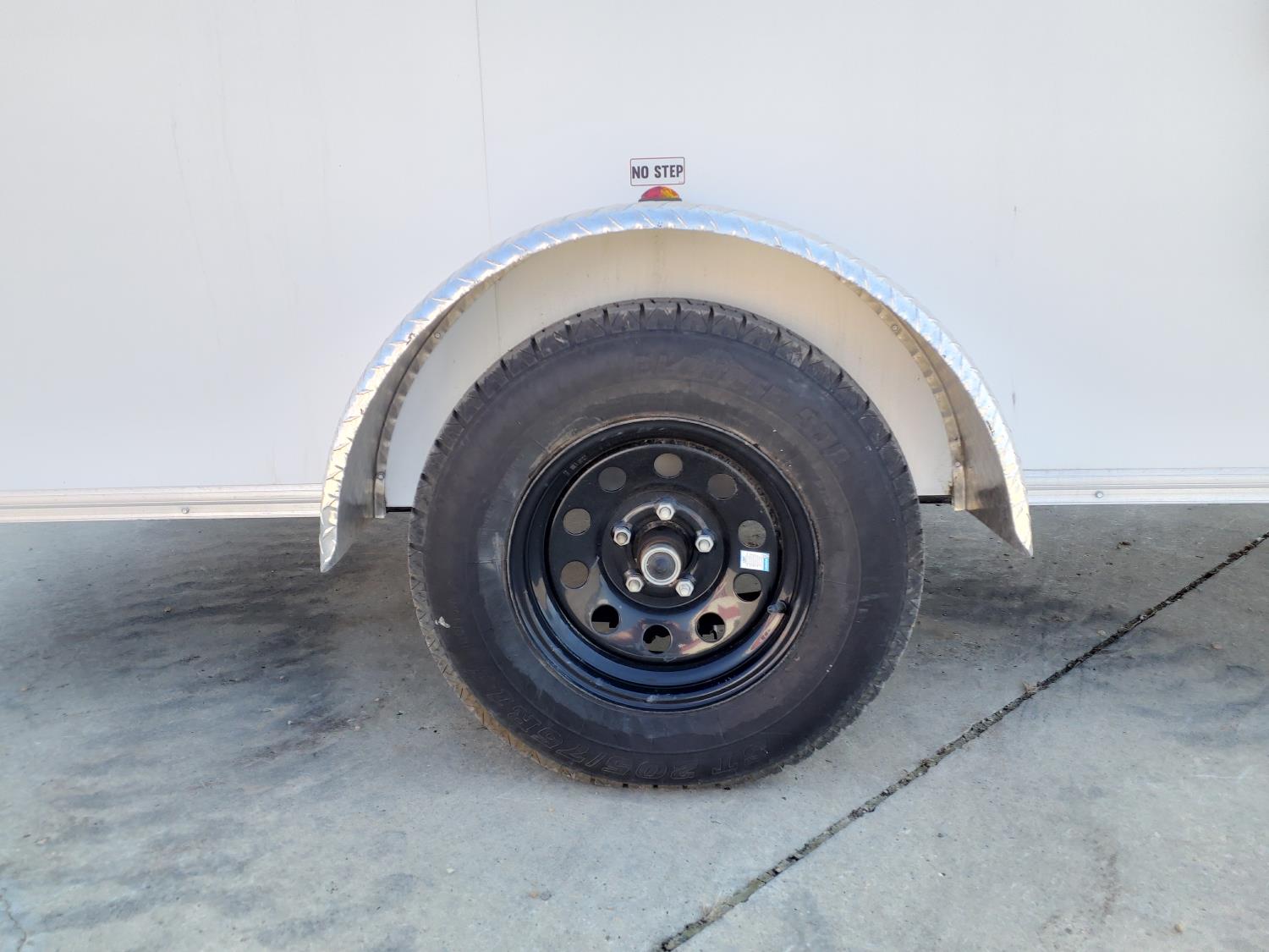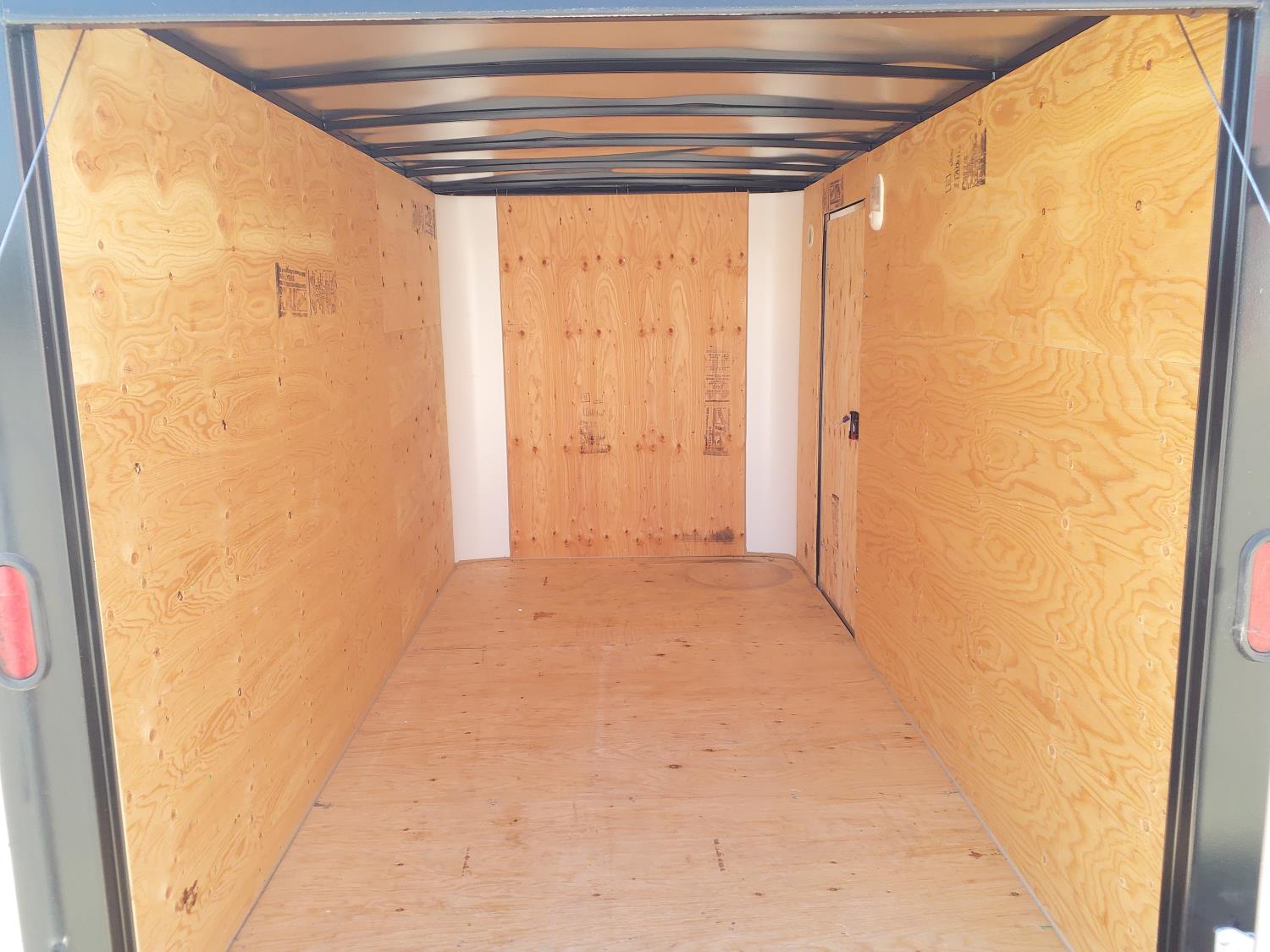 69 inch interior width, 75 inch interior height, ball hitch, side door, fold down door, spring suspension, 3000 lb axles, 205/75R14 tires