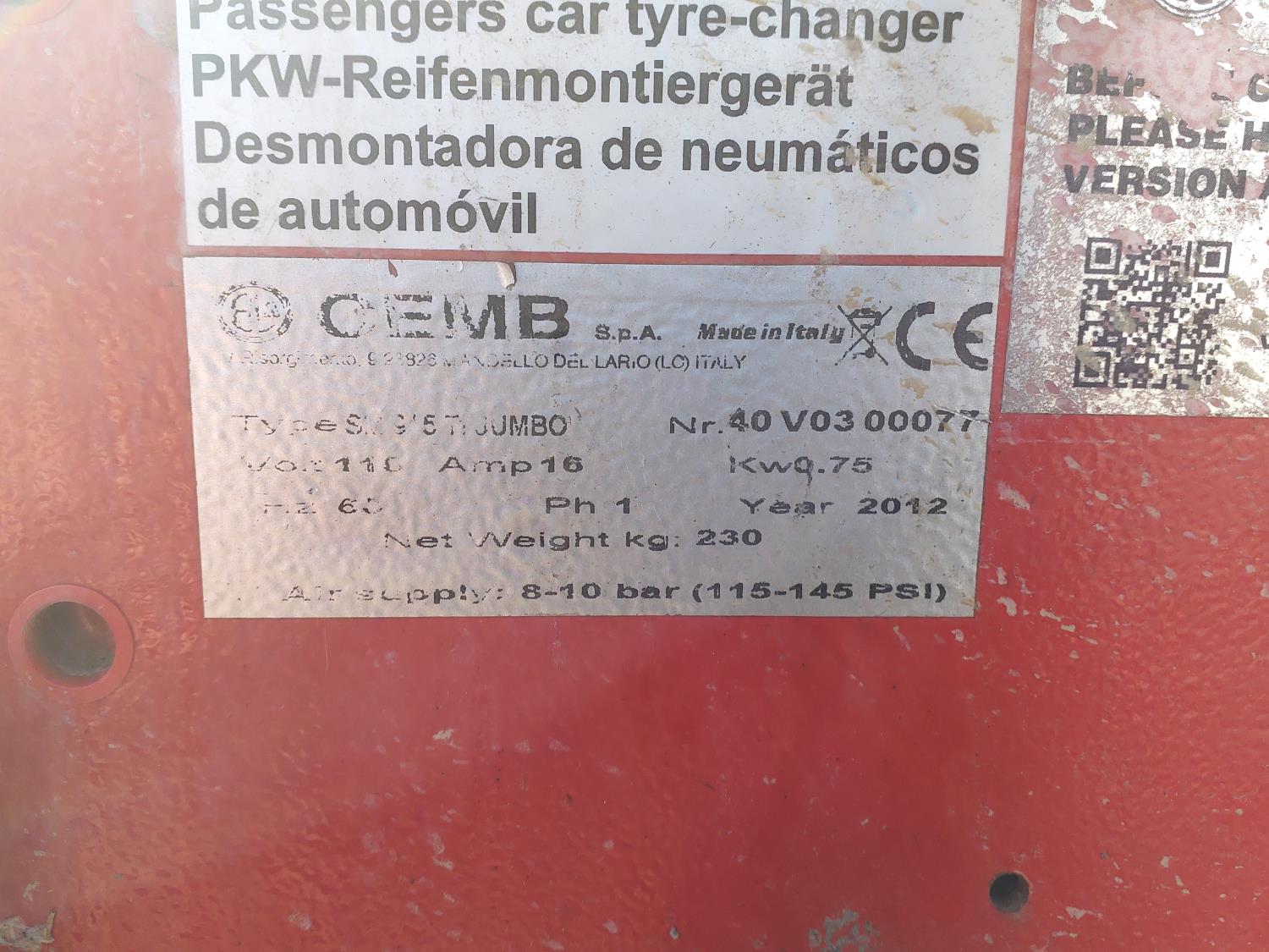 171 2012 CEMB SM915 Tire Changer