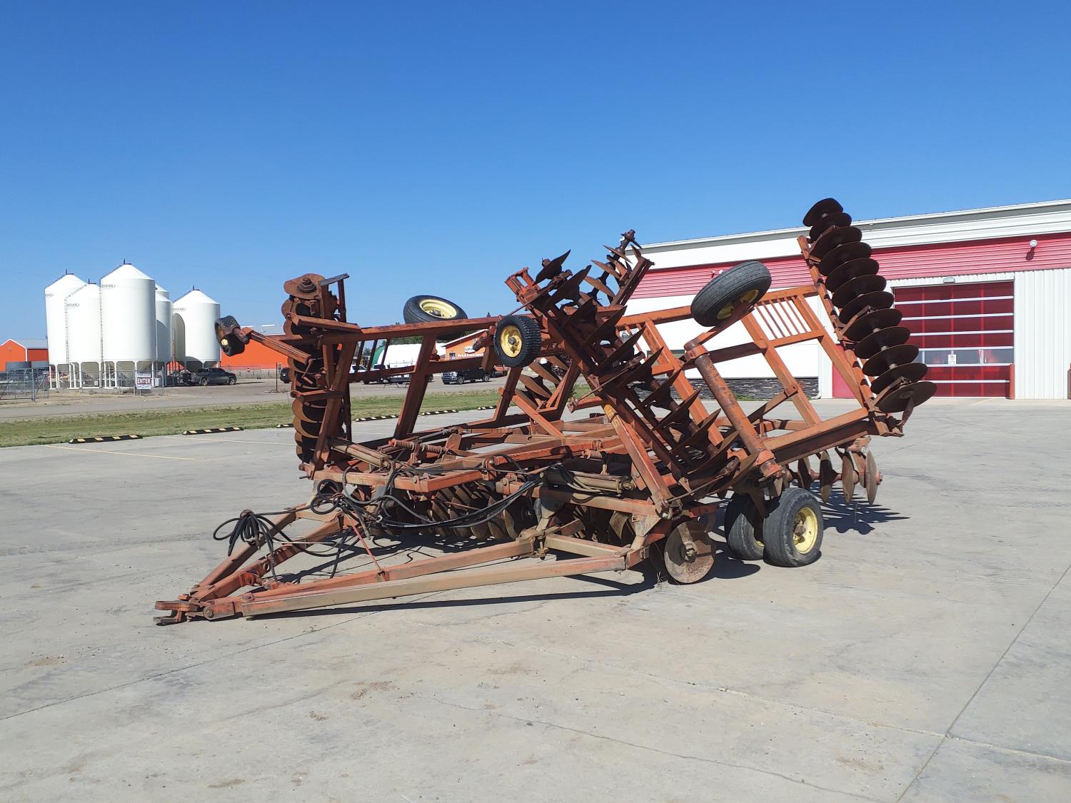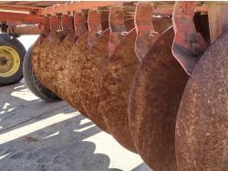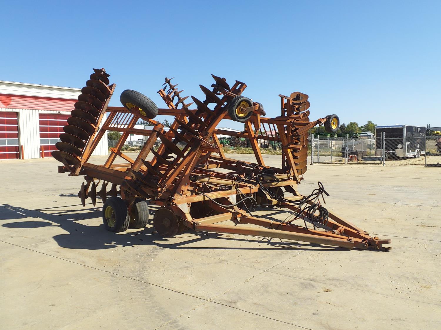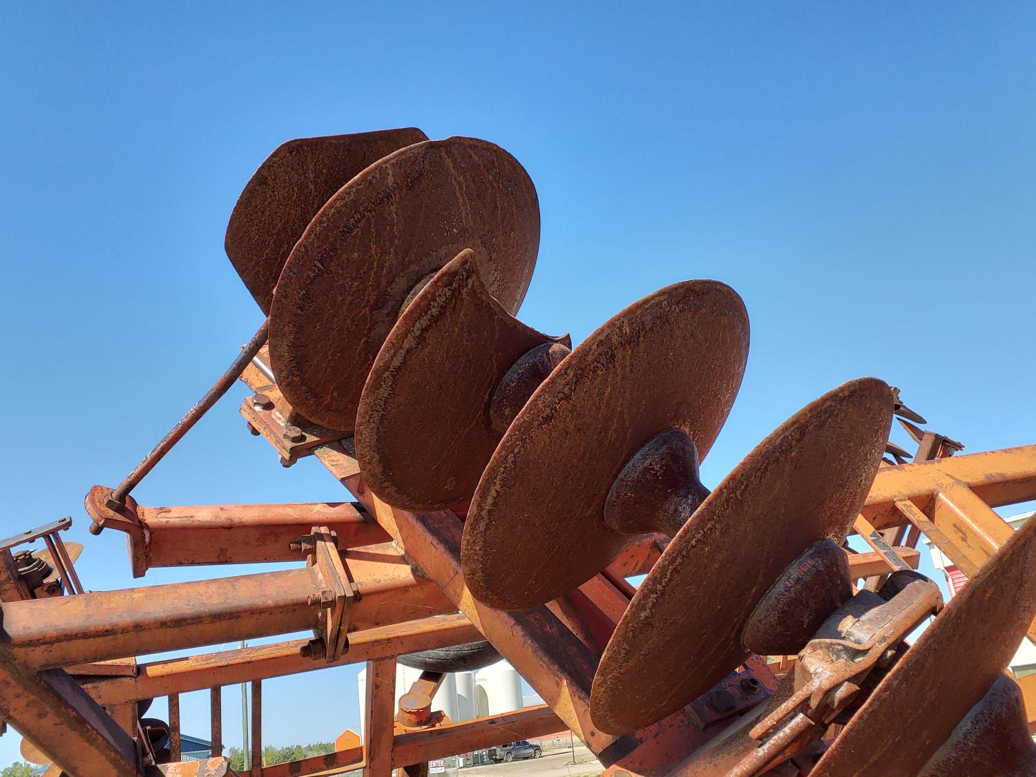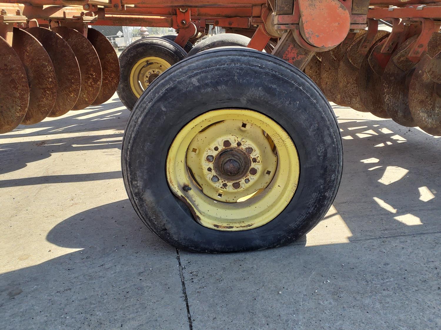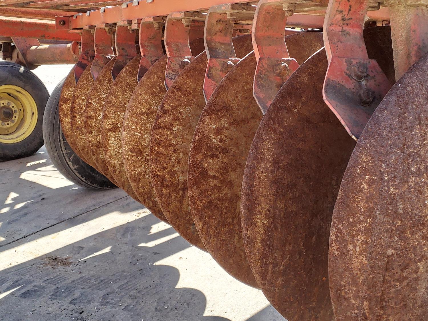 front: 21 inch spacing smooth 8.5 inch discs, rear: 22 inch spacing smooth 9 inch discs, scrapers, duals main frame, 9.5L-15 tires