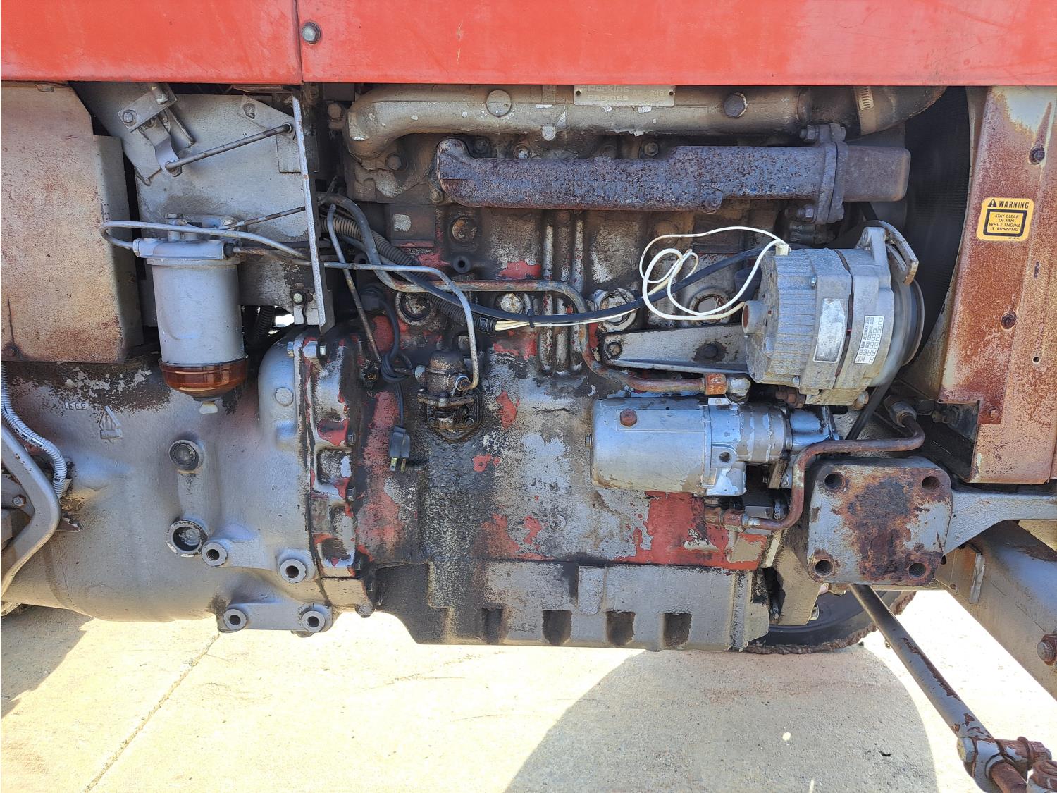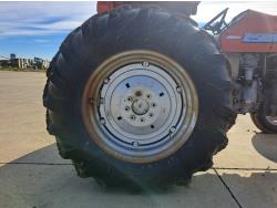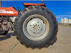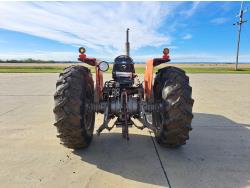 Perkins 4.1 L 4 cylinder 74 HP, diesel engine, 67 PTO HP, 8 speed manual transmission, open station platform, 540 PTO, 3 point hitch, 2 rear hydraulic outlets, 6.50-16 front tires, 16.9-30 rear tires
