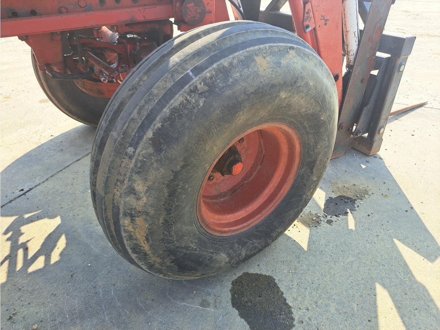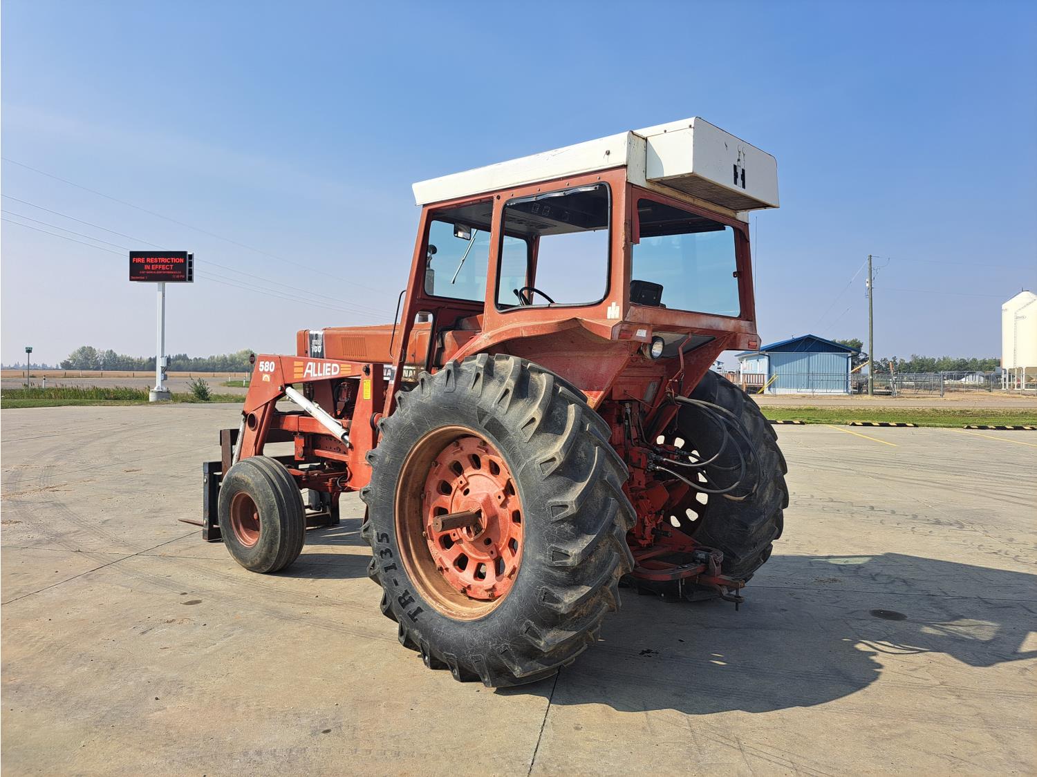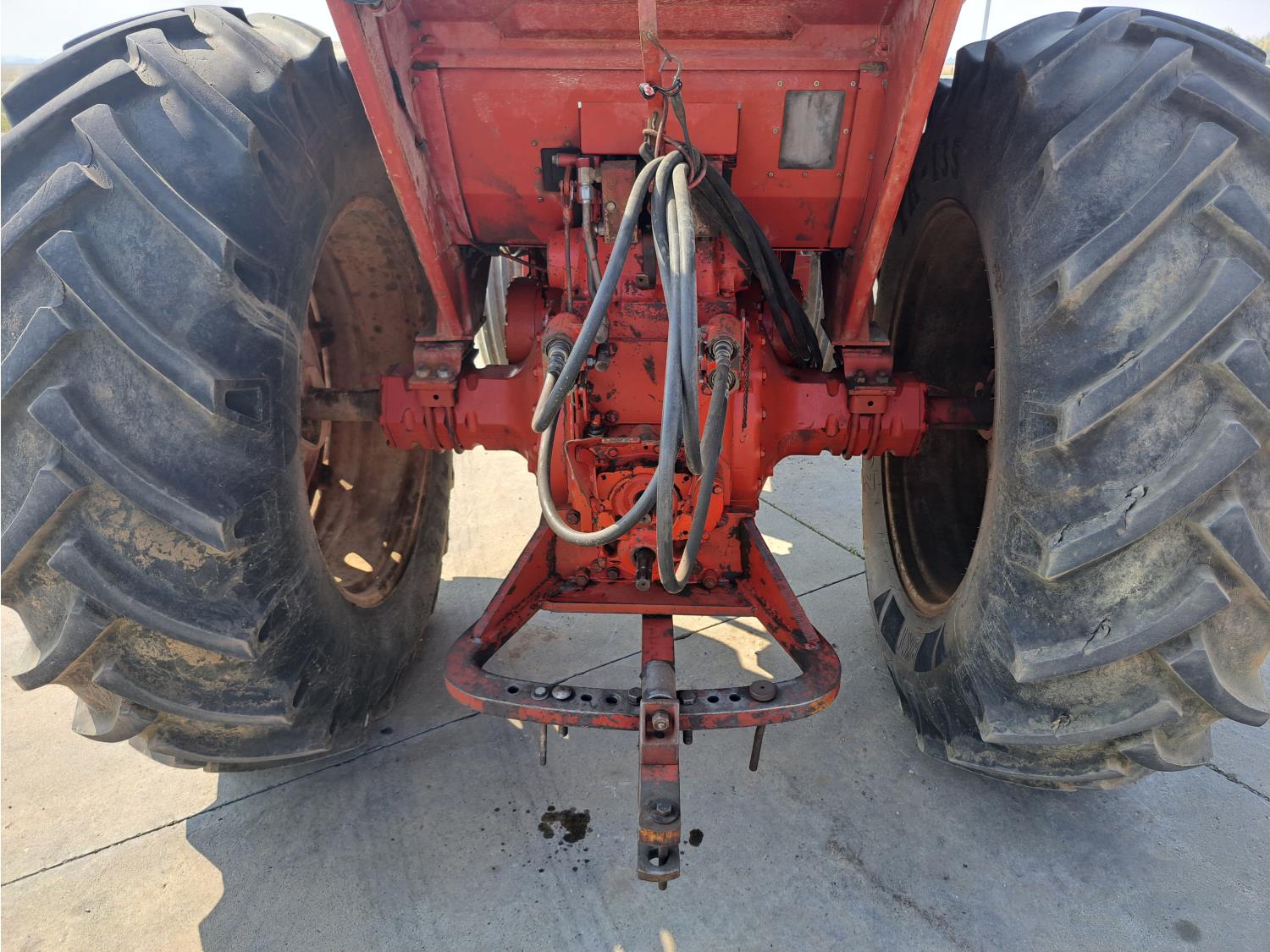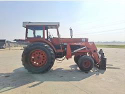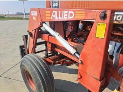 Allied 580 loader, 72 inch bucket, bale forks, International 7.1 L 6 cylinder 115 HP, diesel engine, 104 PTO HP, hydro 2 range transmission, 540/1000 PTO, 2 rear hydraulic outlets, 11.00-16 front tires, 20.8-38 rear tires