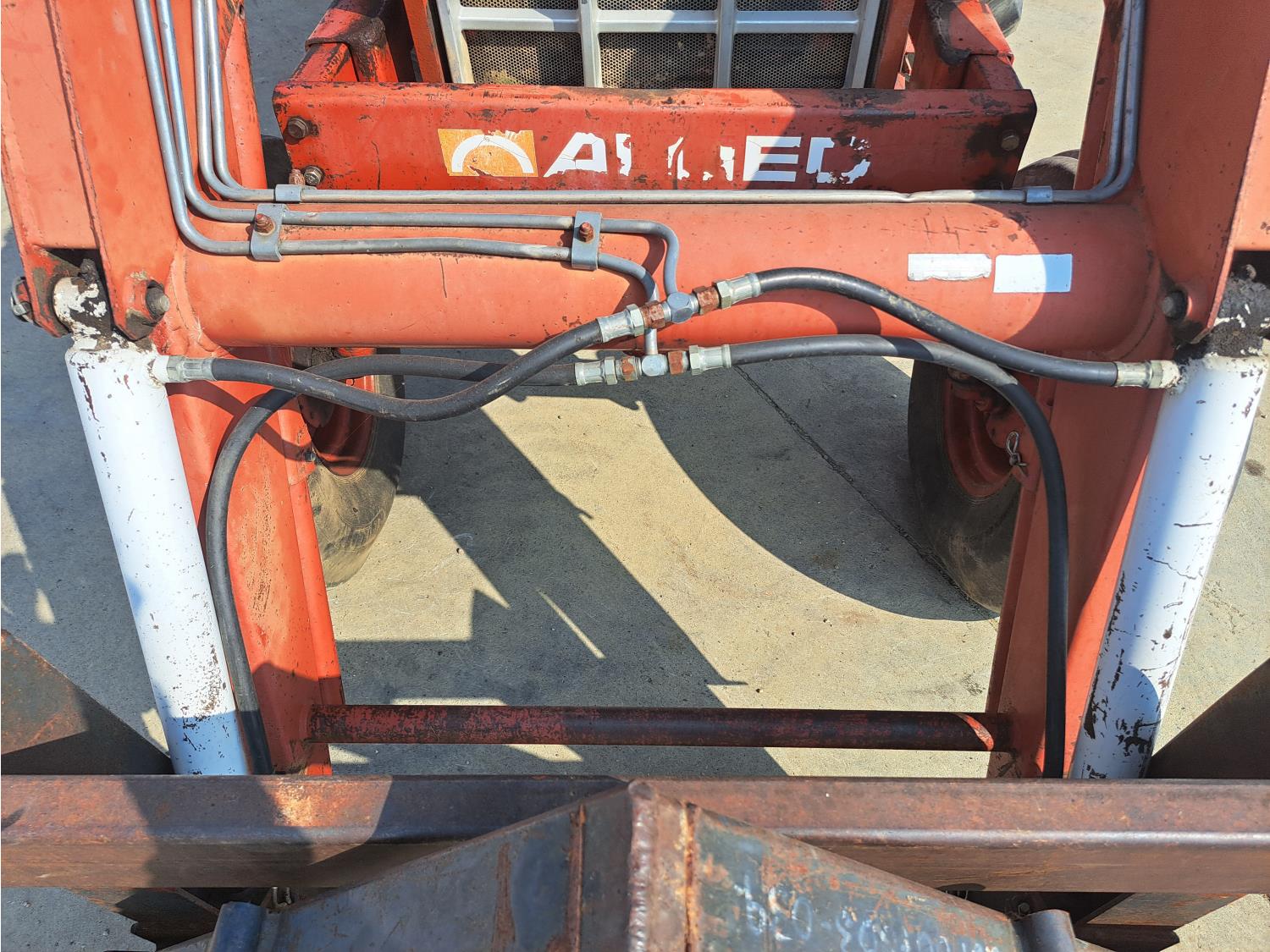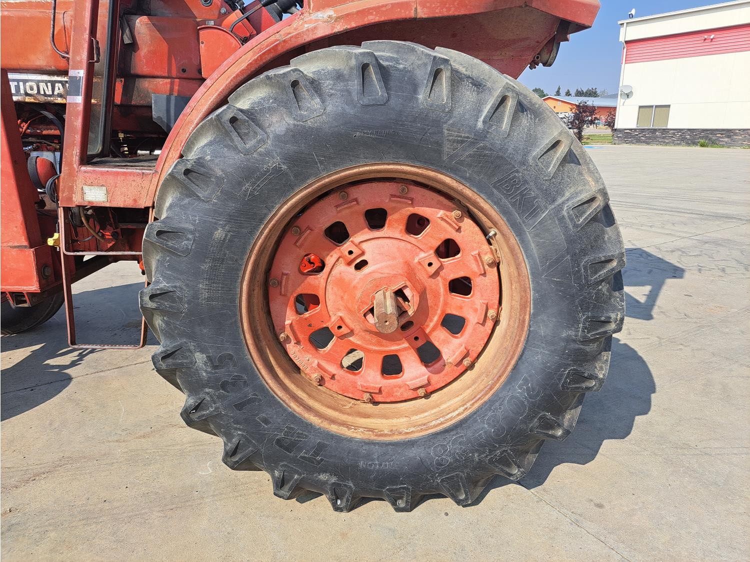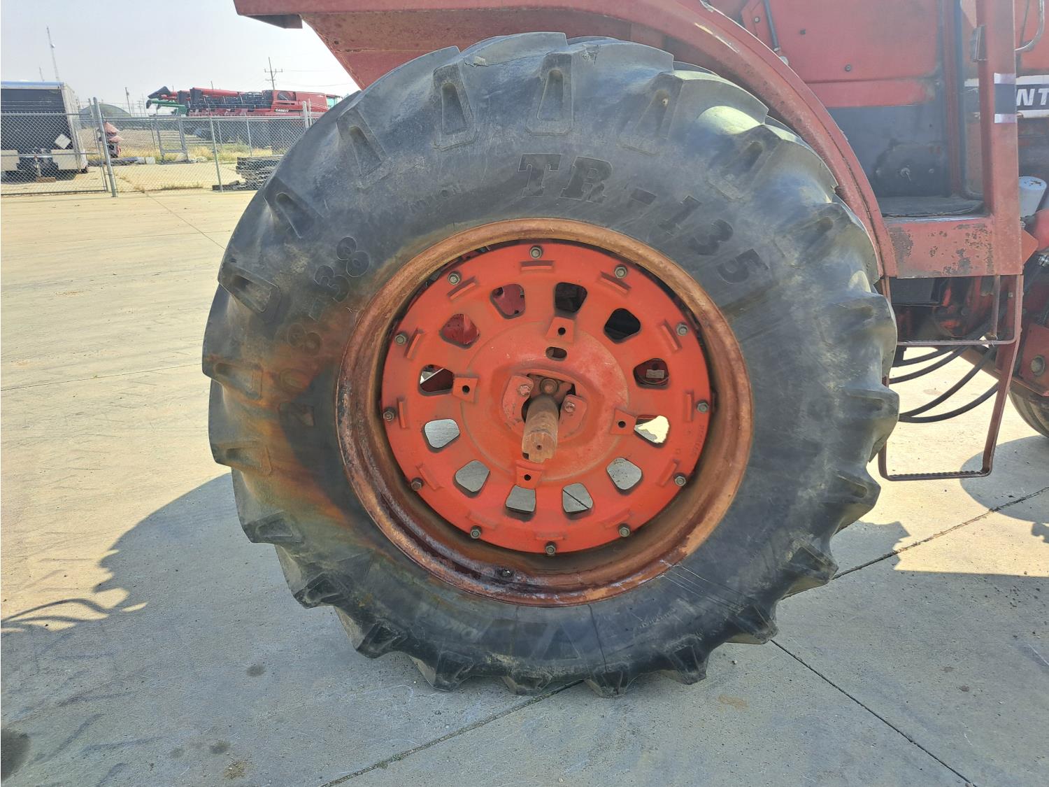 Allied 580 loader, 72 inch bucket, bale forks, International 7.1 L 6 cylinder 115 HP, diesel engine, 104 PTO HP, hydro 2 range transmission, 540/1000 PTO, 2 rear hydraulic outlets, 11.00-16 front tires, 20.8-38 rear tires