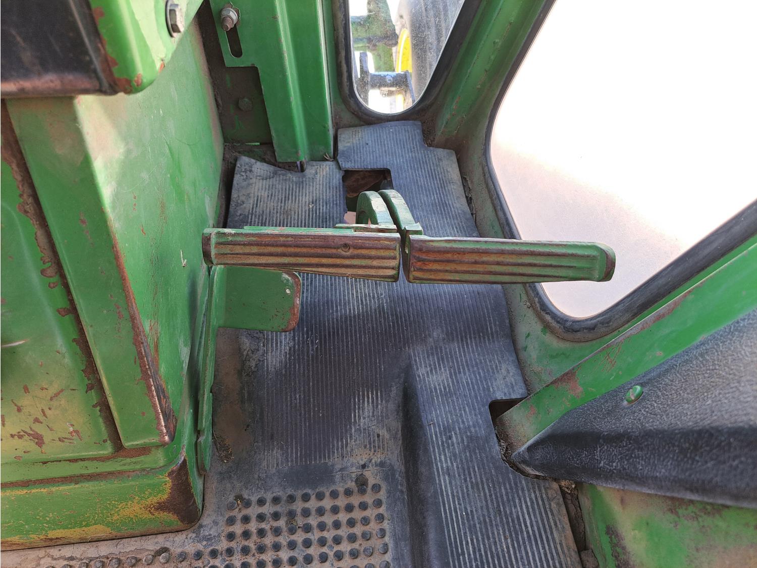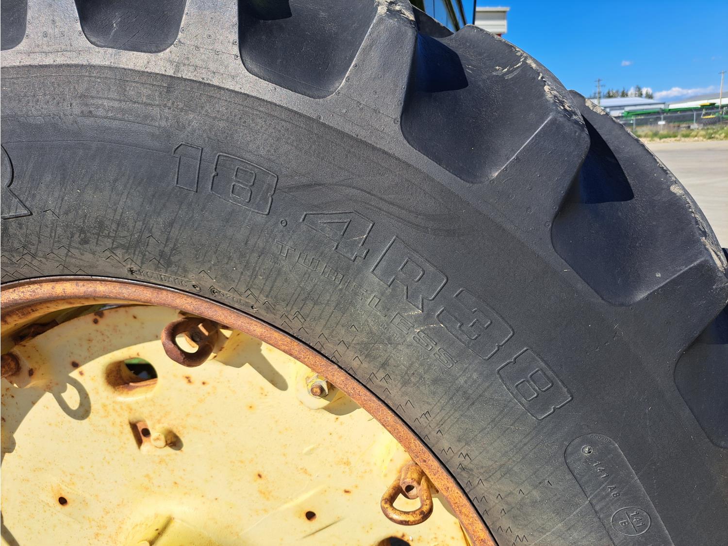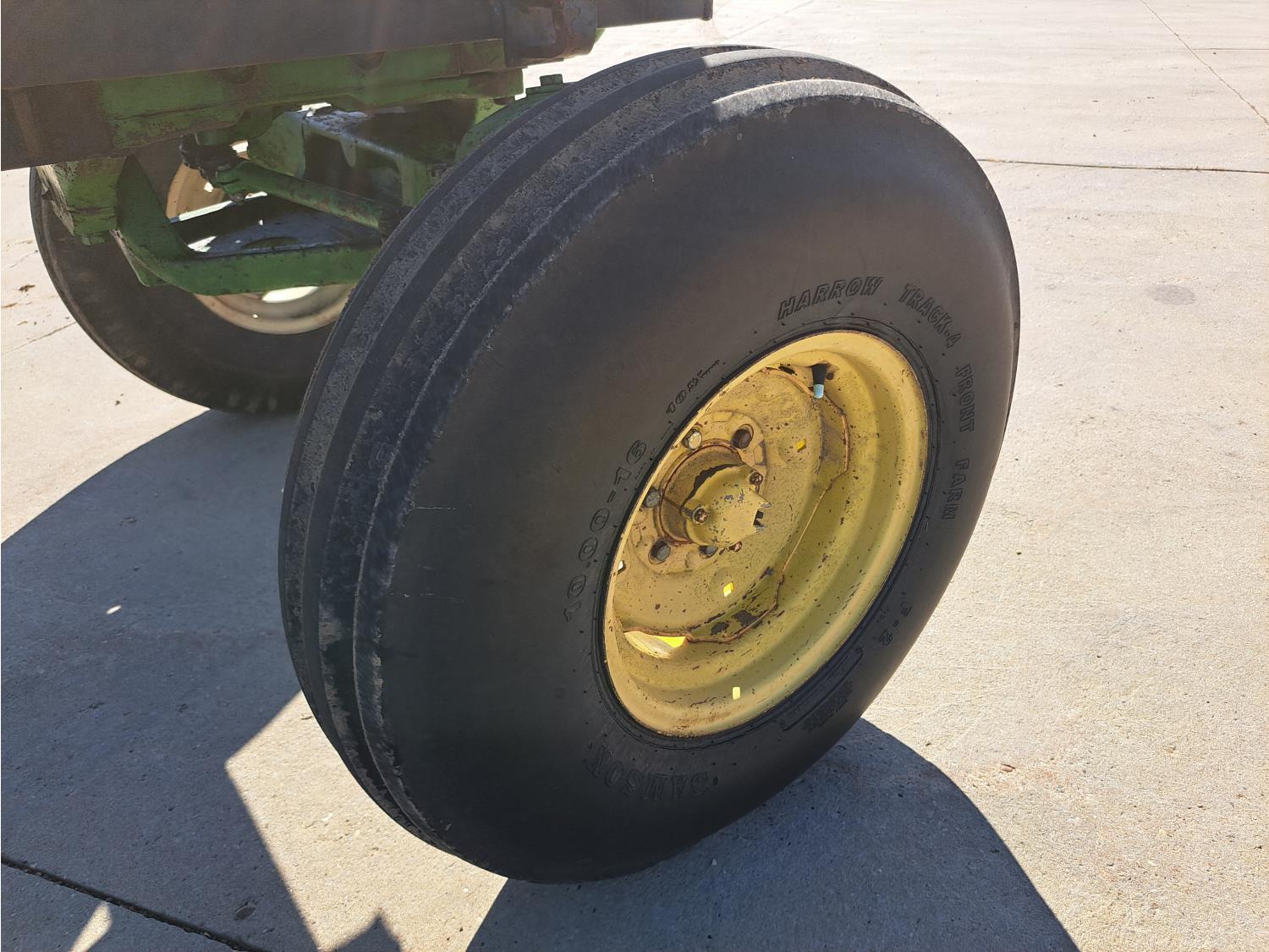 john deere 6.6 L 6 cylinder 127 HP, diesel engine, 115 PTO HP, 8 speed partial synchro transmission, cab, 540/1000 PTO, 2 rear hydraulic outlets, 10.00-16 front tires, 18.4R38 rear tires