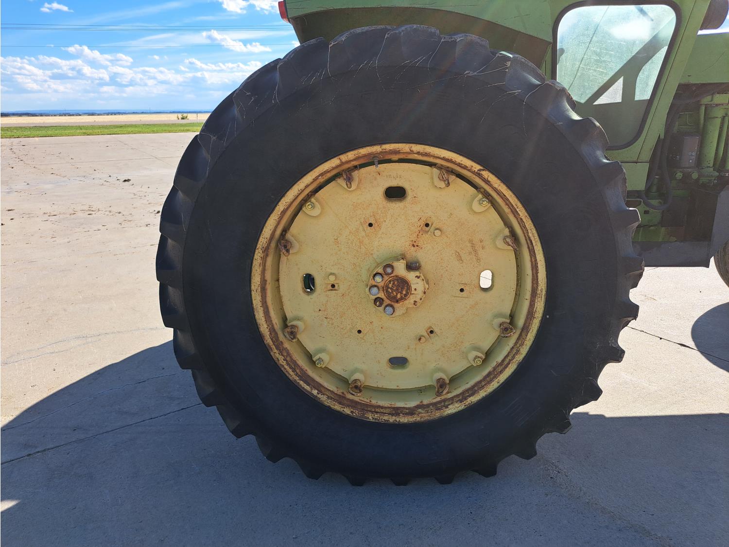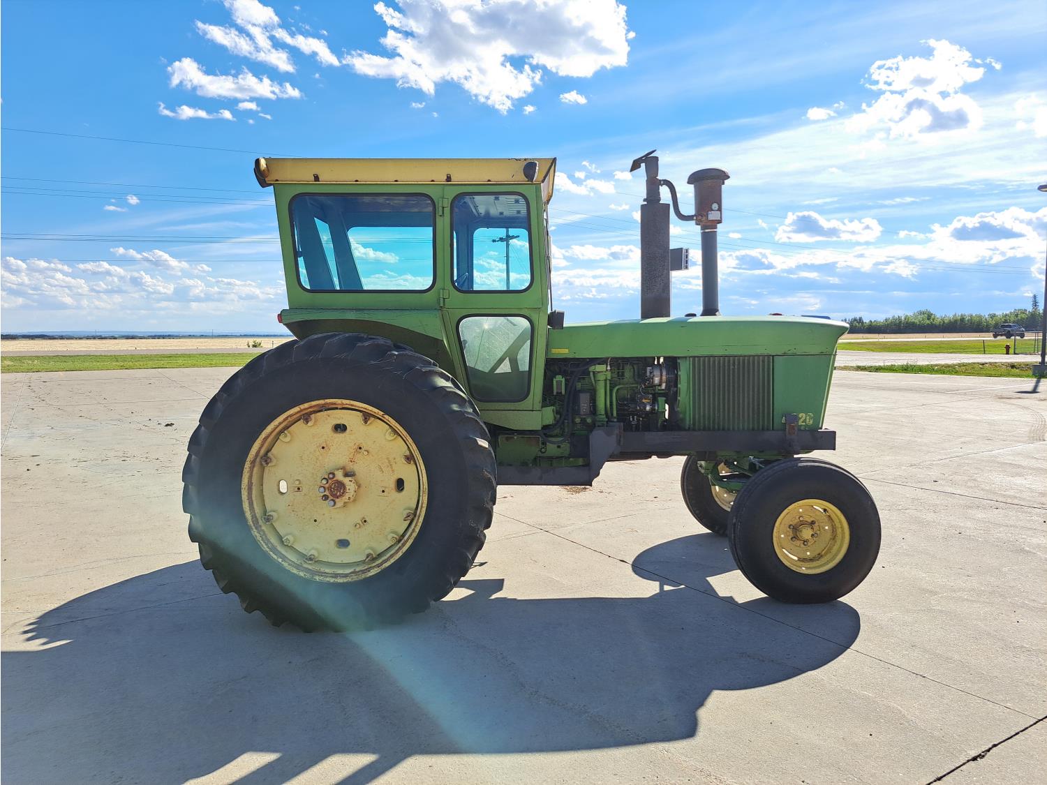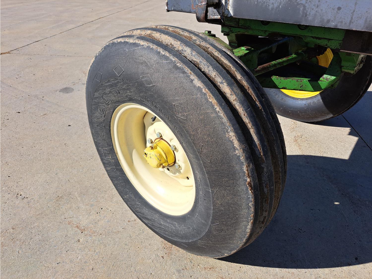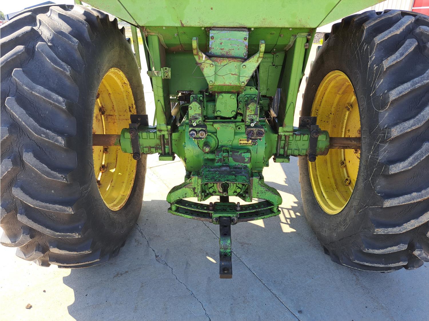 john deere 6.6 L 6 cylinder 127 HP, diesel engine, 115 PTO HP, 8 speed partial synchro transmission, cab, 540/1000 PTO, 2 rear hydraulic outlets, 10.00-16 front tires, 18.4R38 rear tires