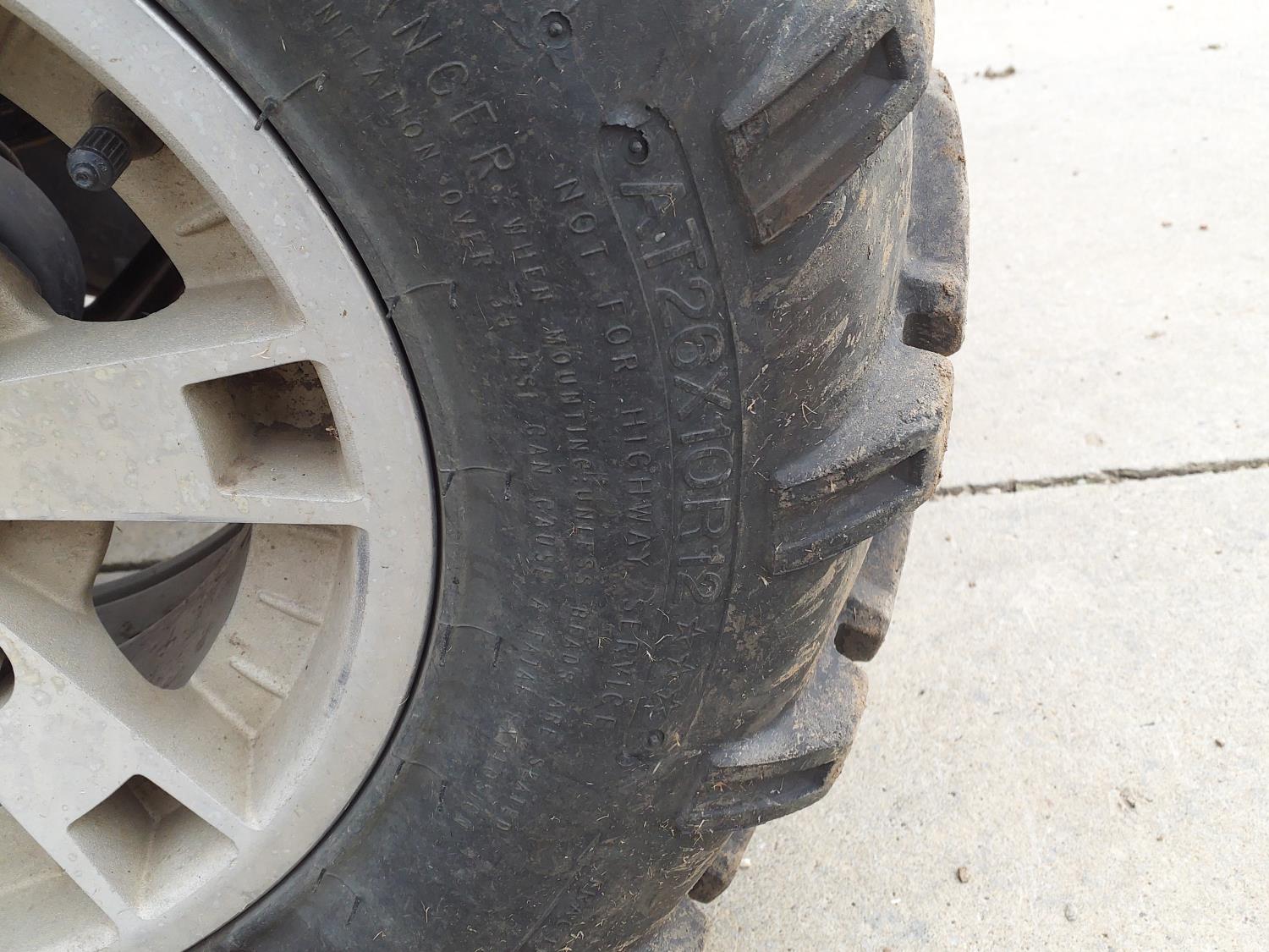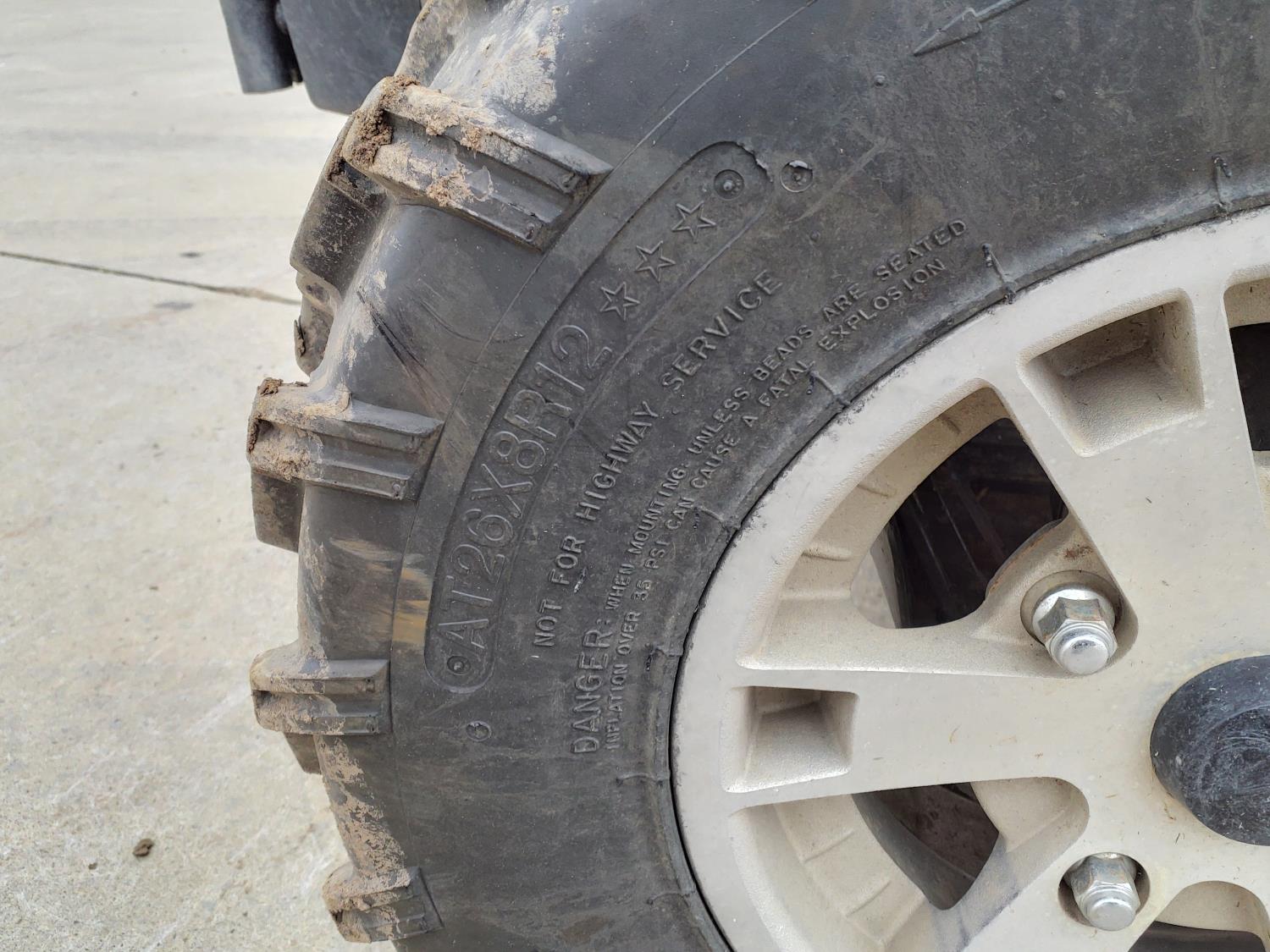 799 cc water cooled engine, automatic transmission, Hi/Lo range, reverse, hitch, front and rear racks, front winch, independent suspension, 26X8-12 front tires, 26X10-12 rear tires