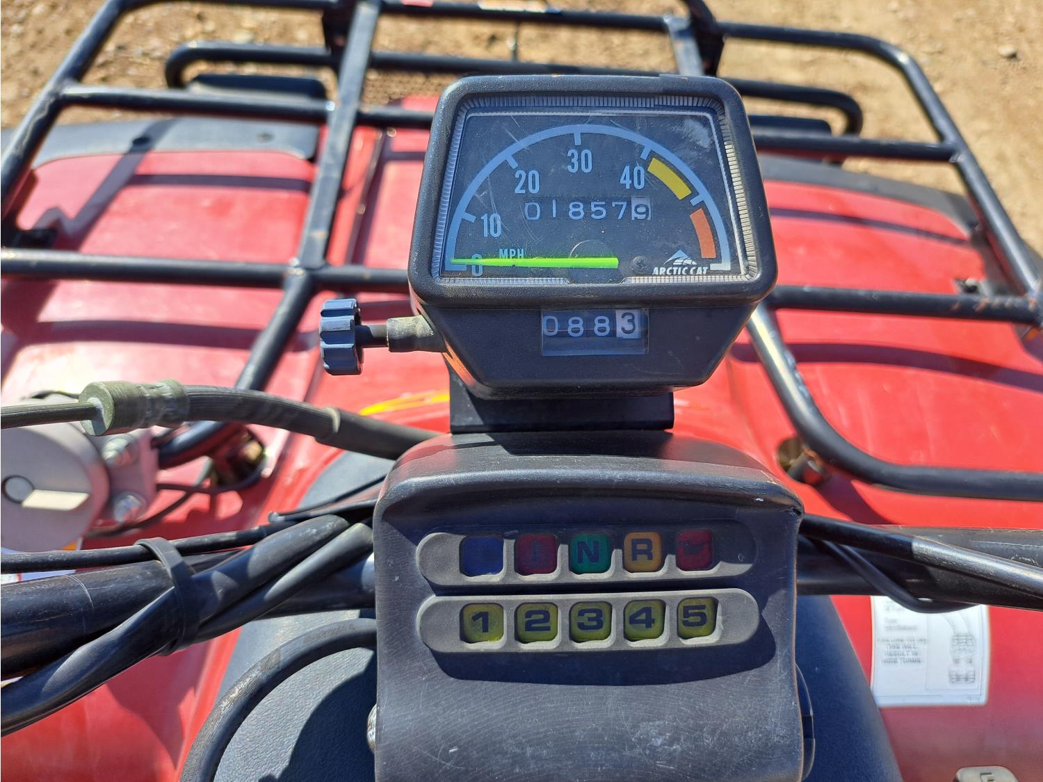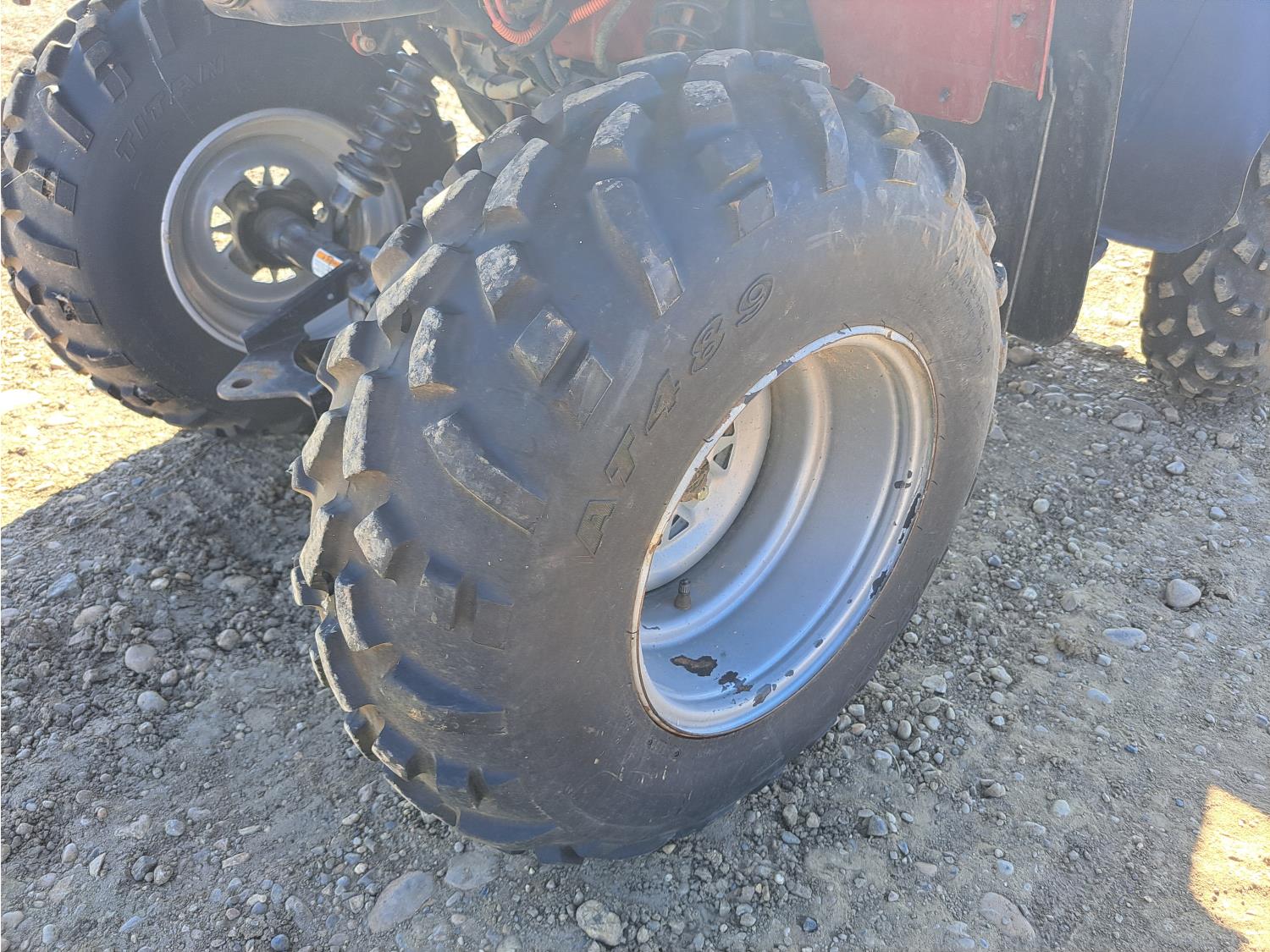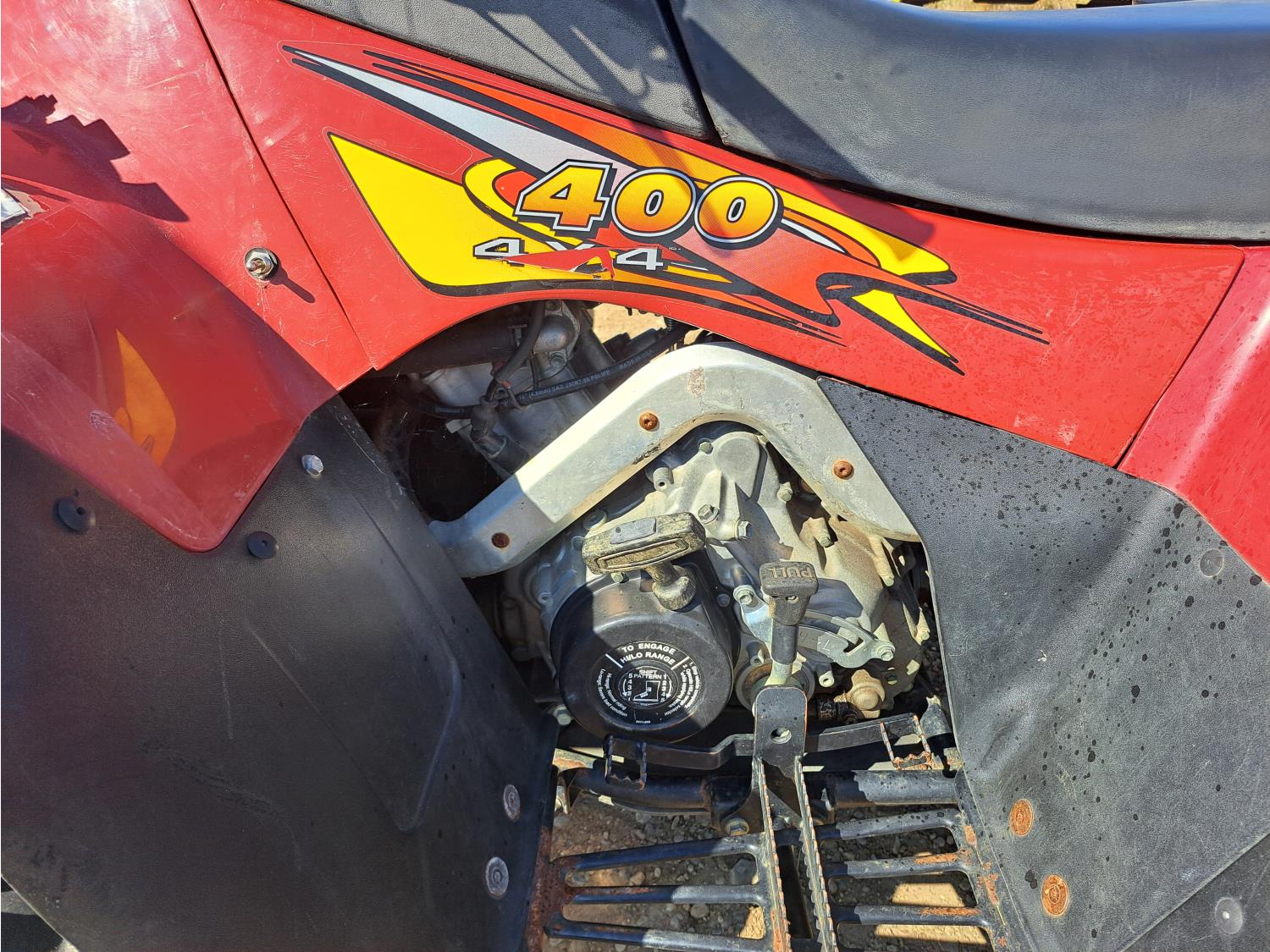 371 cc engine, manual transmission, Hi/Lo range, reverse, hitch, front and rear racks, front winch, 25X8-12 front tires, 25X10-12 rear tires
