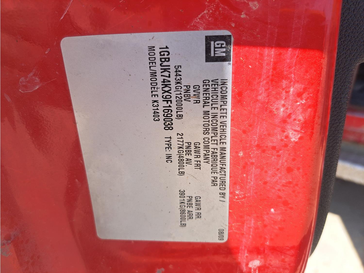 - 1GBJK74KX9F169038